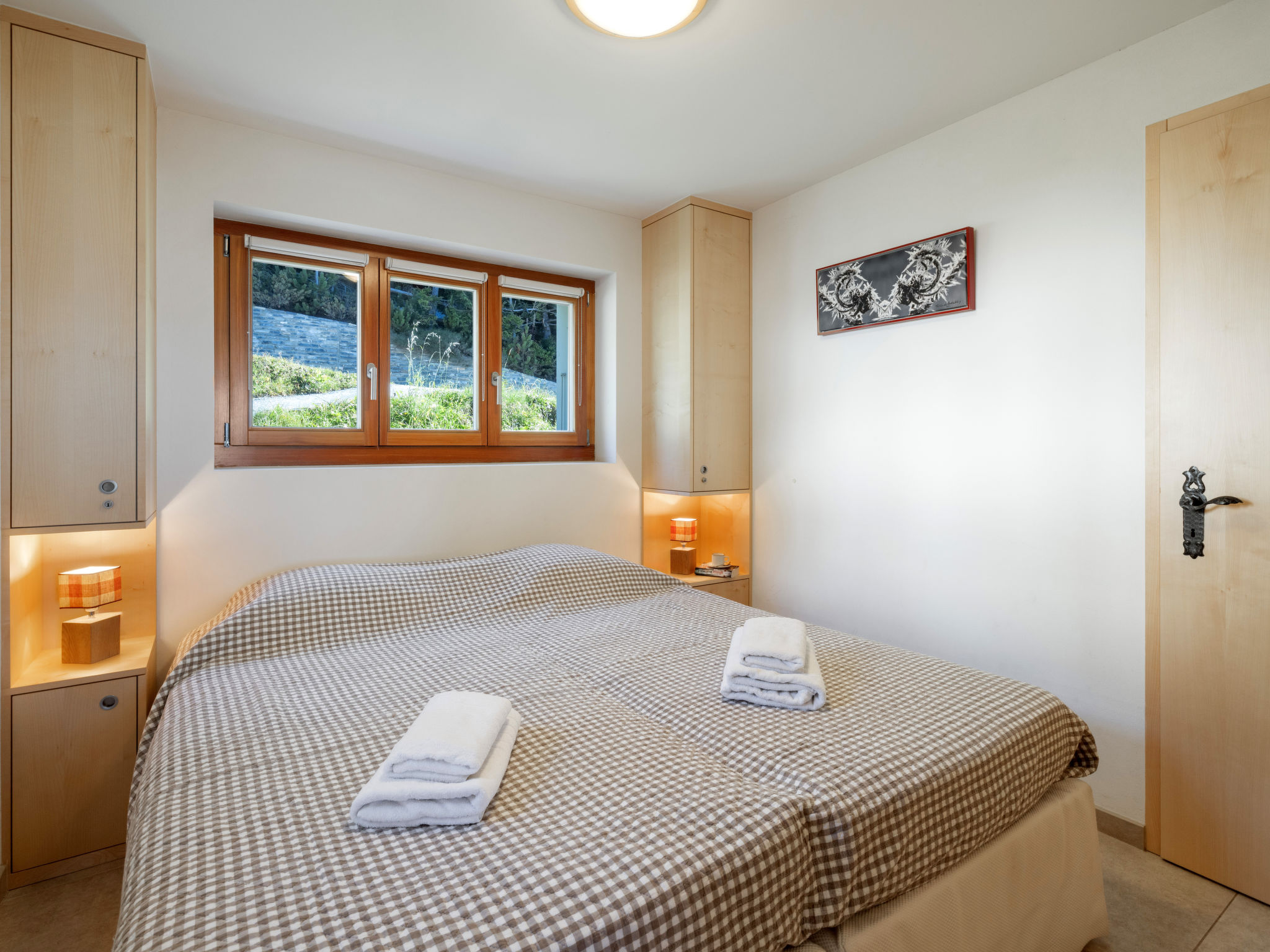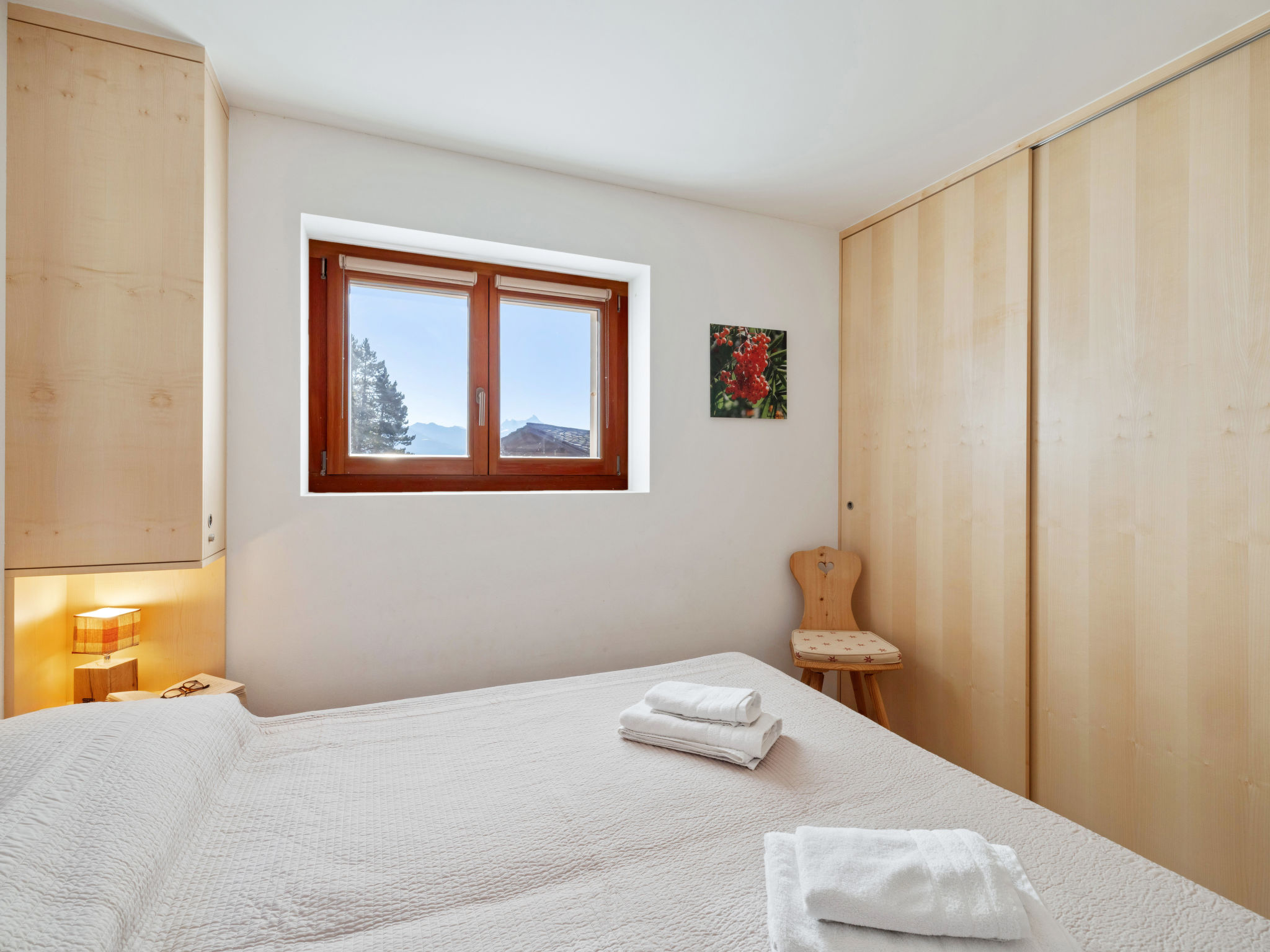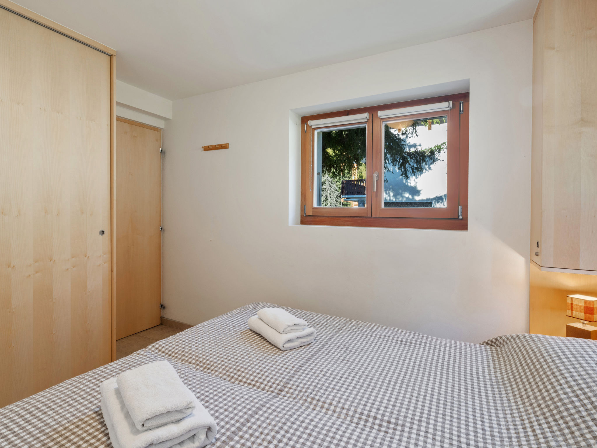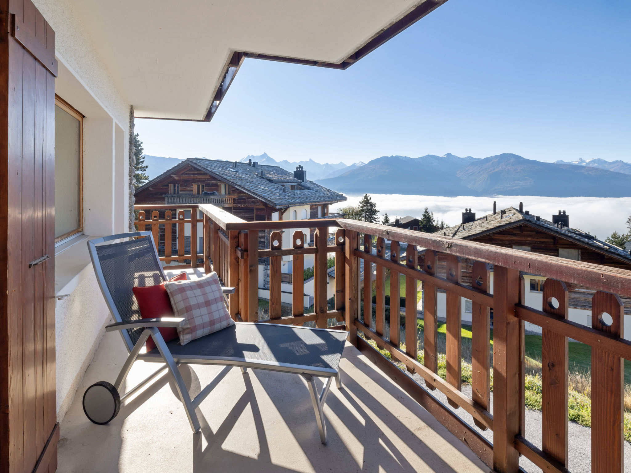 3-Zimmer-Wohnung 70 m2, im erhöhten Erdgeschoss. Komfortabel und modern eingerichtet: Wohn-/Esszimmer mit Kabel-TV. Ausgang zum Balkon. 1 Zimmer mit 1 Doppelbett (2 x 90 cm, Länge 200 cm), Bad/WC. 1 Zimmer mit 1 Doppelbett (2 x 90 cm, Länge 200 cm). Wohnküche (Backofen, Geschirrspüler, 4 Induktionskochplatten, Toaster, Wasserkocher, Mikrowelle, elektrische Kaffeemaschine, Kapseln für die Kaffeemaschine (Nespresso) extra, Racletteofen, Fondue Set (Chinoise, Käse)). Dusche/WC. Grosser Balkon 20 m2, Südwestlage. Balkonmöbel, Liegestühle (2). Sehr schöne Sicht auf die Berge und die Landschaft. Zur Verfügung: Bügeleisen, Haartrockner. Internet (Wireless LAN, gratis). Garage Nr. 2, Höhe 190 cm, Breite 230 cm. Bitte beachten: Nichtraucher-Unterkunft. 1 Haustier/Hund erlaubt. Kein Fahrstuhl.
