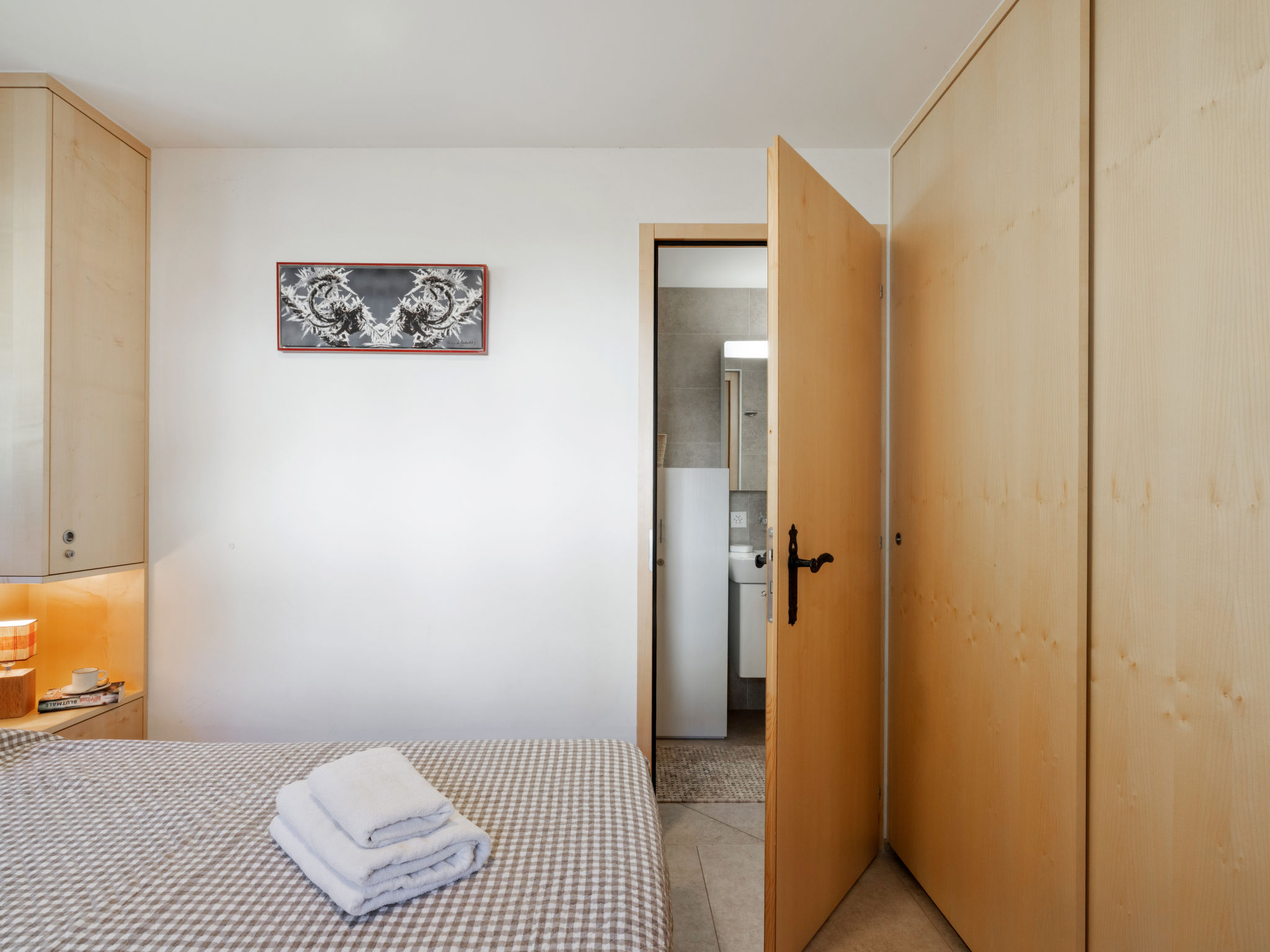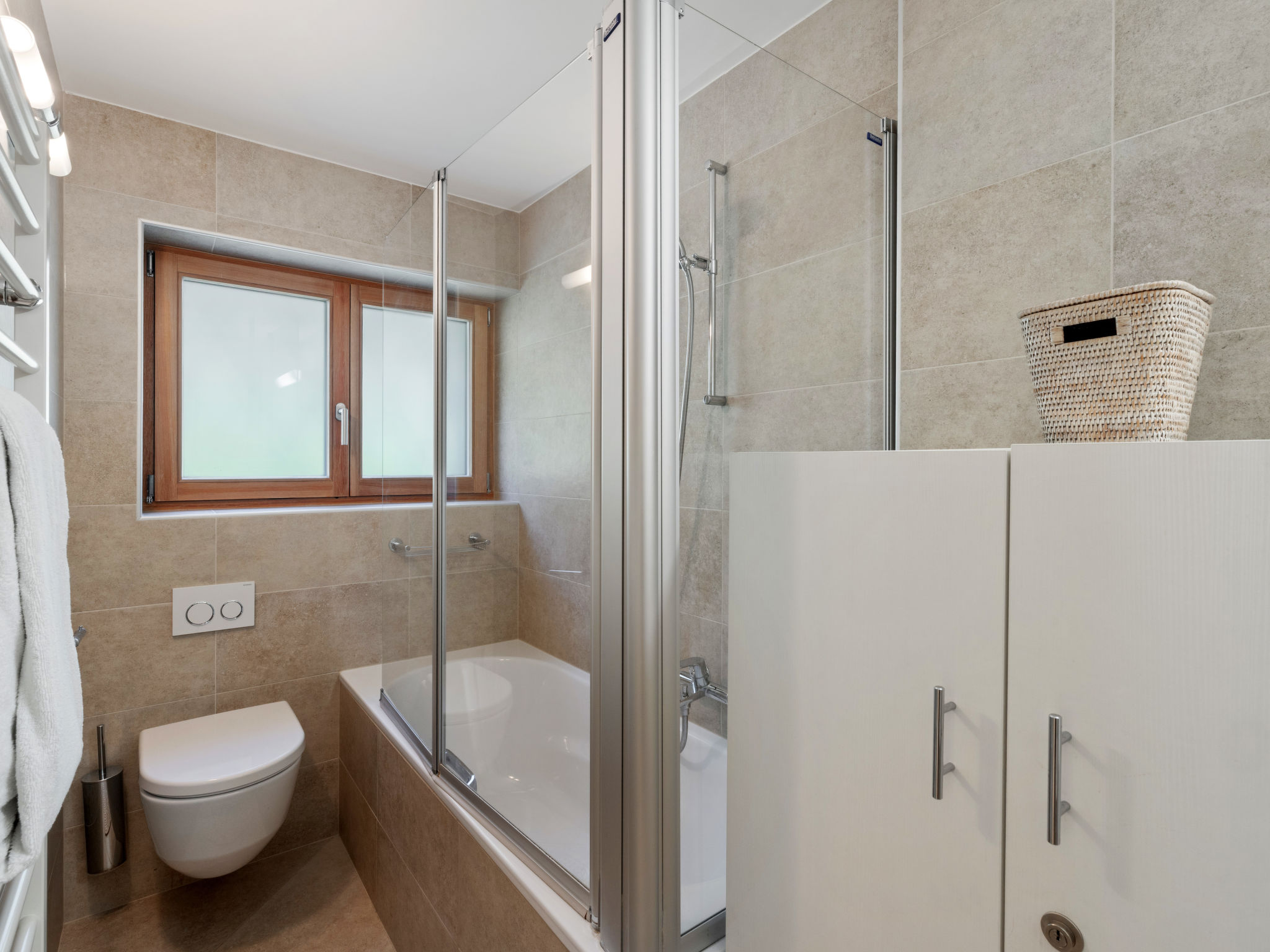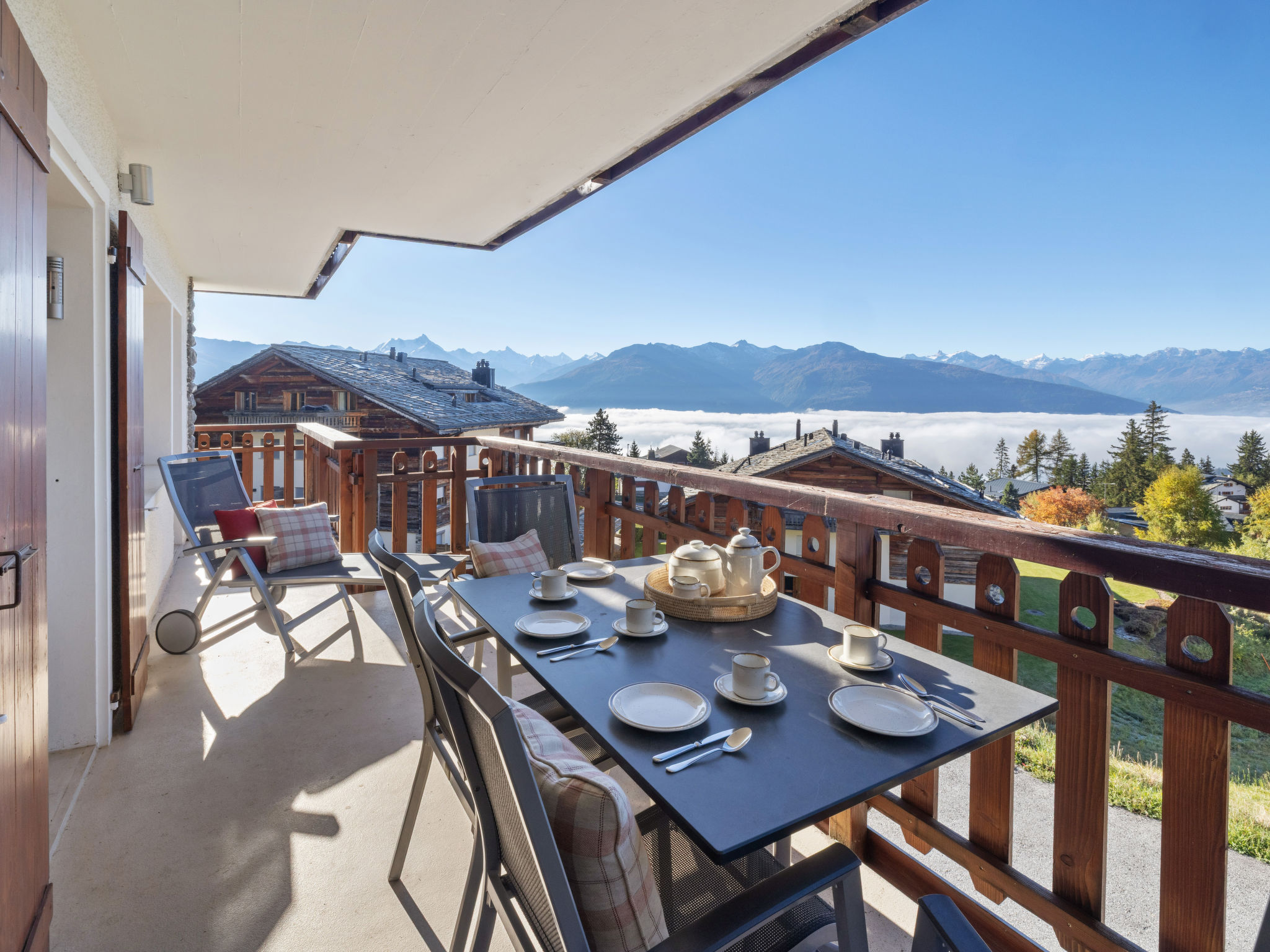 3-Zimmer-Wohnung 70 m2, im erhöhten Erdgeschoss. Komfortabel und modern eingerichtet: Wohn-/Esszimmer mit Kabel-TV. Ausgang zum Balkon. 1 Zimmer mit 1 Doppelbett (2 x 90 cm, Länge 200 cm), Bad/WC. 1 Zimmer mit 1 Doppelbett (2 x 90 cm, Länge 200 cm). Wohnküche (Backofen, Geschirrspüler, 4 Induktionskochplatten, Toaster, Wasserkocher, Mikrowelle, elektrische Kaffeemaschine, Kapseln für die Kaffeemaschine (Nespresso) extra, Racletteofen, Fondue Set (Chinoise, Käse)). Dusche/WC. Grosser Balkon 20 m2, Südwestlage. Balkonmöbel, Liegestühle (2). Sehr schöne Sicht auf die Berge und die Landschaft. Zur Verfügung: Bügeleisen, Haartrockner. Internet (Wireless LAN, gratis). Garage Nr. 2, Höhe 190 cm, Breite 230 cm. Bitte beachten: Nichtraucher-Unterkunft. 1 Haustier/Hund erlaubt. Kein Fahrstuhl.