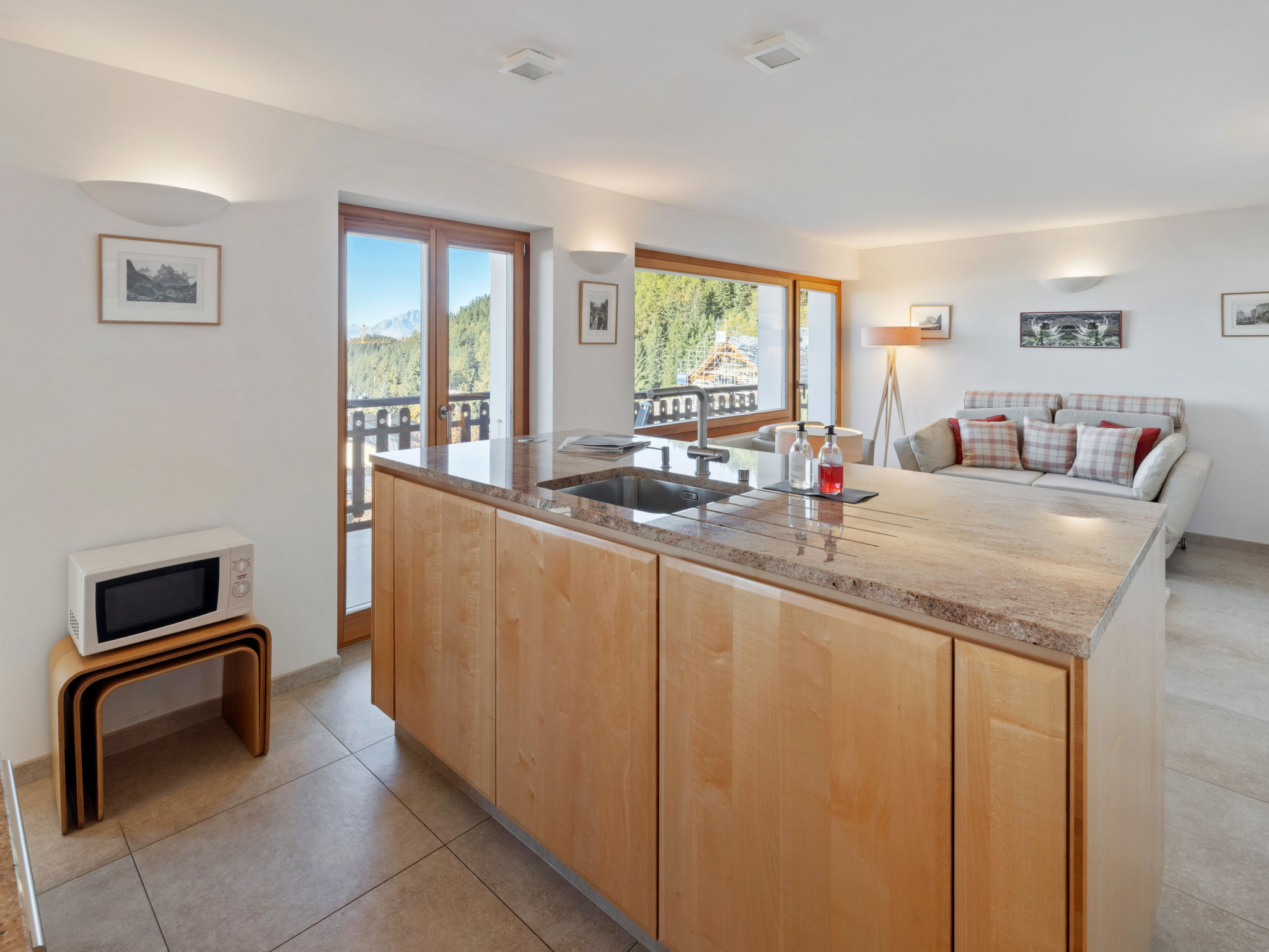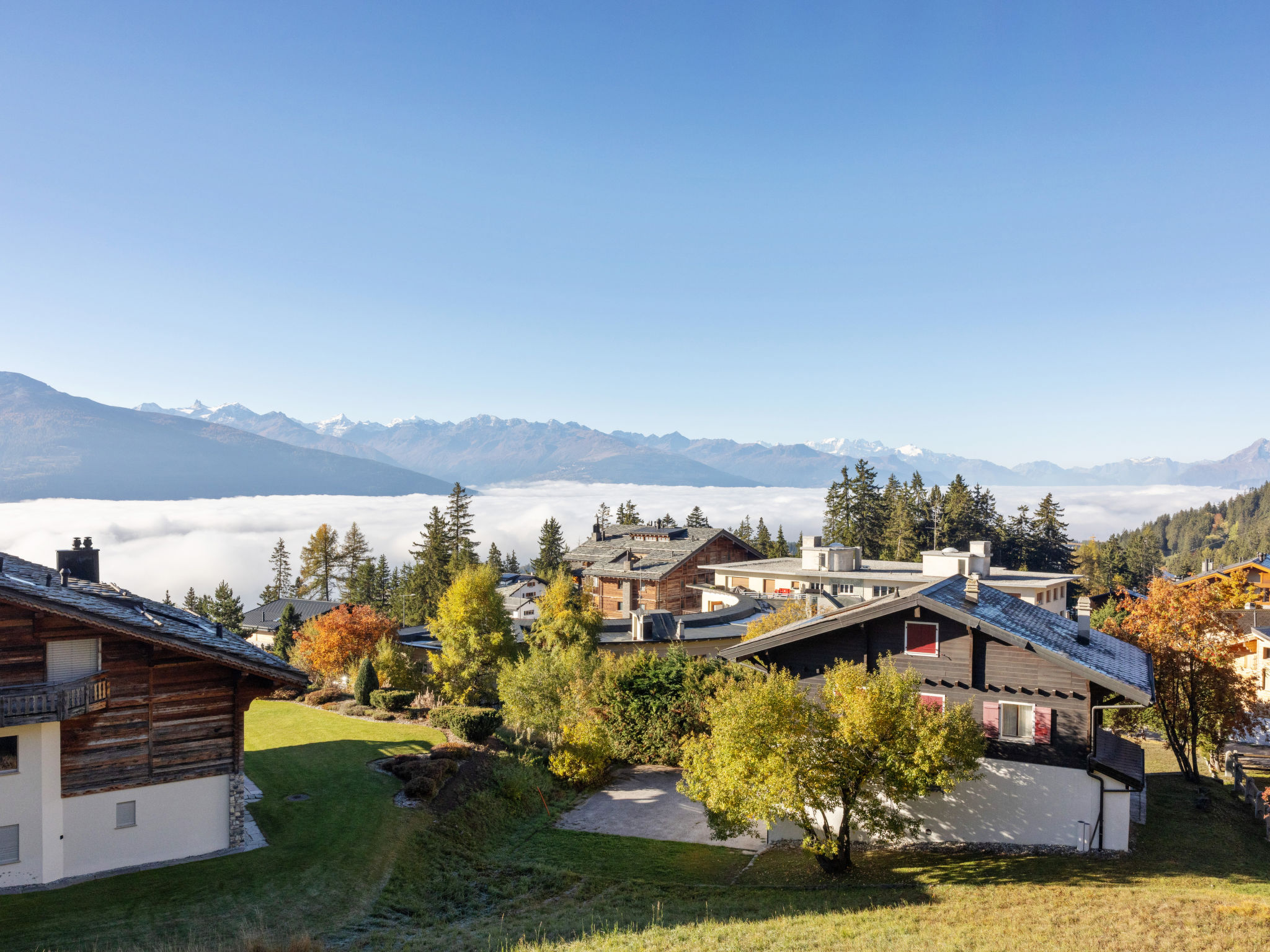 Mehrfamilienhaus "Les Aiguilles Vertes", auf 4 Stockwerken, Baujahr 1962, renoviert im Jahre 2015. Im Ortsteil Vermala, am Ortsrand, 2 km vom Zentrum von Montana, ruhige, erhöhte Lage. Zur Mitbenutzung: naturbelassenes Grundstück 1'273 m2. Im Hause: Skiraum, Waschmaschine, Wäschetrockner (zur Mitbenutzung), Skischuhtrockner. Zufahrt (Rampe). Einzelgarage. Einkaufsgeschäft 1.7 km, Supermarkt 1.5 km, Bäckerei 1.7 km, Bushaltestelle "Vermala Centre" 300 m. Skisportanlagen 1.1 km. Bitte beachten: Gratis Skibus. Pendelbusverkehr im Winter und von Ende Juni bis Mitte September.