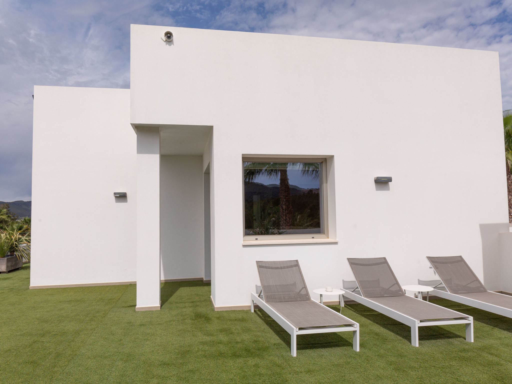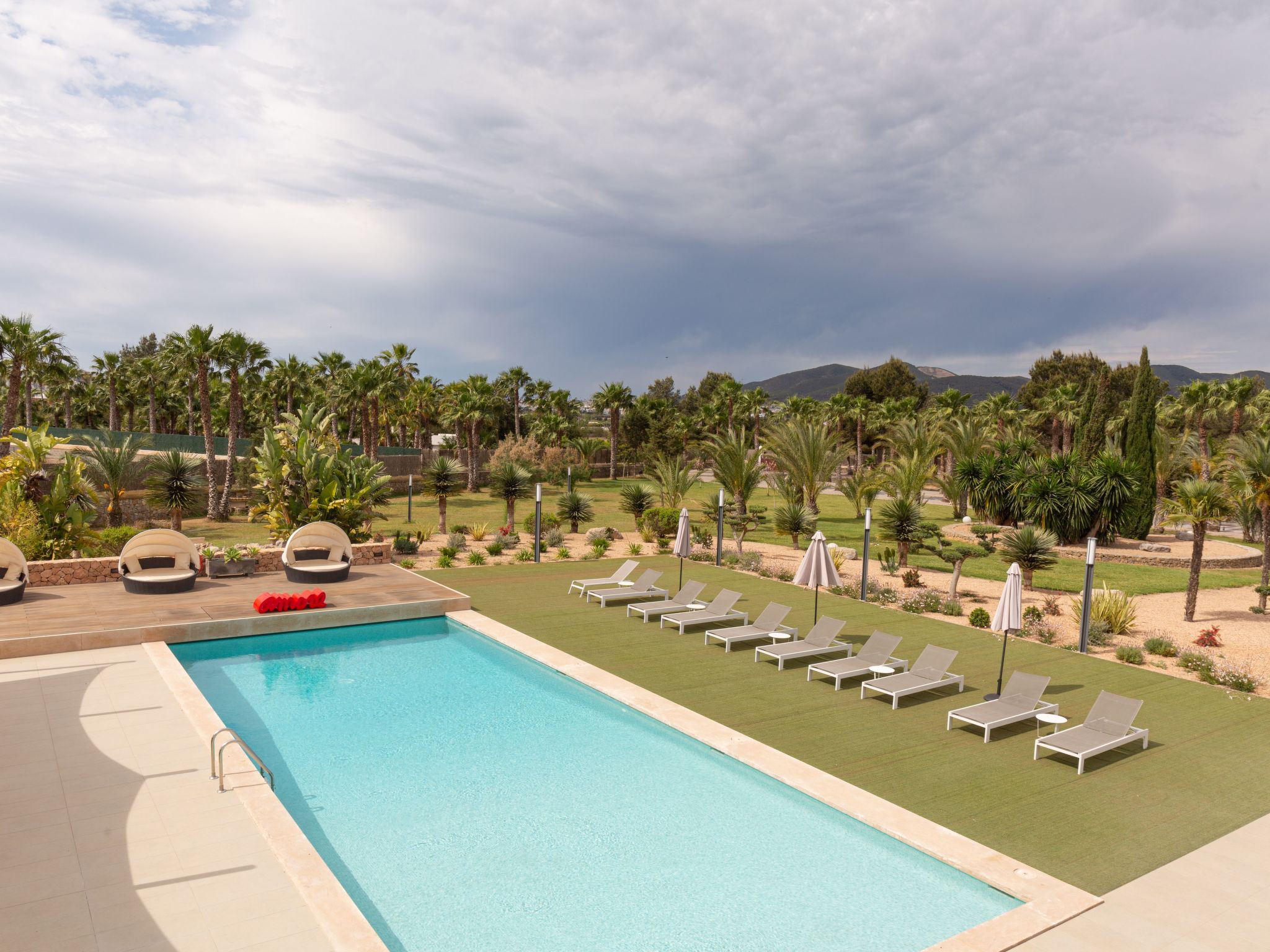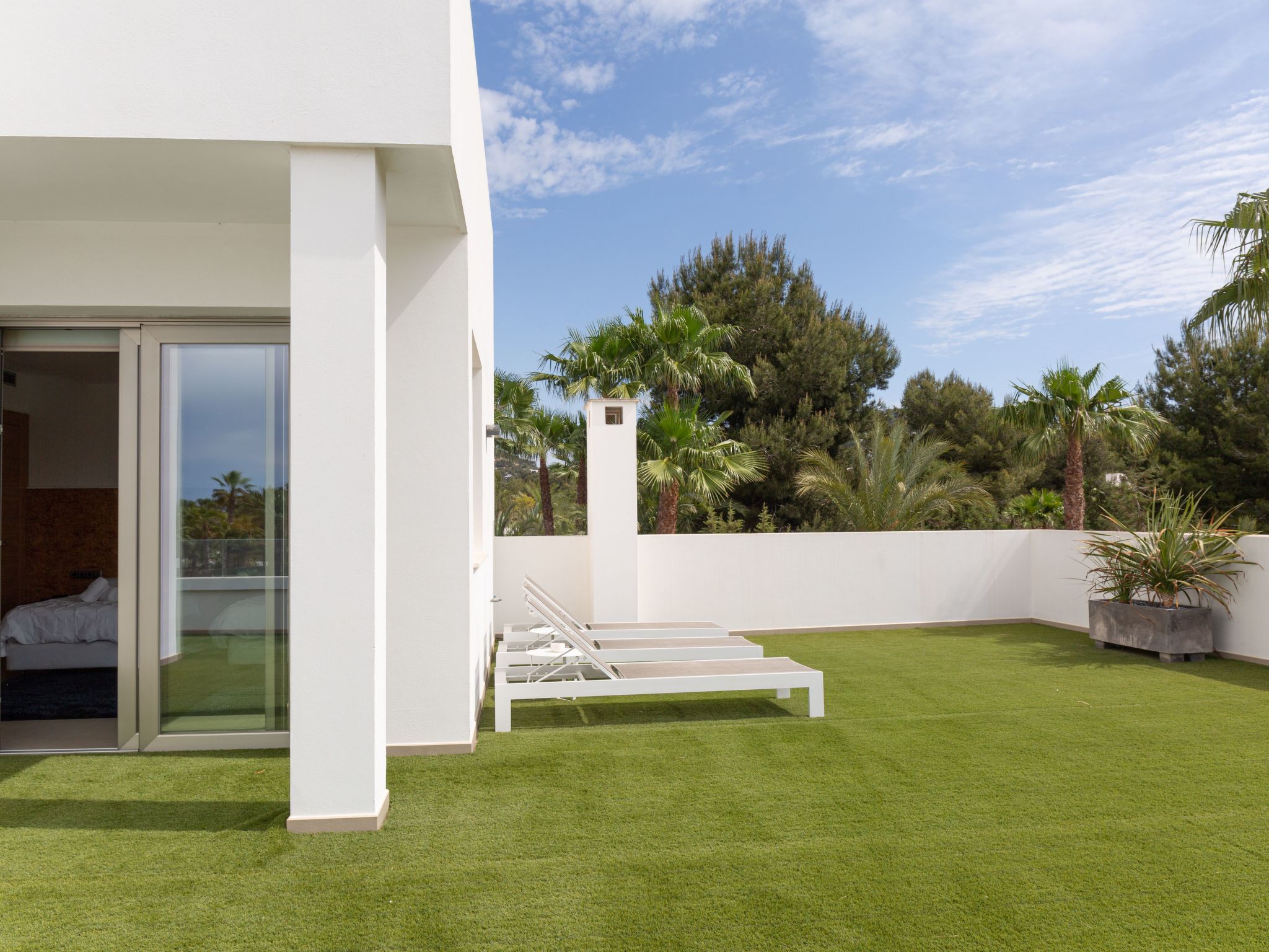 Der Außenbereich der Immobilie ist nicht weniger beeindruckend und verfügt über einen Swimmingpool zur alleinigen Nutzung, der von großzügigen Terrassen und einem privaten Garten umgeben ist, der zum Entspannen in der Sonne Ibizas einlädt. Für diejenigen, die mit einem Elektroauto anreisen, gibt es eine Ladestation, die das Engagement der Villa für Komfort und Nachhaltigkeit unterstreicht. Genießen Sie die private Dachterrasse, den perfekten Ort für Momente der Ruhe und des Abschaltens.