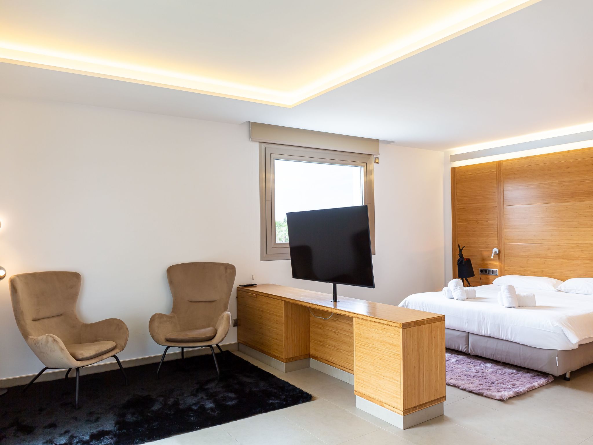Die Villa befindet sich in einer ruhigen und respektvollen Nachbarschaft, ideal für diejenigen, die einen ruhigen Rückzugsort suchen, ohne auf Komfort und Zugang zu modernen Annehmlichkeiten verzichten zu müssen. Obwohl Partys und Veranstaltungen einer vorherigen Genehmigung bedürfen, ist das Anwesen perfekt ausgestattet, um jede Art von Feier auszurichten, mit Extras wie einer Diskothek, einem Fitnessraum und einer Privatwohnung sowie einem hochmodernen Sonos-System, um Ihre Lieblingsmusik in jeder Ecke zu genießen.