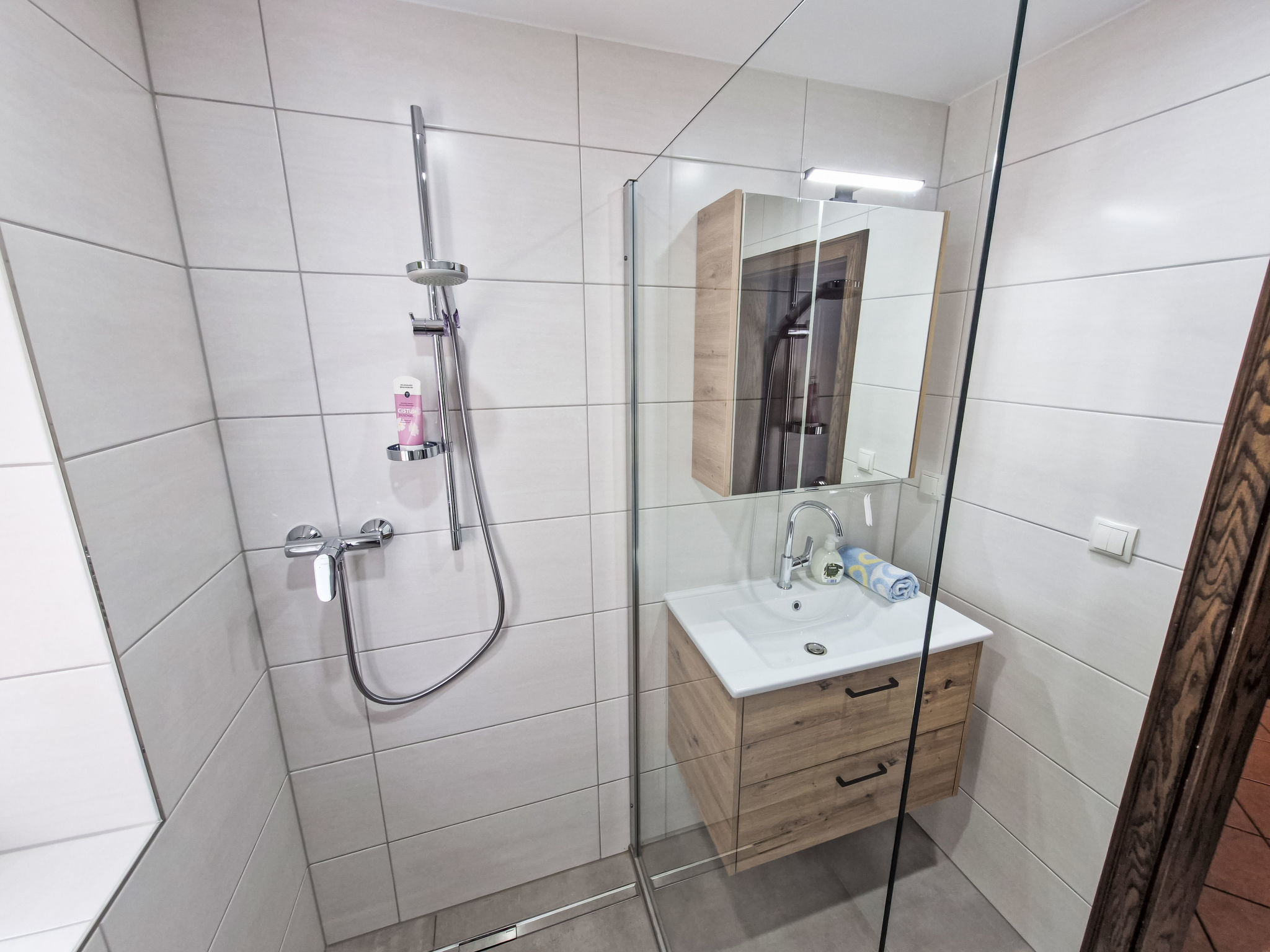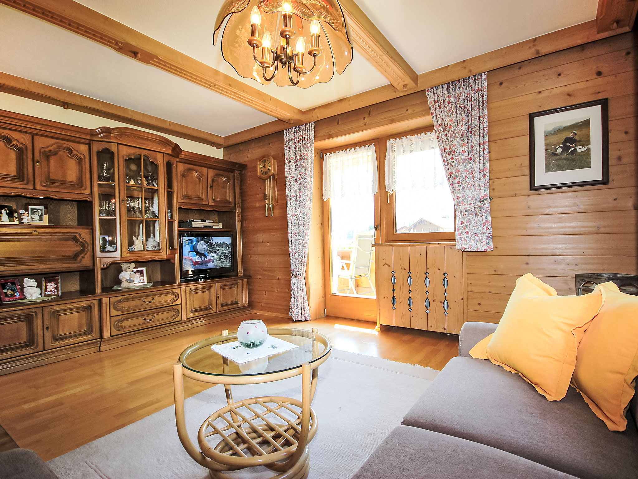 4-Zimmer-Wohnung 85 m2, im Erdgeschoss. Komfortabel und gemütlich eingerichtet: Eingang. Wohnzimmer mit Sat-TV (Flachbildschirm), DVD. Ausgang zum Garten, zum Balkon. 1 Doppelzimmer. 1 Zimmer mit 2 Betten. 1 Zimmer mit 1 Bett und Waschbecken. Küche (Backofen, Geschirrspüler, 4 Glaskeramikherd Platten, Mikrowelle, elektrische Kaffeemaschine) mit Essecke. Dusche, sep. WC. Schöne Sicht auf die Berge. Zur Verfügung: Internet (Wireless LAN, gratis). Bitte beachten: Nichtraucher-Unterkunft.