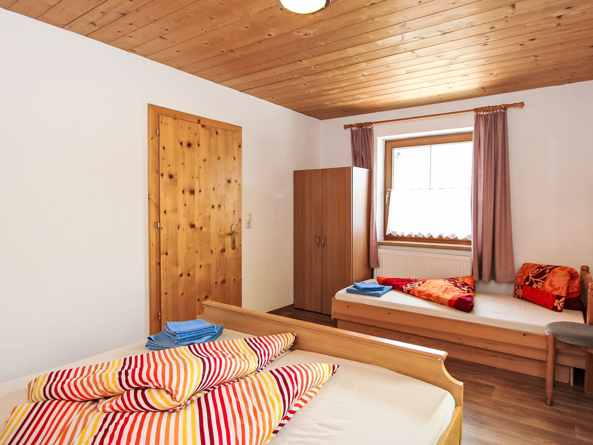 "Zillertalblick", 3-Zimmer-Wohnung 65 m2, im Erdgeschoss. Gemütlich eingerichtet: Eingang. 1 Zimmer mit 1 Bett und 1 Doppelbett. Ausgang zur Terrasse. 1 Zimmer mit 4 Schlafmöglichkeiten. Wohnküche (Backofen, Geschirrspüler, 4 Glaskeramikherd Platten) mit Essecke und Sat-TV (Flachbildschirm). Dusche/WC. Kleine Terrasse. Terrassenmöbel. Herrliche Sicht auf die Berge, das Tal und die Landschaft. Zur Verfügung: Internet (Wireless LAN). Bitte beachten: geeignet für Familien. 1 Haustier/Hund erlaubt. Eigener Eingang. Bei den 4 Schlafmöglichkeiten handelt es sich um ein Doppeletagenbett (2 x 180 cm x 200 cm). Bei Belegung mit 6 oder 7 Personen (Zusatzbetten) steht eine einfache Dusche/WC zusätzlich zur Verfügung (nebenan, selbe Etage).