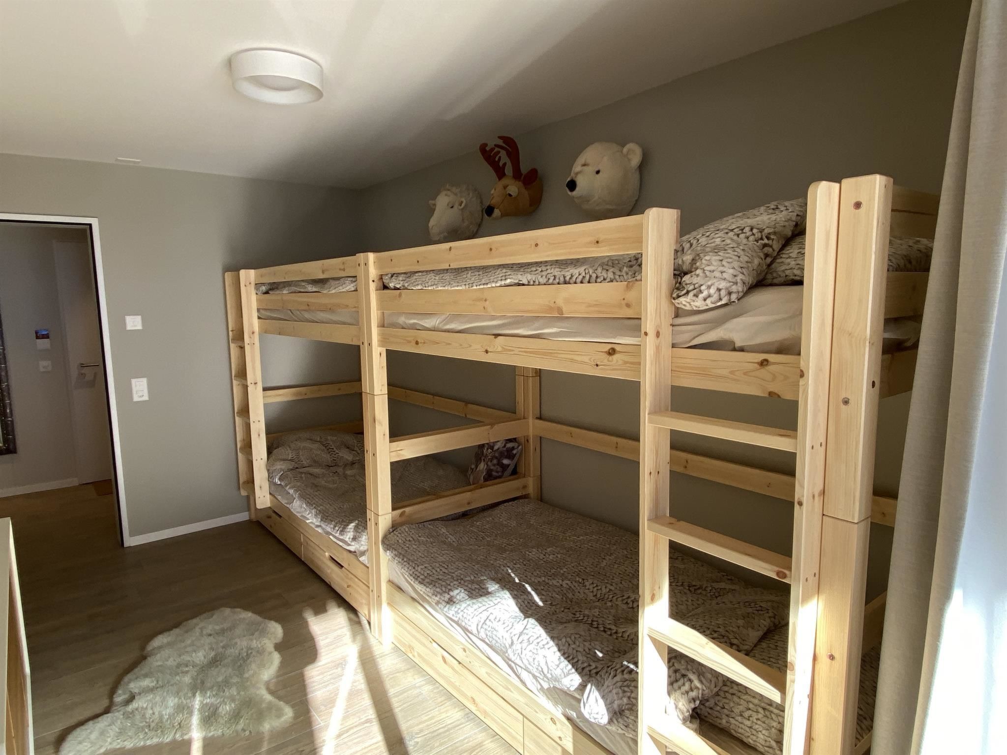 112 m2. Weitere Angaben des Anbieters: AlpenRose – eine geräumige und luxus Ferienwohnung Unsere 8-Persons Wohnung im Herzen von Adelboden wurde 2020 nagelneu geliefert und ist mit allem Komfort ausgestattet! Die Wohnung (112 m2) verfügt über 3 Schlafzimmer: 2 Schlafzimmer mit einem bequemen Boxspringbett und 1 Schlafzimmer mit 2 Etagenbetten. Das erste Badezimmer hat eine Dusche, eine Badewanne, ein Doppelwaschbecken und eine Toilette, das zweite Badezimmer hat eine Dusche, ein Waschbecken und eine Toilette. Das geräumige Wohnzimmer mit Küche bietet Zugang zum Balkon. In der Tiefgarage befindet sich neben einem privaten Parkplatz auch der Skiraum. Die Wohnung ist nur 100 Meter vom Skilift entfernt. Möchten Sie einen Skitag mit anderen Aktivitäten abwechseln? Dann machen Sie einen Tag Schlitten, Snowtubing, drehen Sie auf der überdachten Eisbahn, entdecken Sie Adelboden und seine Umgebung mit dem Trotti-Bike oder sinken Sie auf einen Kinostuhl und genießen Sie einen großartigen Film. Genießen Sie einen frischen Cappuccino in der Morgensonne auf dem geräumigen Balkon mit atemberaubender Aussicht und lehnen Sie sich abends in den weichen Kissen einer wunderschönen Couch zurück und trinken Sie ein Glas guten Wein vor einem knisternden Feuer. Genießen Sie die guten Gespräche oder tauchen Sie in die angenehme Stille ein. Sehr gut ausgestattete Ferienwohnung, unter anderem mit: Bett- und Badwäsche inklusive (Küchen)Tücher inklusive Parkplatz inklusive (Tiefgarage unter Appartement) Digitales Fernsehen Waschmaschine und Wäschetrockner Geschirrspüler Haartrockner und Schminkspiegel Kaffeemaschine mit frischen Bohnen und Nespresso-Maschine schnelles WIFI/WLAN kostenlos Fondue und Gourmet-Set Gefüllter Spielschrank und Spielzeug Holzkamin Skiraum Babybetten auf Anfrage Hochstühle auf Anfrage Wickelauflage auf Anfrage Nichtraucherwohnung.