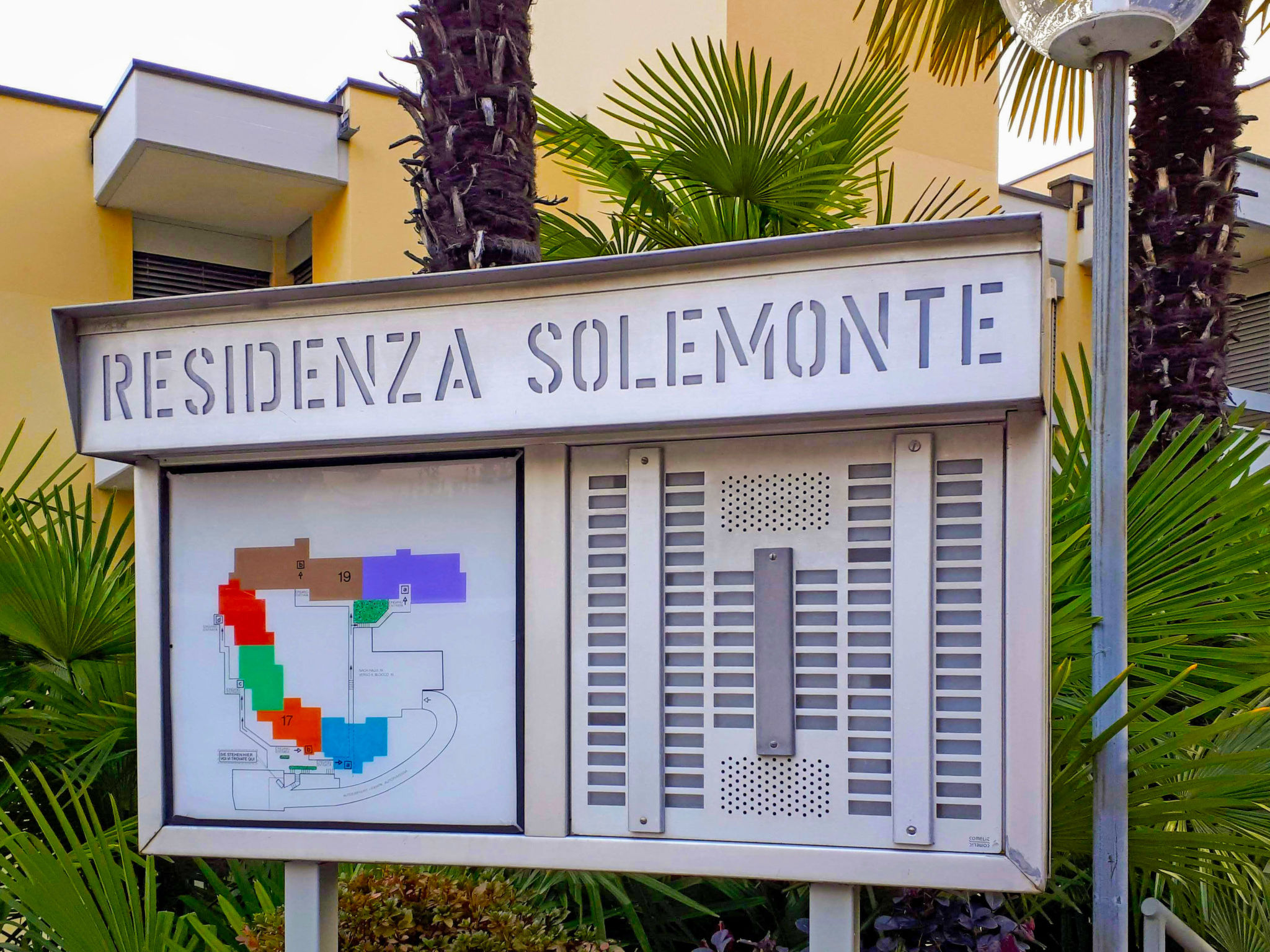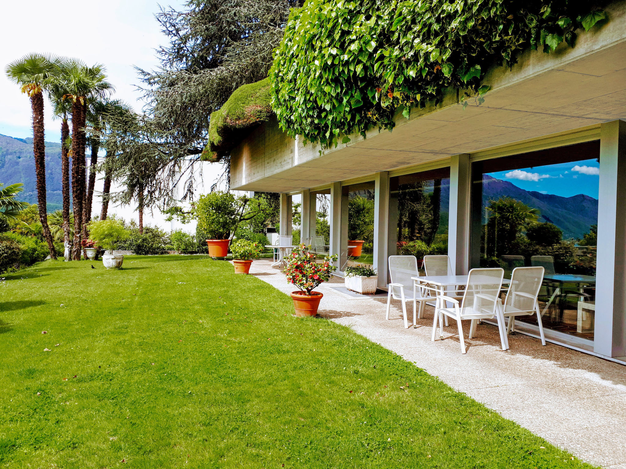 Locarno - Monti: Schönes, komfortables Mehrfamilienhaus "Residenza Solemonte", Baujahr 1980, renoviert. Am Ortsrand, ruhige, sonnige, erhöhte Lage, im Grünen. Zur Mitbenutzung: Grundstück, Park, Liegewiese, wunderschöner Garten zum Entspannen, Hallenbad eckig beheizt (20 x 6 m, 140 - 140 cm tief) mit Innentreppe. Dusche/WC im Poolbereich, Aussendusche, Tischtennis, Sitzplatz, Terrasse. Im Hause: Sauna (extra). Fitnessraum, Spielzimmer, Waschmaschine (extra), Wäschetrockner (zur Mitbenutzung, extra), Trockenraum. Zufahrt bis zum Haus. Parkplatz (beschränkte Anzahl, extra) beim Haus, öffentliche Parkplätze. Einkaufsgeschäft, Lebensmittelgeschäft, Restaurant, Café, Bushaltestelle 200 m, Bahnstation "Locarno - Muralto SBB-CFF". Golfplatz (18 Loch) 7 km, Wanderwege ab Haus 50 m, Luftseilbahn 700 m. Nahe gelegene Sehenswürdigkeiten: Ascona, schöner Wochenmarkt am Dienstag, Brissago Inseln, Piazza Grande, Locarno, Falconeria, Locarno, Madonna del Sasso, Ronco s/Ascona, Mercato: Cannobio IT, Intra IT, Luino IT, Ponte Tresa IT. Bekannte Seen in der Umgebung sind gut erreichbar: Lago Maggiore, Lago di Lugano, Lago di Como. Wandergebiete: Cardada, Monte Bré, Centovalli, Valle Verzasca, Val Resa, Valle Maggia, Monte Tamaro-Splash and SPA, Monte Lema. Bitte beachten: Babyausstattung auf Anfrage (extra). ,Bitte beachten: Das Hallenbad bleibt zwecks jährlicher Reinigung geschlossen von ca. 01.02. - 20.02.