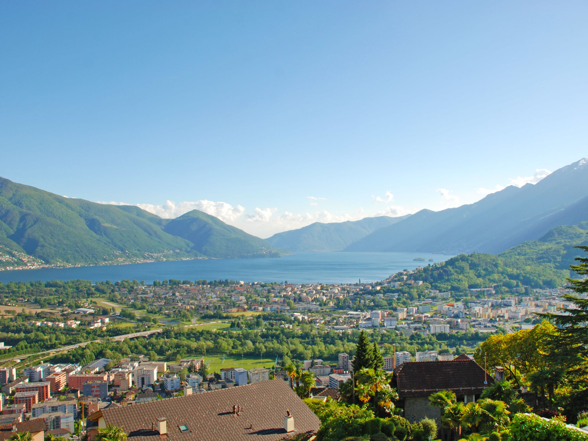 "Vista Panorama", 1-Zimmer-Wohnung 50 m2 im 3. Stock, Südlage. Geräumig und hell, renoviert im Jahre 2019, komfortabel und modern eingerichtet: offenes grosses Wohn-/Schlafzimmer mit Panoramafenster mit 1 franz. Bett (160 cm, Länge 200 cm), Esstisch und Kabel-TV (Flachbildschirm). Ausgang zur Terrasse. Grosse, offene Küche (Backofen, Geschirrspüler, 4 Glaskeramikherd Platten, Tiefkühler, elektrische Kaffeemaschine, Kapseln für die Kaffeemaschine (Delizio)) mit Esstisch. Dusche/WC. E-Heizung. Grosse Terrasse 25 m2. Terrassenmöbel (2). Herrliche Panoramasicht auf den See, die Berge, das Tal, die Landschaft und die Ortschaft. Zur Verfügung: Bügeleisen, Kinderhochstuhl, Babybett bis 2 Jahre (extra), Haartrockner. Internet (Wireless LAN, gratis). Bitte beachten: Nichtraucher-Unterkunft.
