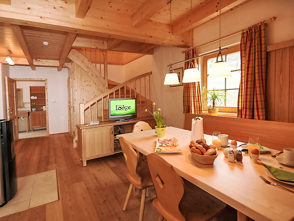 "Luxury Lodge", 4-Zimmer-Chalet 95 m2. Objekt geeignet für 6 Erwachsene + 2 Kinder. Geschmackvoll und mit viel Holz eingerichtet: Eingang. Wohn-/Esszimmer mit Esstisch und Sat-TV (Flachbildschirm), Radio. Offene Küche (4 Kochplatten, Geschirrspüler, elektrische Kaffeemaschine, Kombinationsmikrowelle). Dusche, sep. WC, Sauna. Obergeschoss: 1 Doppelzimmer. 2 Doppelzimmer, jedes Zimmer mit 1 Diwanbett. Dusche/WC. Kleiner Balkon, kleine Terrasse. Terrassenmöbel, Abstellkammer. Sehr schöne Sicht auf die Berge und die Skipiste. Zur Verfügung: Sauna, Safe, Haartrockner. Internet (Wireless LAN, gratis). 1 Haustier/Hund erlaubt.