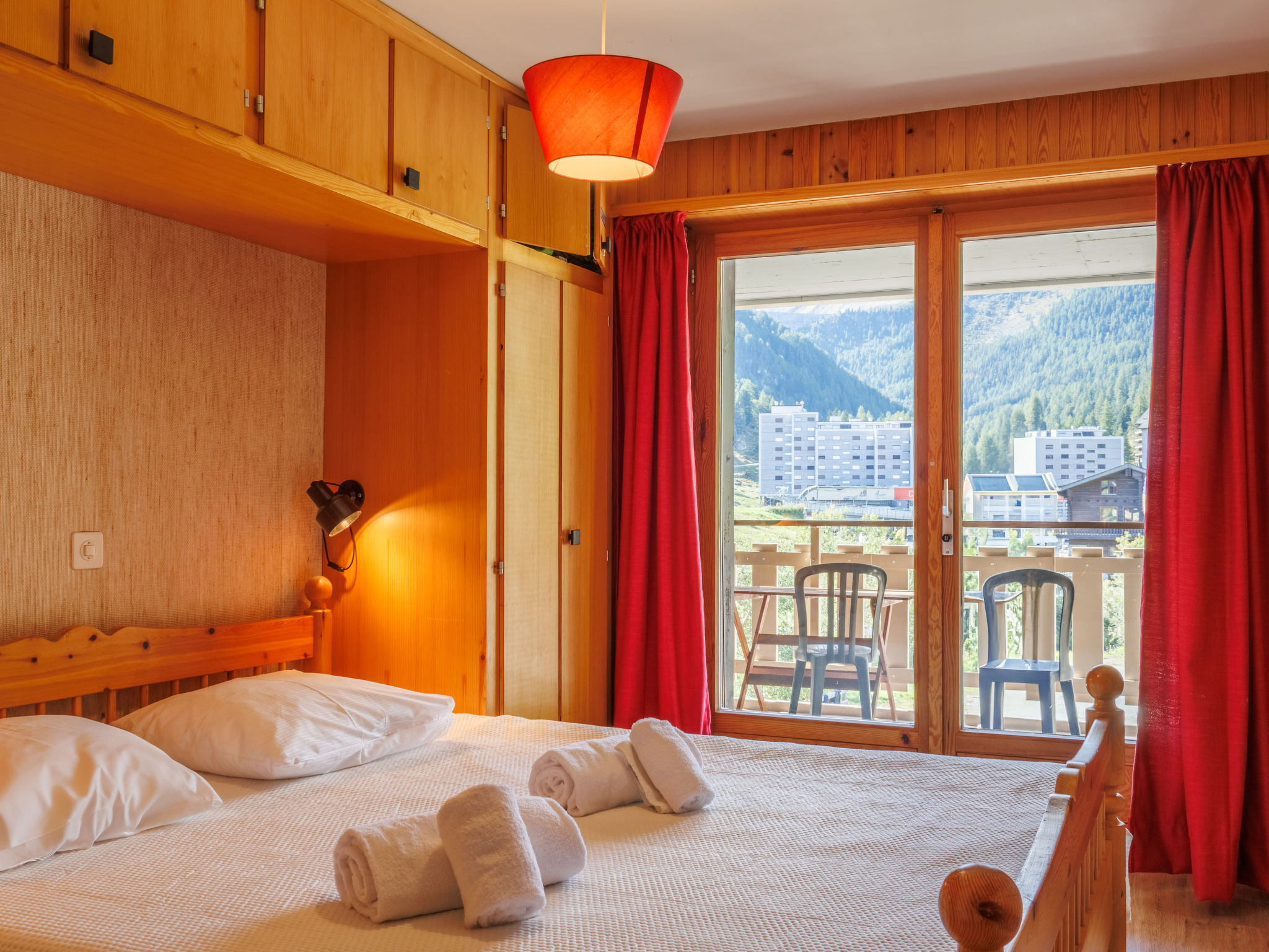 "Dents Rousses H2", 2-Zimmer-Wohnung 45 m2 im 2. Stock. Einfach eingerichtet: Eingang mit 1 x 2 Etagenbetten, Kabel-TV, Radio, CD und DVD. Ausgang zum Balkon. Wohn-/Esszimmer. 1 Zimmer mit 1 Doppelbett. Kochnische (3 Kochplatten, Backofen, Geschirrspüler). Bad/WC. Balkon, Südlage. Zur Verfügung: Haartrockner. Internet (Wireless LAN). Garage Nr. 7. Bitte beachten: Nichtraucher-Haus. Kamin ausser Betrieb.