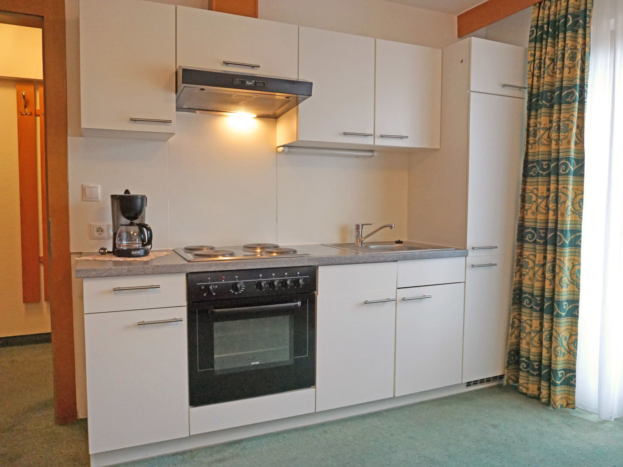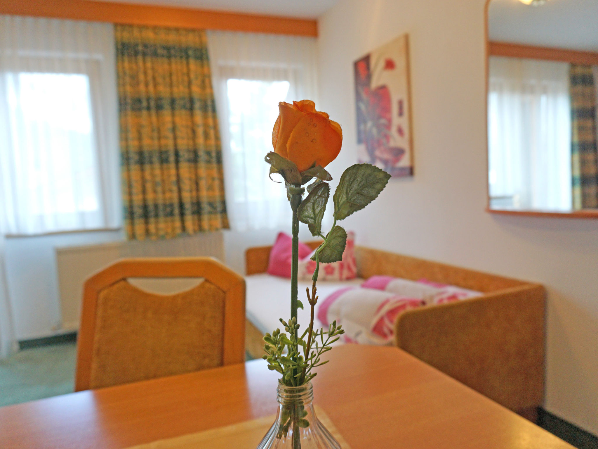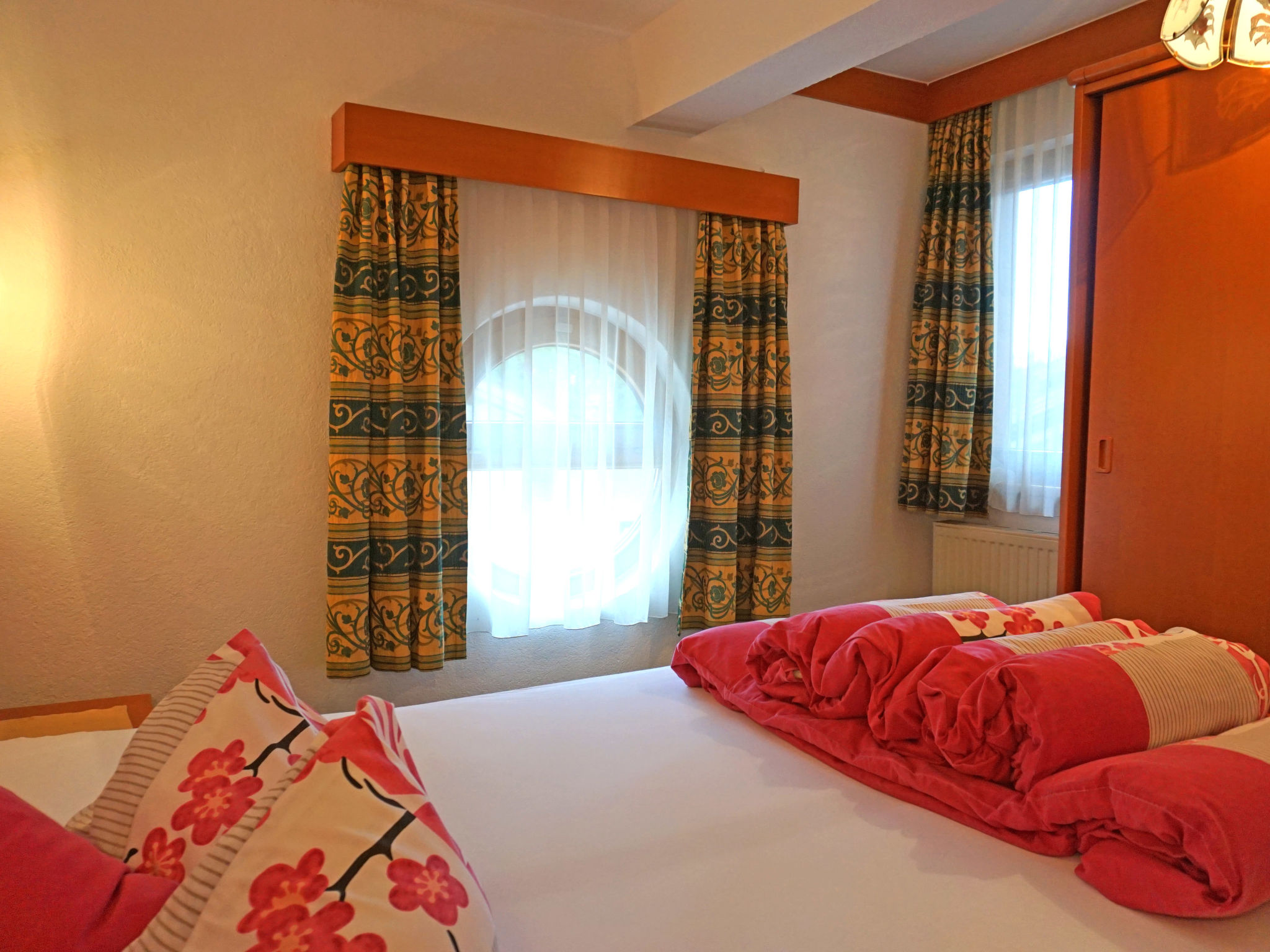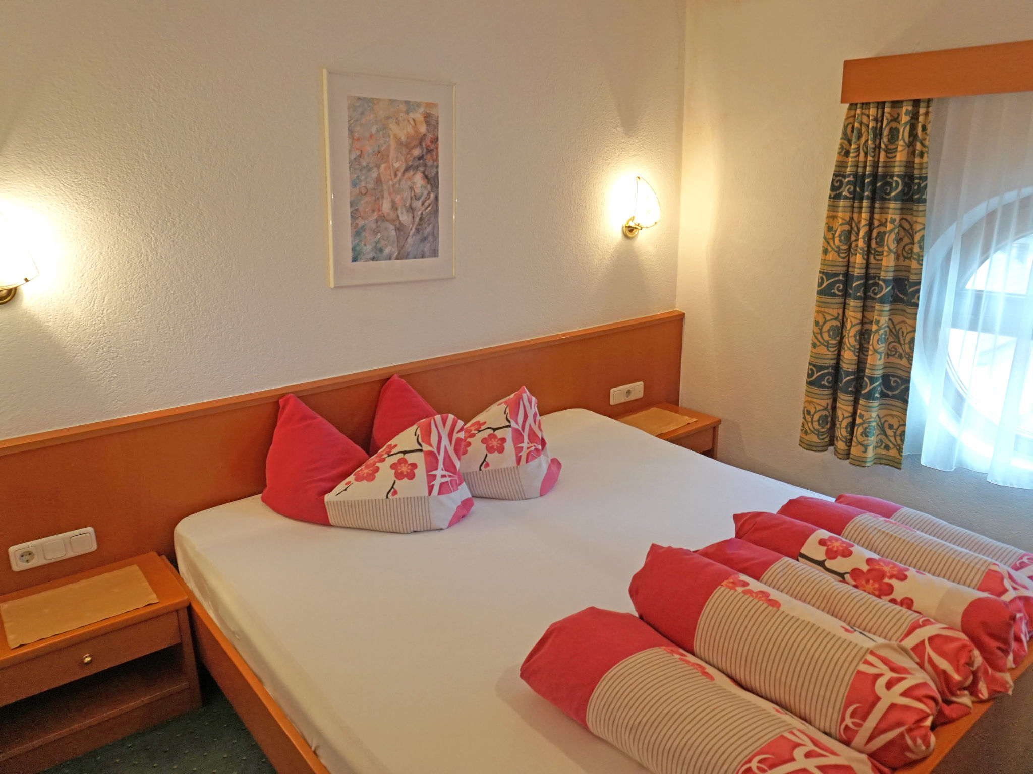 2-Zimmer-Wohnung 35 m2, Nordlage. Modern und gemütlich eingerichtet: Wohn-/Schlafzimmer mit 1 Doppeldiwanbett, Esstisch und Sat-TV. 1 Doppelzimmer. Kochnische (4 Kochplatten, Backofen). Dusche/WC. Balkon. Zur Verfügung: Telefon, Safe, Haartrockner. Internet (Wireless LAN, extra). 1 Haustier/Hund erlaubt.