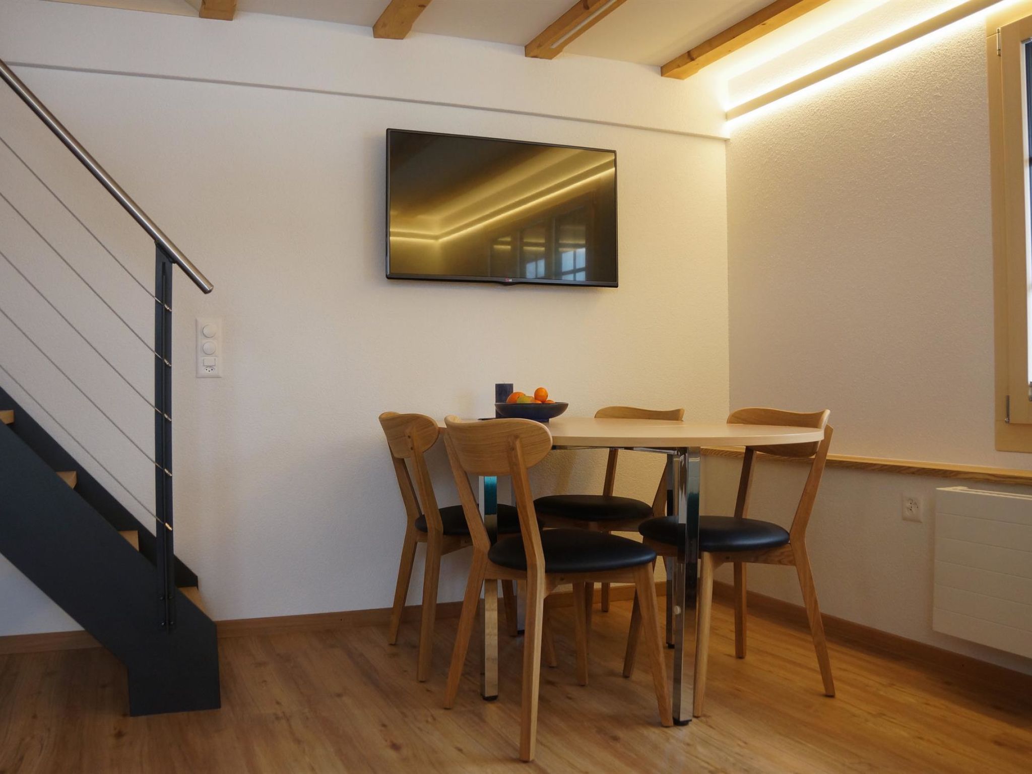 Inklusive Bett-, Küchen- und Badezimmerwäsche, Elektrizität, reservierter Parkplatz, Skiraum, Velounterstand, WiFi und Endreinigung.