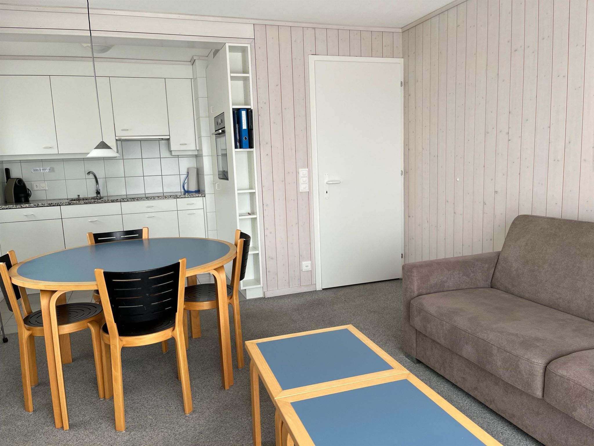 3-Zimmerwohnung, 1 Wohnküche/-Zimmer mit Esstisch, Geschirrspülmaschine, Filterkaffeemaschine, Fondue-Set, Sofa, TV, Radio und Telefon. 1 Schlafzimmer mit 2 Etagenbetten (4x90x190cm), 1 Schlafzimmer mit 2 Betten (2x90x190cm) nebeneinander und einem Schrank. 1 Dusche/WC. WiFi. Kinderbett (60x120cm) inkl. Bettwäsche vorhanden.