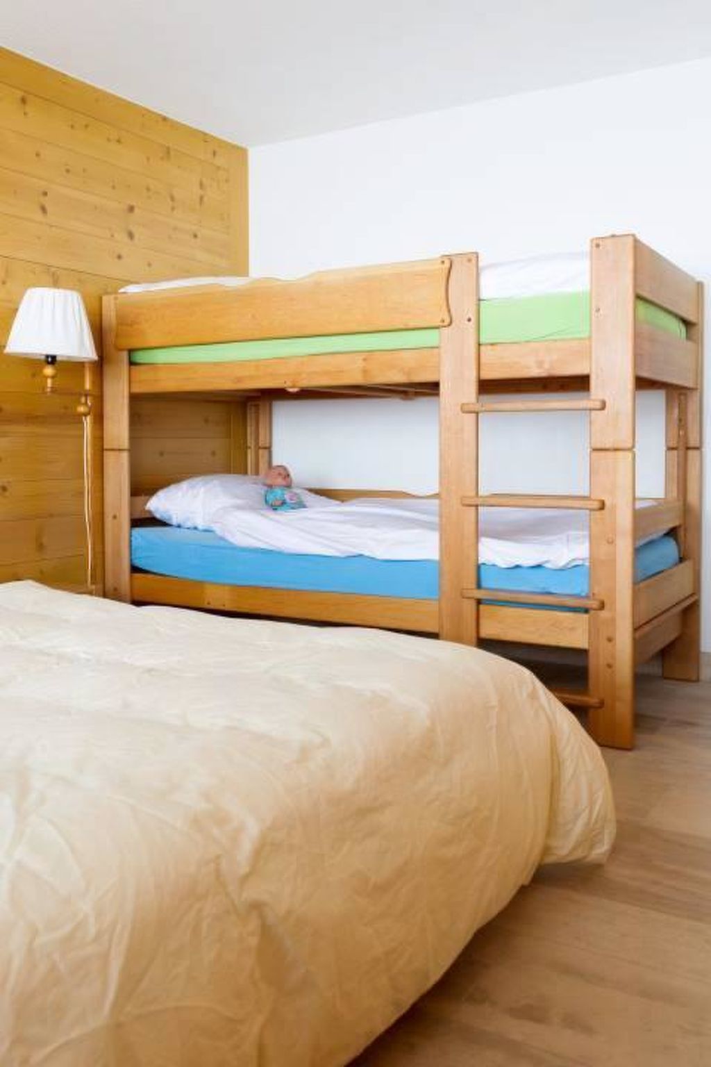 Helles Wohn-/Esszimmer mit halboffener Küche (u.a. ausgestattet mit Keramikherd, Backofen, Mikrowelle, Geschirrspülmaschine, Kapsel-Kaffeemaschine (Nespresso) sowie Fondue- und Raclette-Set), Esstisch, Cheminée, gemütlicher Sitzgruppe, TV, DVD-Player und Radio mit CD-Player. 1 Schlafzimmer mit 1 Doppelbett/Grandlit (160x200cm), Balkonzugang und Badezimmer mit Badewanne/WC. 1 Schlafzimmer mit 1 Doppelbett (180x200cm) und 1 Etagenbett (2x90x200cm). 1 Schlafzimmer mit 1 Doppelbett (180x200cm) und TV. Alle Schlafzimmer verfügen über Einbauschränke. 1 separates Badezimmer mit Dusche/WC. Die ganze Wohnung verfügt über Bodenheizung. WiFi. Kinderbett (65x135cm) inkl. Bettwäsche und Kinderhochstuhl auf Anfrage vorhanden.