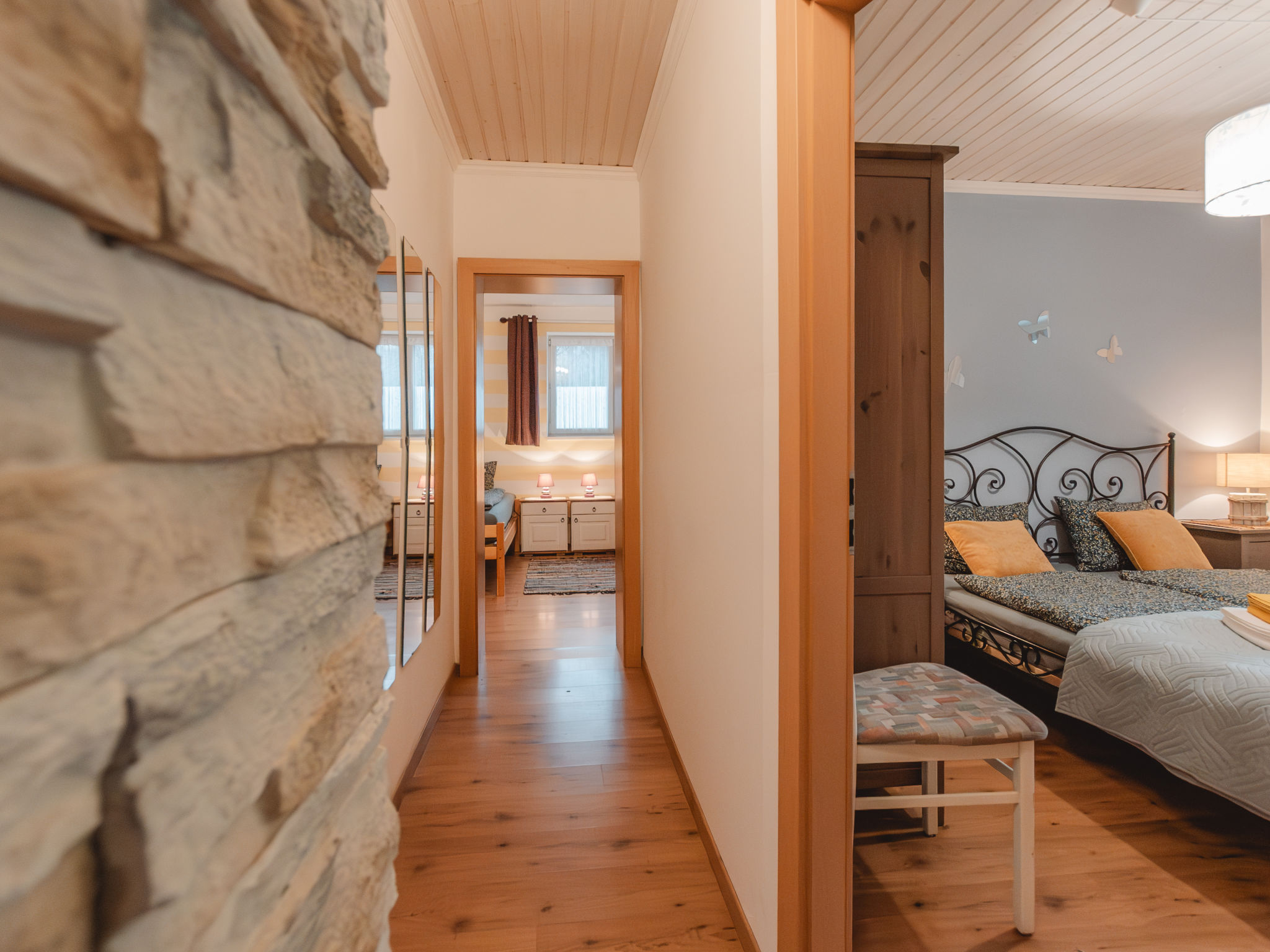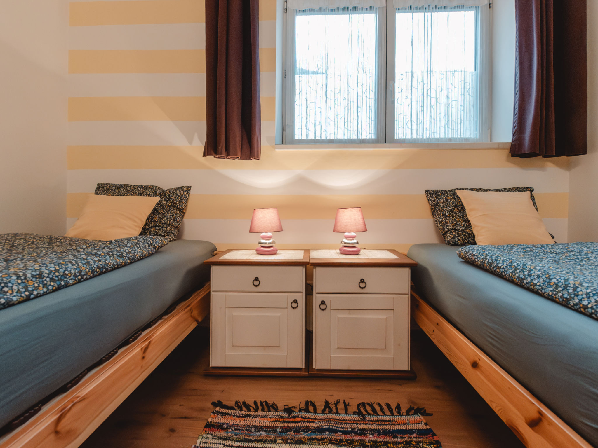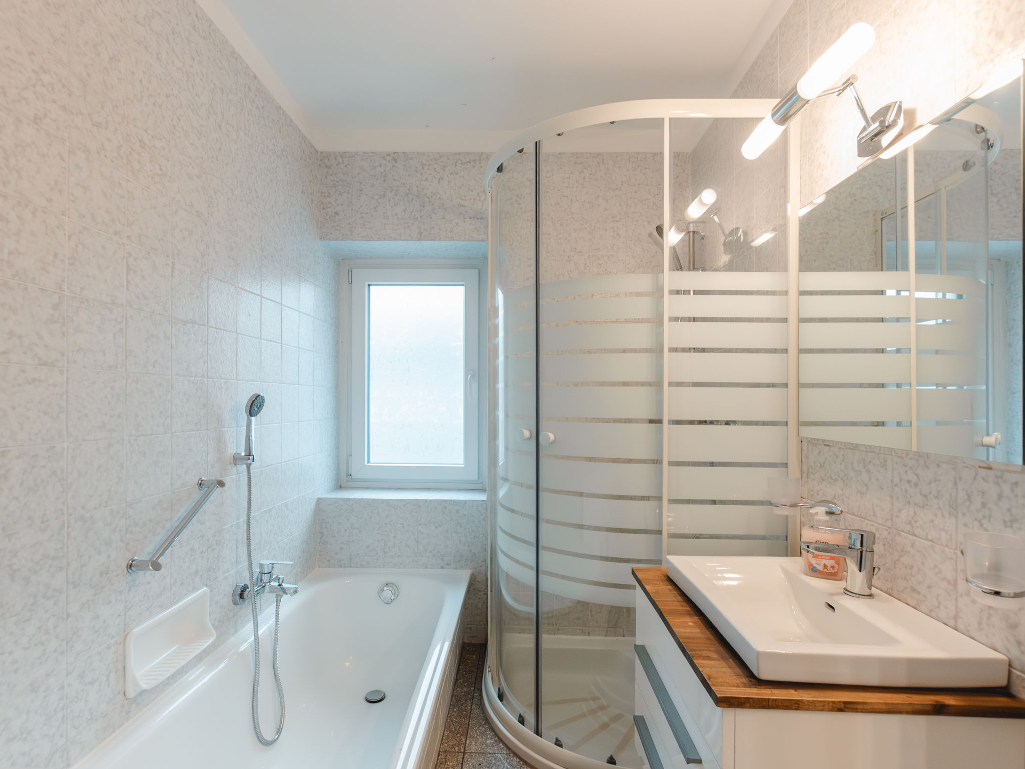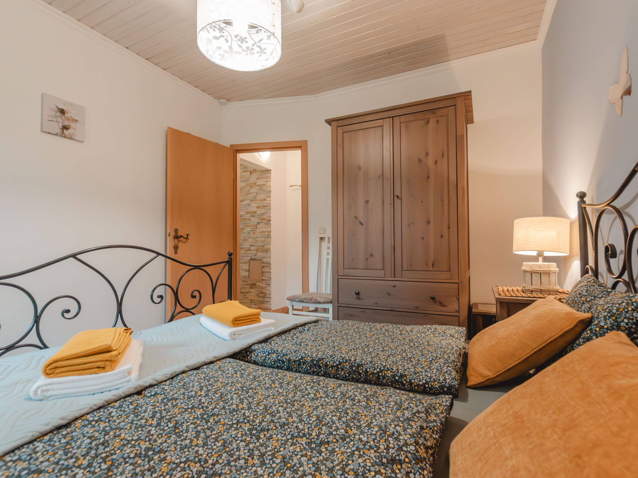 3-Zimmer-Wohnung 67 m2, im Erdgeschoss. Geräumig, vollständig renoviert im Jahre 2013, modern eingerichtet: Eingang. Wohn-/Esszimmer mit 1 Doppeldiwanbett (1 x 150 cm, Länge 200 cm), Esstisch und Sat-TV (Flachbildschirm). Ausgang zum Garten, zur Terrasse. 1 Doppelzimmer mit 1 franz. Bett (160 cm, Länge 200 cm). 1 Zimmer mit 2 Betten. Offene Küche (Backofen, Geschirrspüler, 4 Glaskeramikherd Platten, Toaster, Wasserkocher) mit kleiner Bar. Bad/Dusche/WC. Terrasse 15 m2, Rasen 20 m2. Terrassenmöbel. Herrliche Sicht auf die Berge und die Landschaft. Zur Verfügung: Waschmaschine. Internet (Wireless LAN, gratis). Bitte beachten: Nichtraucher-Unterkunft, Nichtraucher-Haus. 1 Haustier/Hund erlaubt. Achtung: Kleinkinder und Babies gelten als volle Person und können nicht kostenfrei mitgenommen werden. 50403-000215-2020