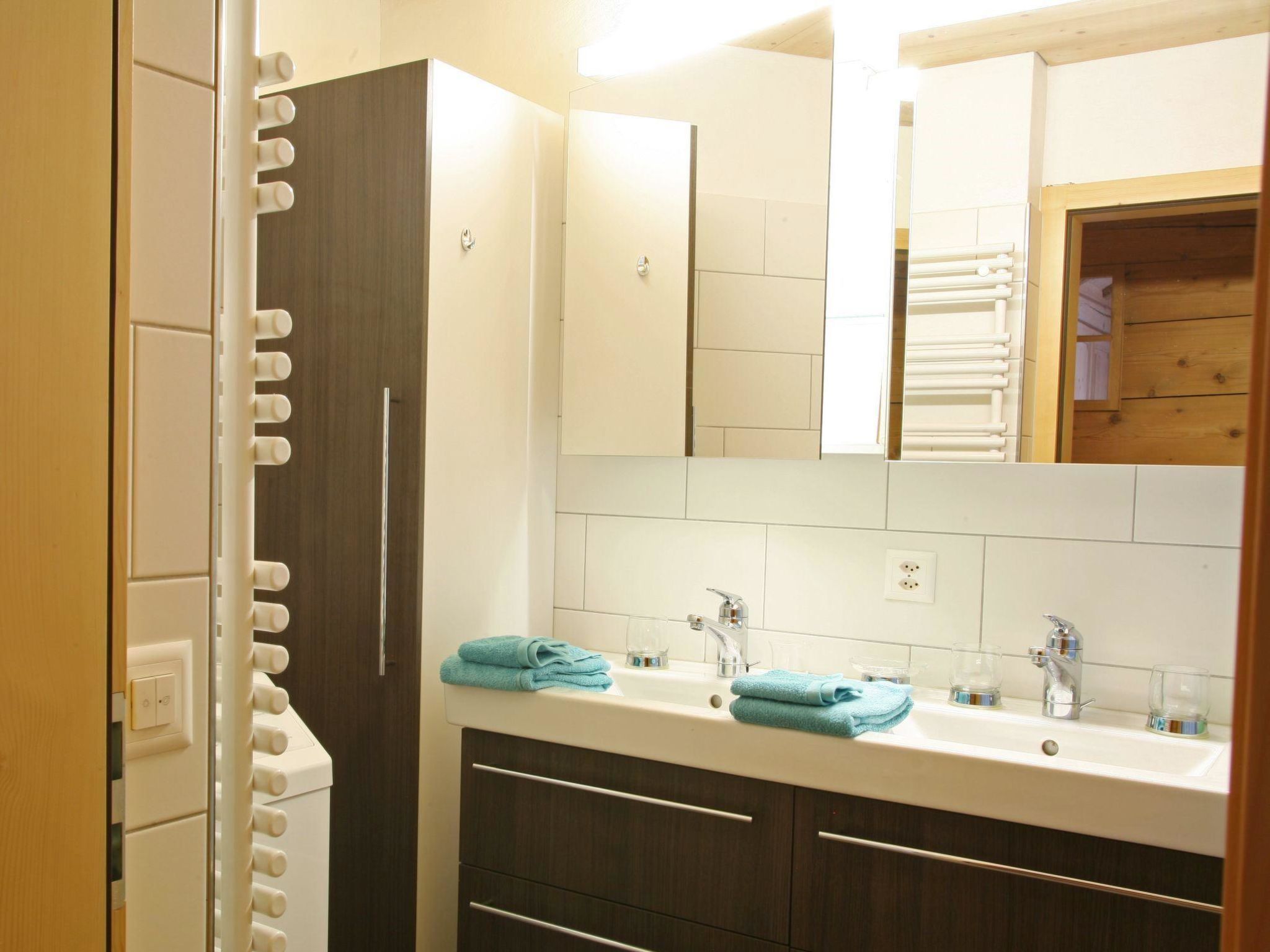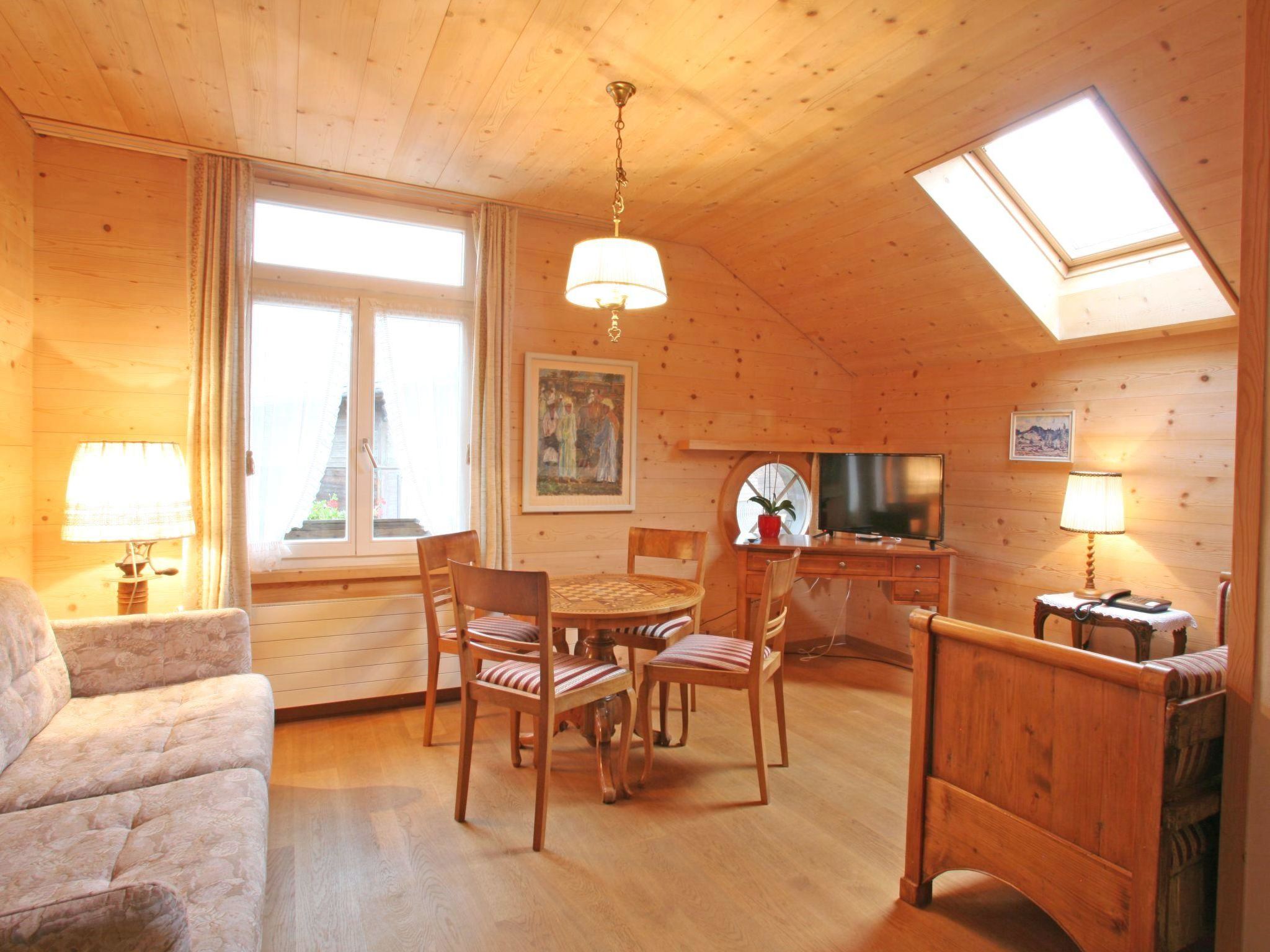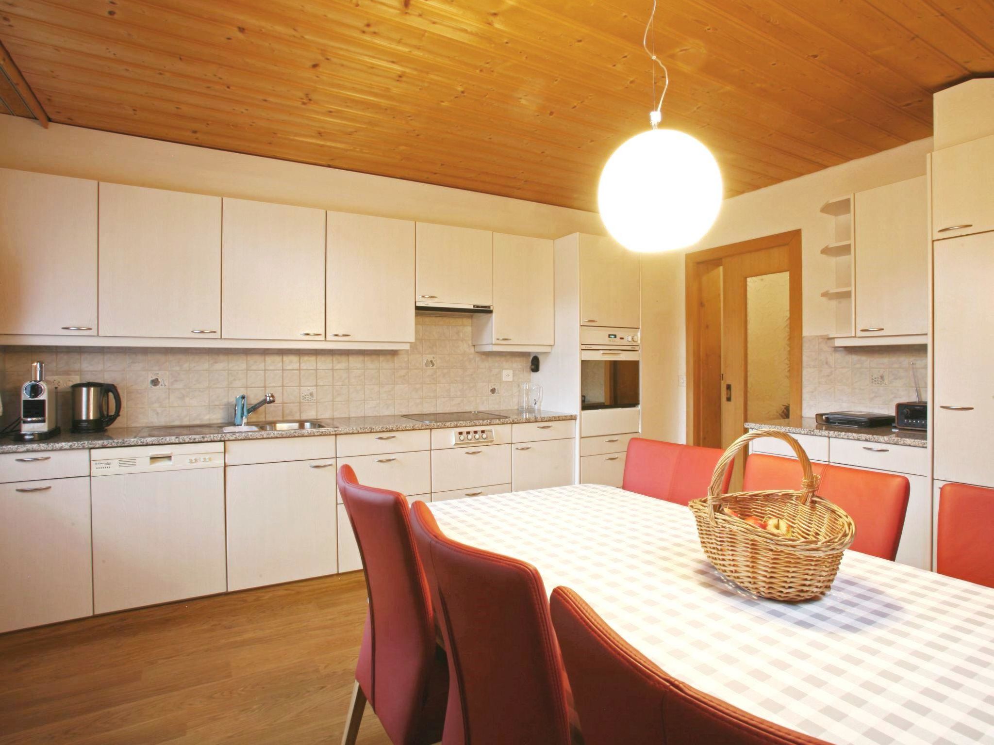 Grosses Esszimmer mit Esstisch und offener Küche (u.a. ausgestattet mit Keramikherd, Backofen, Geschirrspüler, Kühlschrank, Gefrierschrank, Kapsel-Kaffeemaschine (Nespresso) sowie Fondue- und Raclette-Set). Ein kleiner Balkon mit Aussicht auf den Rinderberg ist via Esszimmer zugänglich. Wohnzimmer mit TV, 2 Sofas und kleinem Tisch. Schlafzimmer 1 (Nord) mit 2 zusammengeschobenen Einzelbetten (2x90x190cm). Schlafzimmer 2 (Ost) mit 2 Grandlits (je 140x200cm - für 2 Erwachsene oder bis zu 4 Kindern geeignet). Schlafzimmer 3 (West) mit 1 Einzelbett (90x190cm). Badezimmer 1 mit Duschkabine/WC. Badezimmer 2 mit Badewanne und Waschmaschine (ohne WC). WiFi verfügbar. Kinderbett (60x120cm inkl. Bettwäsche) und Kinderhochstuhl vorhanden.