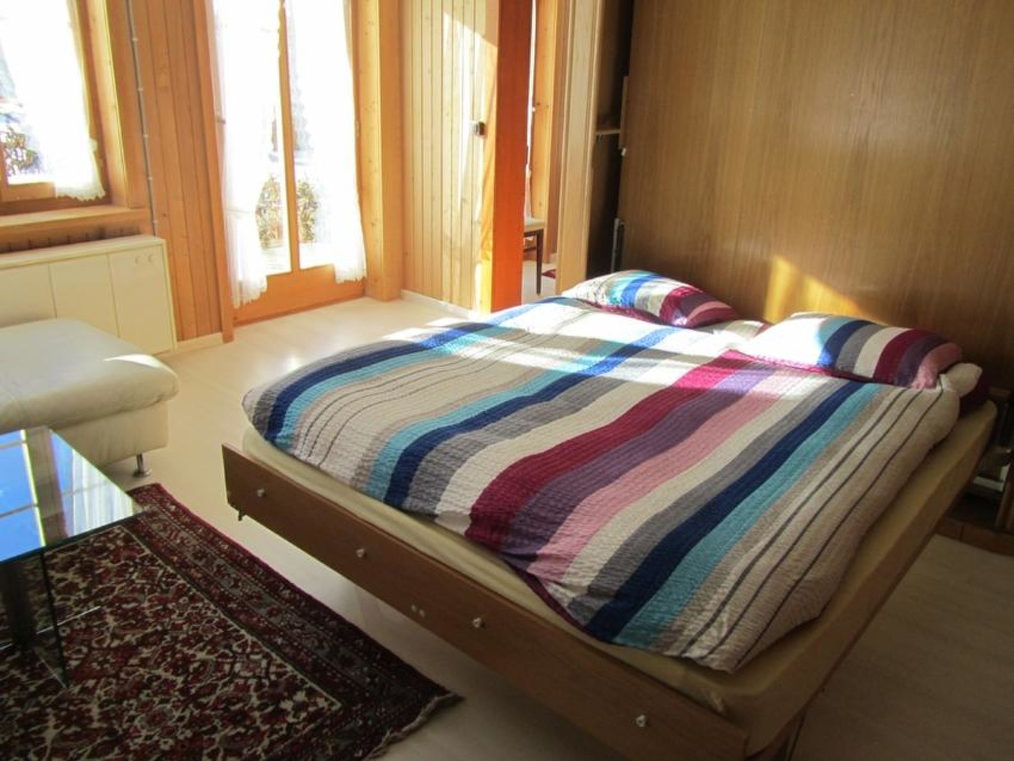 2-Zimmerwohnung am Dorfrand. 1 Schlafzimmer mit 1 Doppelbett und 1 Kajutenbett. Im Wohnzimmer steht ein Drehklappbett, welches Platz für 2 weitere Personen bietet. Küche und Badezimmer sind neu renoviert und vollwertig ausgestattet. Der Sitzplatz lädt zum Verweilen ein. ÖV inklusive im Simmental und Saanenland mit der SIMMENTAL CARD: Übernachtungsgäste in der Ferienregion Lenk-Simmental fahren mit einer gültigen Gästekarte kostenlos mit dem öffentlichen Verkehr für Ausflüge vom 1. Juni bis 31. Oktober. Ausserhalb der Sommermonate stehen weiterhin alle Buslinien an der Lenk gratis zur Verfügung.