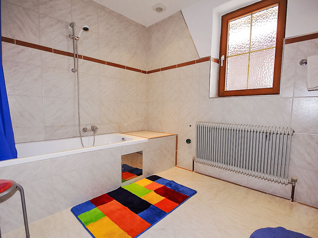 "Mario", 5-Zimmer-Wohnung 90 m2 im 1. Stock. Hell, zweckmässig eingerichtet: 3 Doppelzimmer, jedes Zimmer mit Waschbecken und Dusche. Ausgang zum Balkon. 1 Doppelzimmer. Wohnküche (Backofen, Geschirrspüler, 4 Glaskeramikherd Platten, Mikrowelle, Tiefkühler, elektrische Kaffeemaschine) mit Essecke und Sat-TV (Flachbildschirm). Bad, 2 sep. WC's. Grosser Balkon, Südlage und Westlage. Balkonmöbel. Sehr schöne Sicht auf die Berge und die Landschaft. Zur Verfügung: Kinderhochstuhl. Internet (Wireless LAN, extra). Bitte beachten: Nichtraucher-Unterkunft.