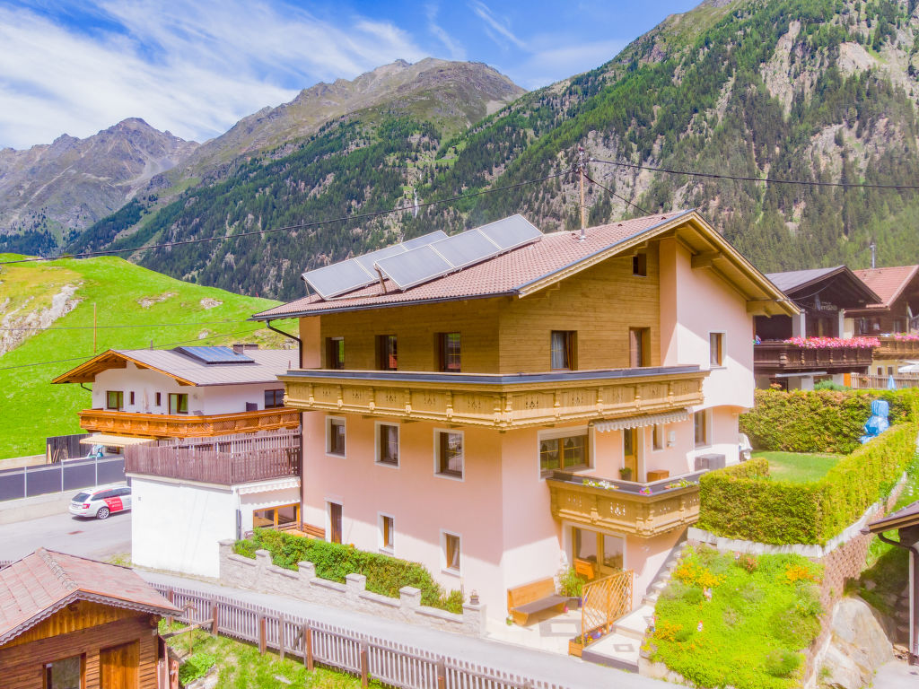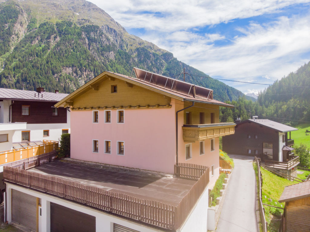 Sölden: Schönes Zweifamilienhaus "Granstein". Im Ortsteil Granstein, 4.1 km vom Zentrum von Sölden, sonnige, erhöhte Lage. Im Hause: Wireless LAN (extra). Zentralheizung. Brötchenservice. 1.3 km lange Zufahrt bis zum Haus (Bergstrasse). Im Winter bitte Schneeketten mitbringen. Parkplatz beim Haus. Lebensmittelgeschäft 3.9 km, Restaurant 50 m, Hallenbad 7 km, Thermalbad 11 km. Minigolf 11 km, Gondelbahn 3.7 km, Skibushaltestelle 10 m, Skischule 3.7 km. Nahe gelegene Sehenswürdigkeiten: Aqua Dome 11 km, Timmelsjoch 25 km, Outdoor Park 'Area 47' in 39 km. Bekannte Skigebiete sind gut erreichbar: Sölden 4 km. Bitte beachten: Fahrzeug empfohlen. Gratis Skibus. Der gratis Skibus fährt zum Skigebiet Sölden. Es steht eine Garage zum Abstellen von Ski und Fahrräder zur Verfügung.