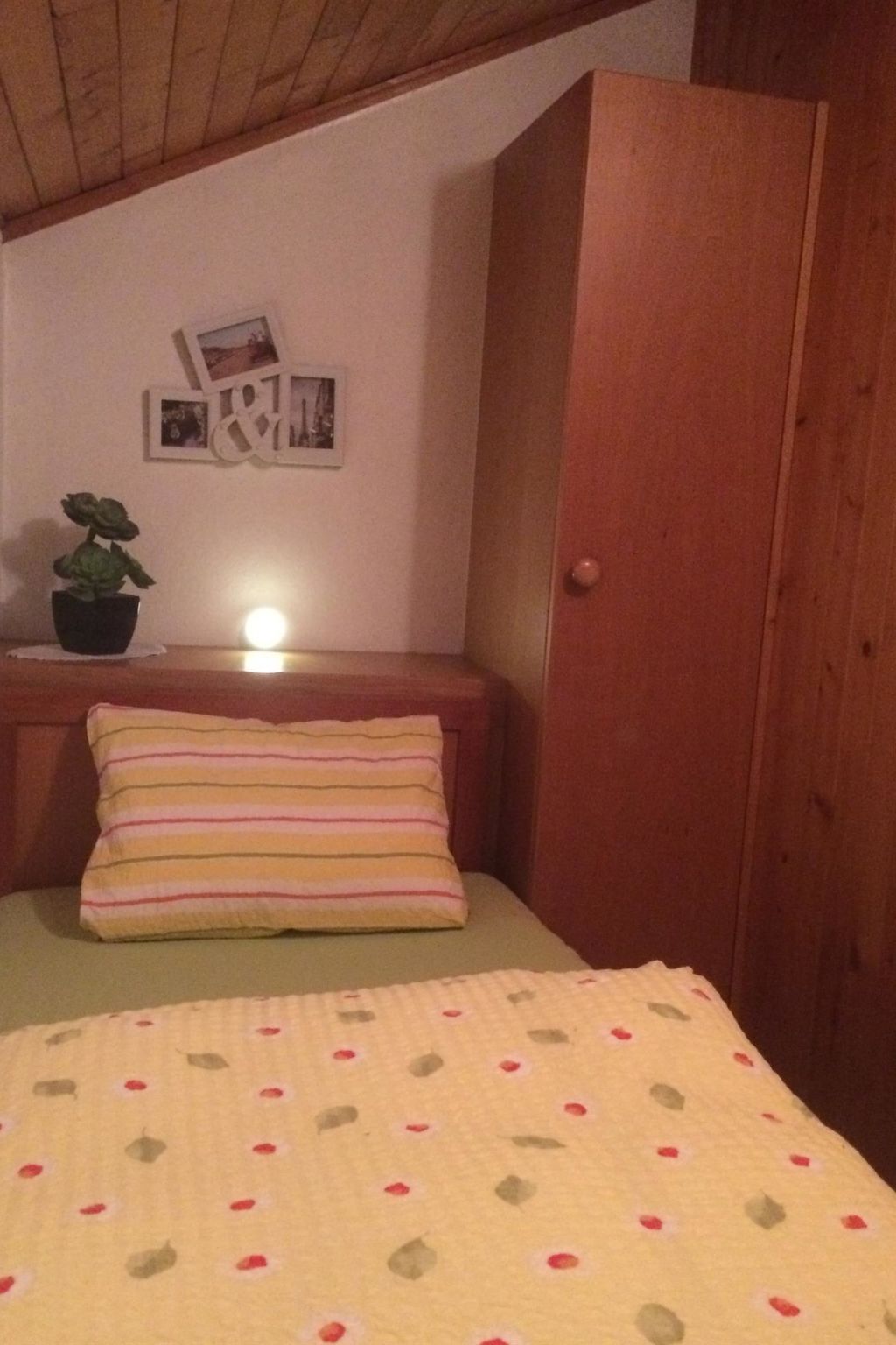 6,5 Zimmerwohnung im 2. Stock mit 3 Balkonen. Grösse der Wohnung 145 m2. 1 grosse Eingangshalle mit Telefon, 1 Wohnzimmer mit Radio und TV, 1 moderne Küche (mit Geschirrspüler), 3 Doppel- und 2 kleine Einzelzimmer, 1 Bad / WC, 1 Dusche / WC.