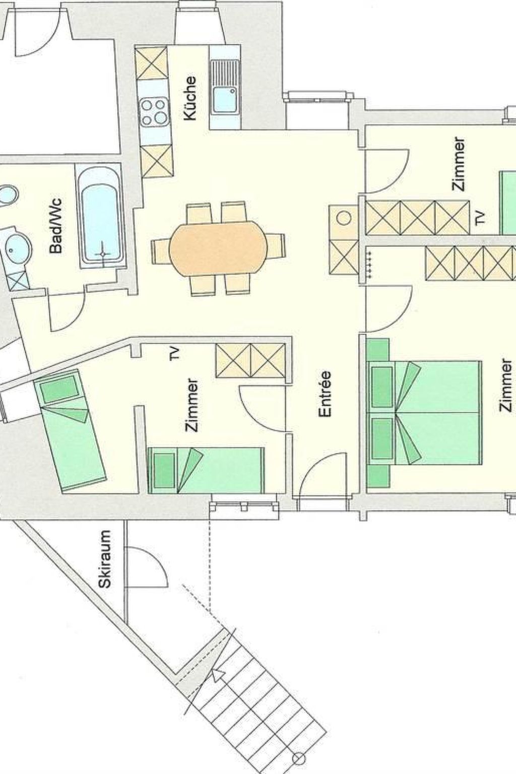 Heimelige 3 1/2 Zimmerwohnung, Parterre, 63 m2, 3 Schlafzimmer mit TV (2 Zimmer davon mit DVD), grosse Küche mit Geschirrspüler, Bad/WC mit Sprudelwanne, Wireless Internet.