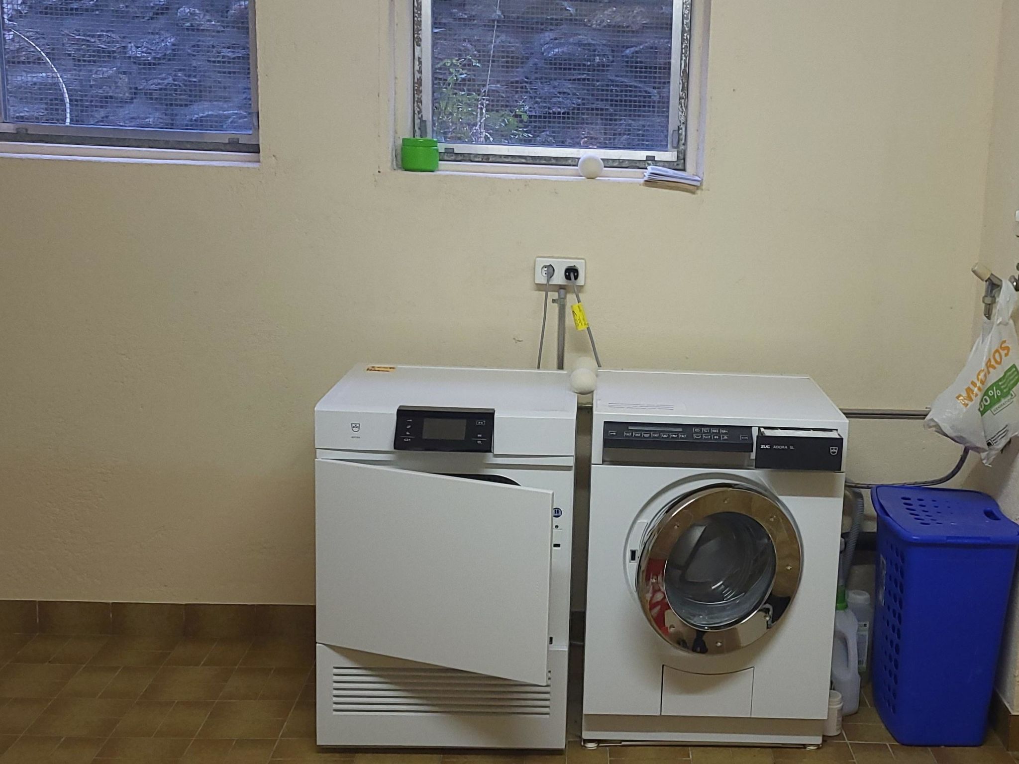 Frotte- und Küchenwäsche vorhanden. Wäschetrockner und Waschmaschine in der Waschküche mitbenutzbar (gegen Gebühr).