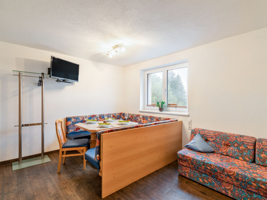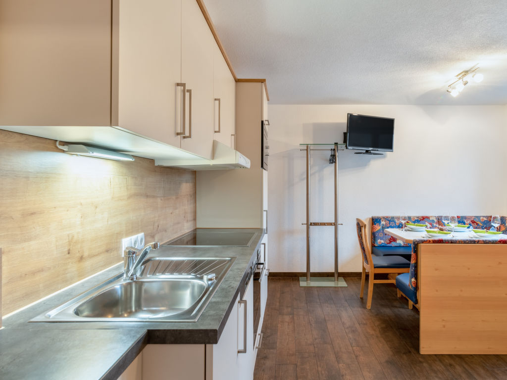 Die Kombination der beiden Wohnungen KPP 370 und KPP 371.2-Zimmer-Wohnung, Erdgeschoss (Hanglage), ca. 35 m². Wohnküche mit Essplatz (Eckbank), Doppelbettcouch und Küchenzeile (4 Ceranfelder, Backofen, Mikrowelle, Geschirrspüler, Kühlschrank, Kaffeemaschine). Doppelzimmer mit Sitzplatz und Sat-TV. Dusche/WC.4-Zimmer-Wohnung, 2. Etage, ca. 85 m². Flur mit Garderobe. Wohnküche mit Essplatz (Eckbank) und Küchenzeile (4 Platten, Backofen, Geschirrspüler, Kühlschrank, Kaffeemaschine, Wasserkocher). 2 Doppelzimmer, jeweils mit Waschbecken und Balkonausgang, eines der Zimmer mit Sat-TV. Schlafzimmer mit Doppelbett, Doppelbettcouch, Waschbecken und Sat-TV. Dusche/WC.
