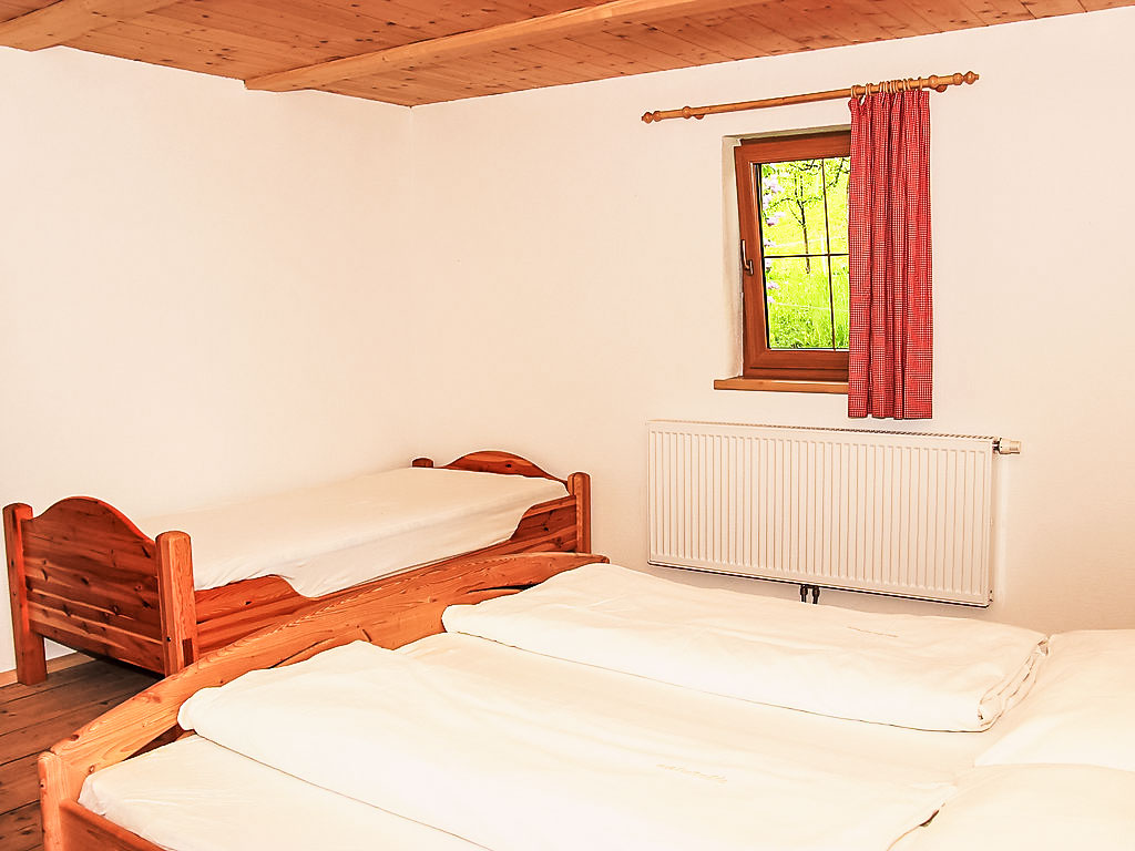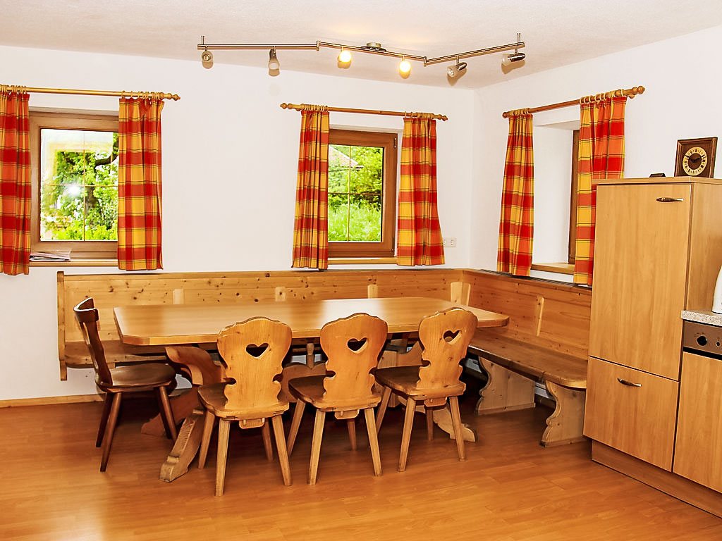 6-Zimmer-Haus 150 m2. Komfortabel und gemütlich eingerichtet: Eingang. Wohnzimmer mit 1 Diwanbett, Essecke und Sat-TV (Flachbildschirm), Kachelofen. 1 Doppelzimmer. Wohnküche (Backofen, Geschirrspüler, 4 Glaskeramikherd Platten, Wasserkocher, Mikrowelle, elektrische Kaffeemaschine) mit Esstisch. Dusche, Dusche/WC, sep. WC. Obergeschoss: 1 Doppelzimmer. 3 Zimmer, jedes Zimmer mit 1 Bett und 1 Doppelbett. Das Wohnzimmer ist eine Bauernstube. Balkon. Abstellkammer. Sehr schöne Sicht auf die Landschaft. Bitte beachten: Nichtraucher-Unterkunft. Die Einzelbetten im Obergeschoss können flexibel umgestellt werden.