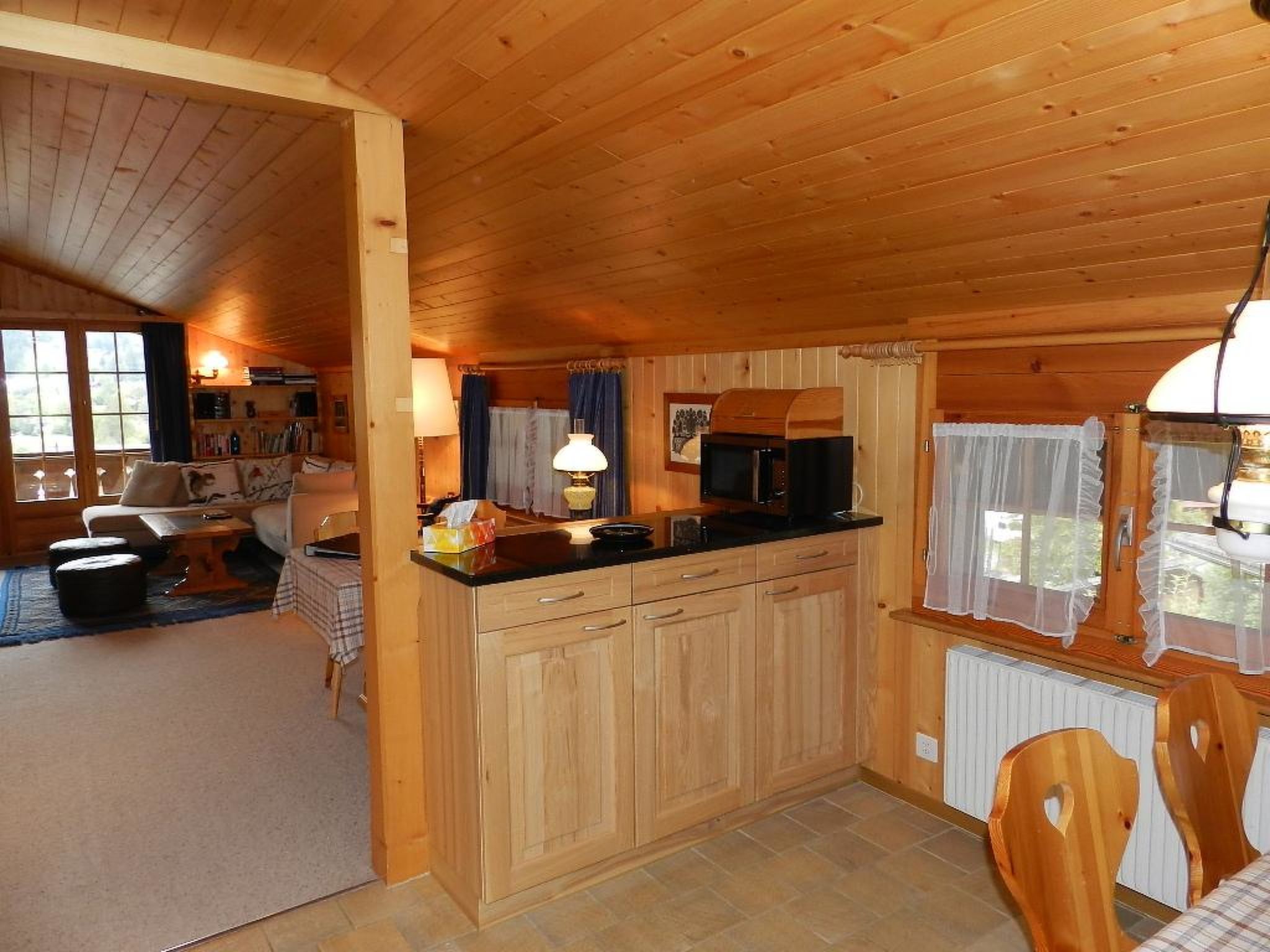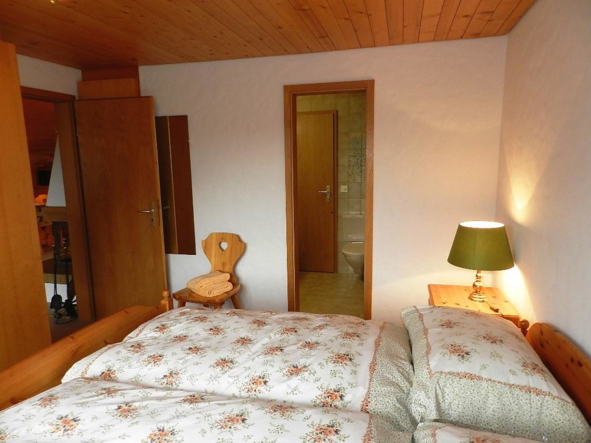 1 Schlafzimmer mit Doppelbett (2x90x200cm). 1 Schlafzimmer mit 2 Einzelbetten (90x190cm). Wohn-/Esszimmer mit Sofa, Esstisch, Cheminée, TV und WiFi. Offene Küche mit Glaskeramikkochherd, Geschirrspüler, Mikrowelle, Kühlschrank mit Gefrierfach, Kapsel-Kaffeemaschine (Nespresso), Filterkaffeemaschine, Raclette- und Fondue-Set. Badezimmer mit Badewanne/WC. Das Cheminée im Wohnzimmer darf von Gästen nicht benutzt werden.