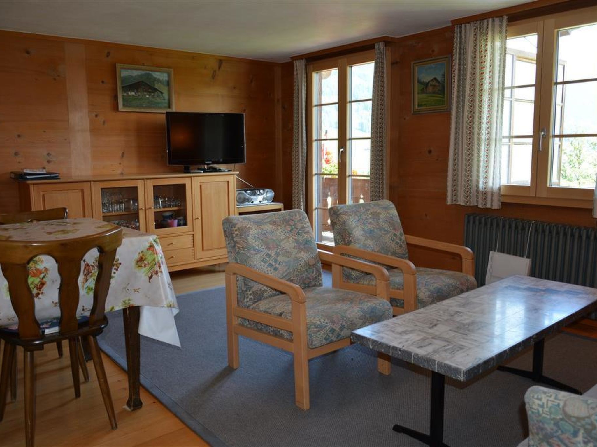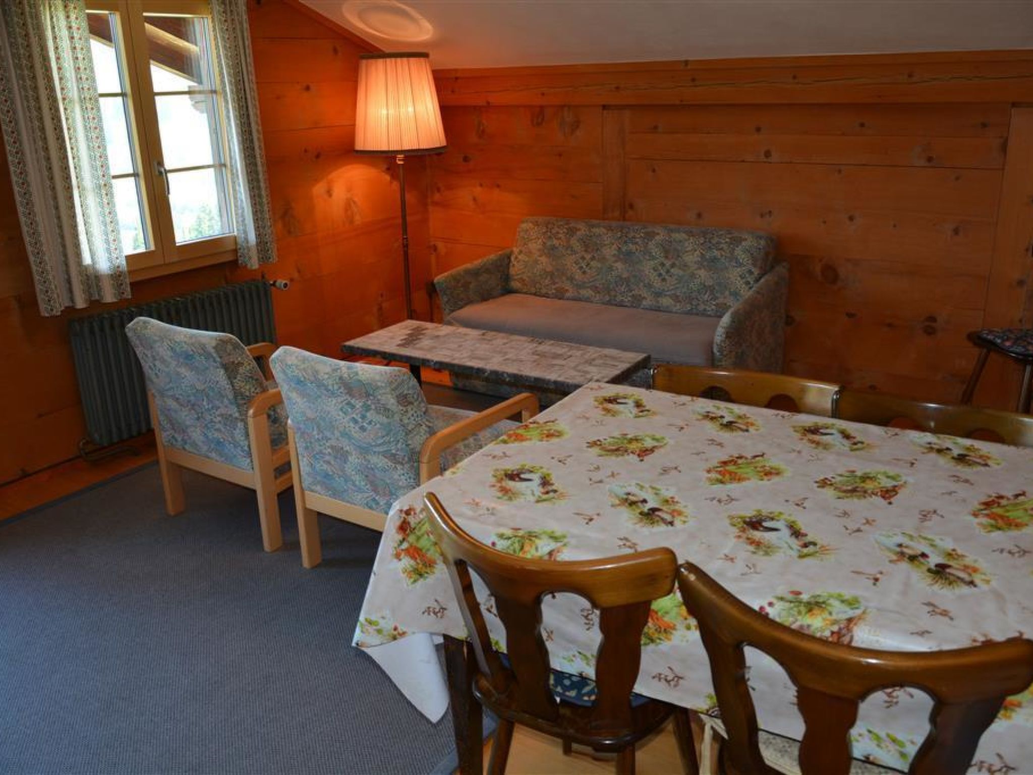 Wohnzimmer mit Bettsofa (Zusatzbett), Satelliten-TV. Wohnküche u. a. ausgestattet mit Esstisch, Filterkaffeemaschine und Fondue-Set. 1 Zimmer mit Doppelbett (2x90x190cm). 1 Zimmer mit 2 Betten (2x90x190cm). Bad/WC. Kinderbett (70x140cm) inkl. Bettwäsche vorhanden.