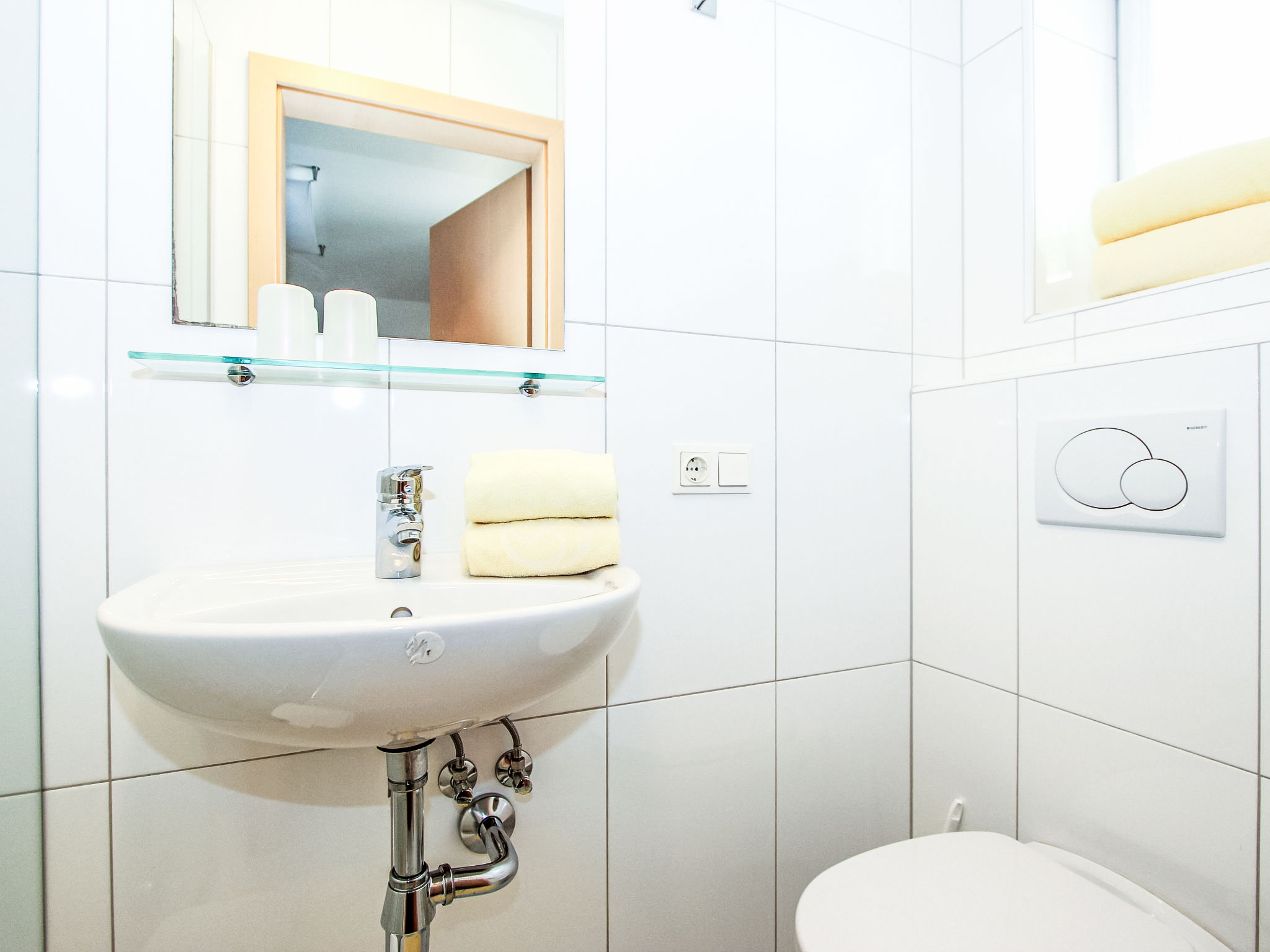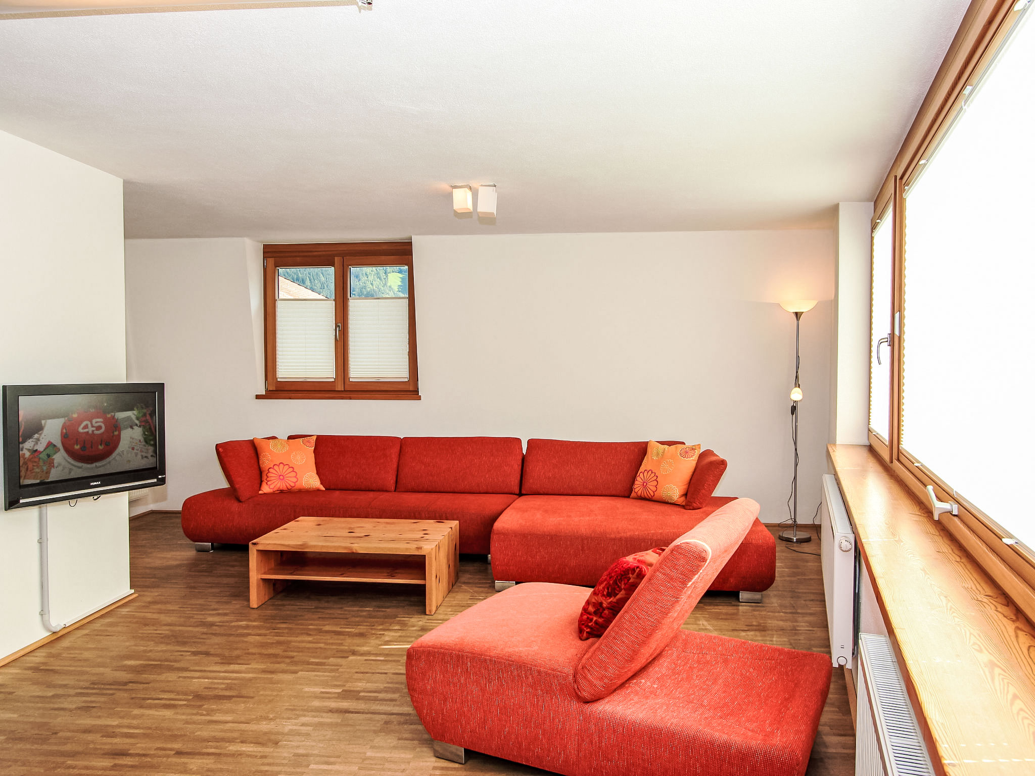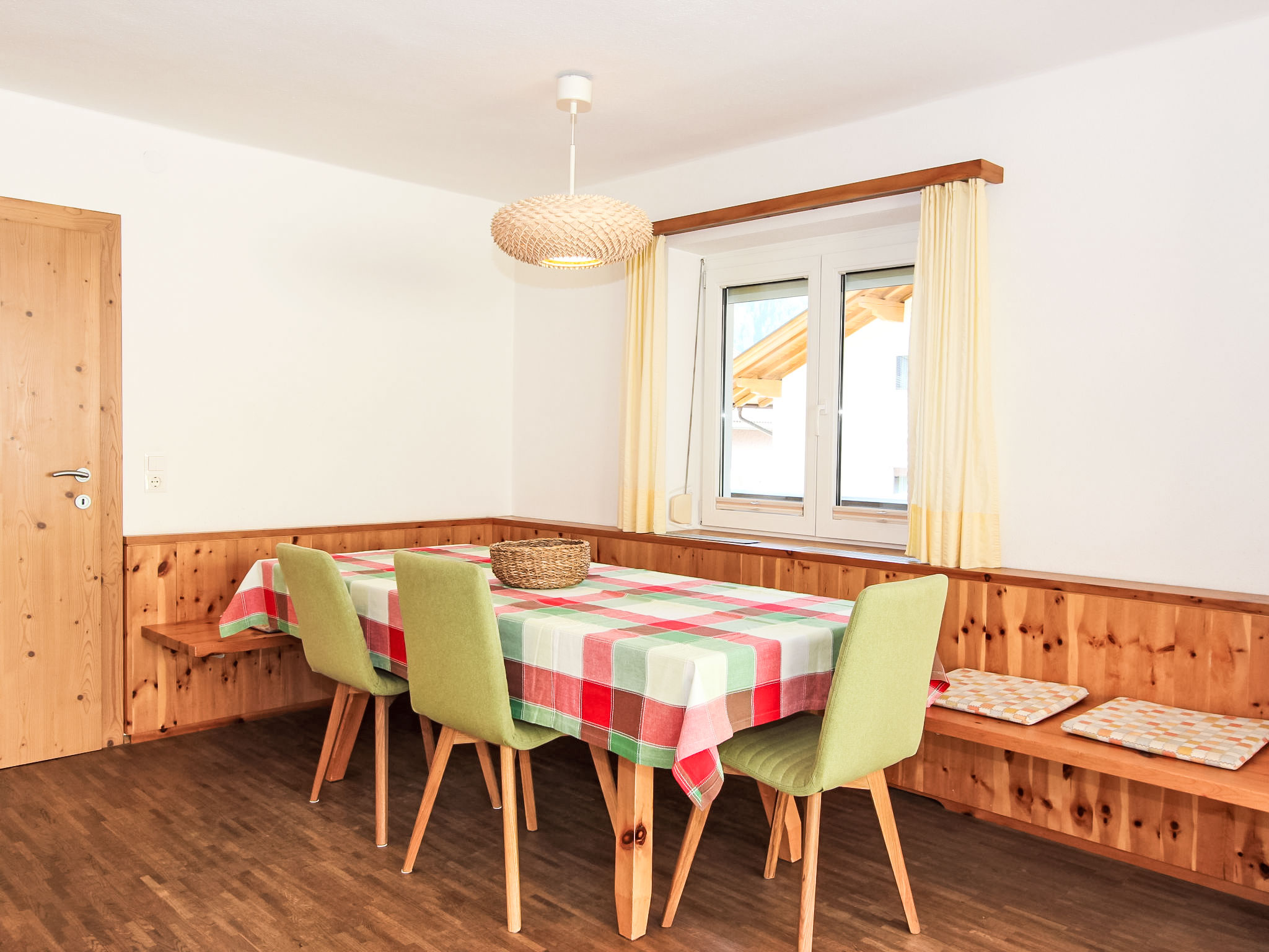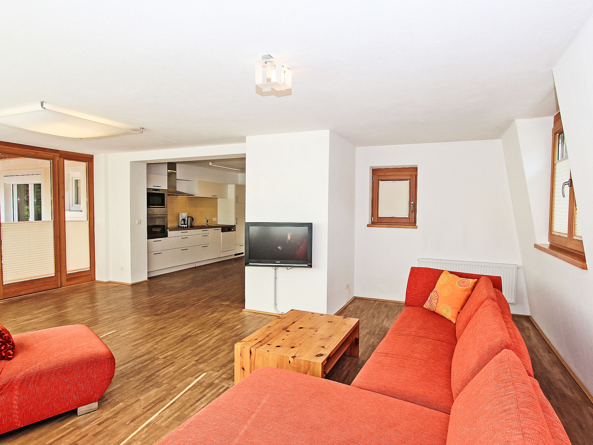 6-Zimmer-Wohnung 150 m2 im 1. Stock. Objekt geeignet für 8 Erwachsene + 2 Kinder. Geräumig, sehr komfortabel und geschmackvoll eingerichtet: Eingang. 2 Doppelzimmer, jedes Zimmer mit Dusche/WC. 1 Doppelzimmer mit Dusche/WC. Ausgang zur Terrasse. 1 Doppelzimmer mit Bad/WC. 1 kleines Kinderzimmer mit 1 x 2 Etagenbetten (90 cm, Länge 180 cm). Grosses Wohnzimmer mit Sat-TV (Flachbildschirm), DVD. Ausgang zur Terrasse. Grosse, offene Küche (Backofen, Geschirrspüler, 4 Glaskeramikherd Platten, Mikrowelle, Tiefkühler, elektrische Kaffeemaschine) mit Essecke. Balkon, grosse Terrasse. Terrassenmöbel. Sehr schöne Sicht auf die Berge und die Ortschaft. Zur Verfügung: Internet (Wireless LAN, extra). Bitte beachten: Nichtraucher-Unterkunft. Wunderschöne Wohnung mit toller Terrasse. Alle Zimmer in Zirbe! Das kleine Kinderzimmer erreicht man über ein DZ.