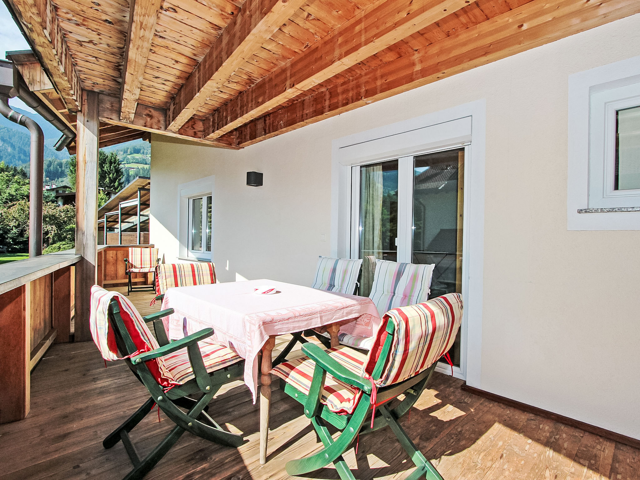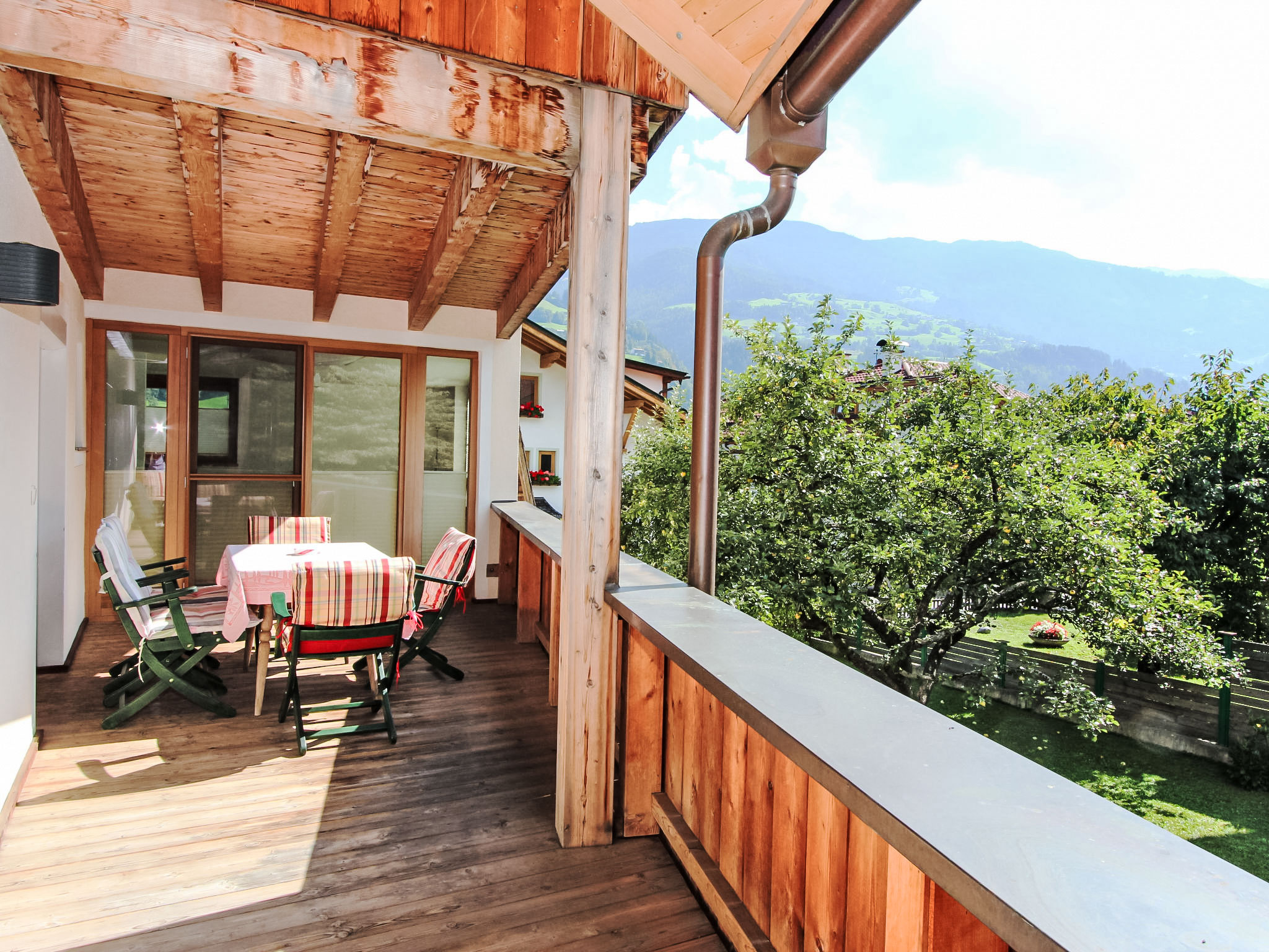 Ried im Zillertal, 1 km von Kaltenbach: Sehr schönes, komfortables Appartementhaus "Gerda". Im Ortszentrum von Ried, 1 km vom Zentrum von Kaltenbach, zentrale, ruhige, sonnige Lage, 6 km vom See, 1.2 km vom Skigebiet. Zur Mitbenutzung: schöner, gepflegter Garten (eingezäunt) mit Rasen und Bäumen. Tischtennis, Sitzplatz, Grill (Schaukel). Im Hause: Wireless LAN (alles extra), Einstellraum für Fahrräder, Skiraum, Zentralheizung, Waschmaschine (zur Mitbenutzung, extra), Skischuhtrockner. Wäschewechsel 1 mal wöchentlich. Brötchenservice. Zufahrt bis zum Haus. Parkplatz beim Haus. Lebensmittelgeschäft, Restaurant 50 m, Freibad 1.5 km, Thermalbad "Erlebnistherme Fügen" 5 km, Badesee 6 km. Golfplatz (18 Loch) 3.5 km, Gondelbahn 1.2 km, Skisportanlagen 1.2 km, Skibushaltestelle 50 m, Skischule 1.2 km, Schlittelbahn 7 km, Langlaufloipe 50 m. Bekannte Skigebiete sind gut erreichbar: Hochzillertal - Kaltenbach 1.2 km. Bitte beachten: Gratis Skibus. In diesem Haus sind weitere Ferienwohnungen mietbar.