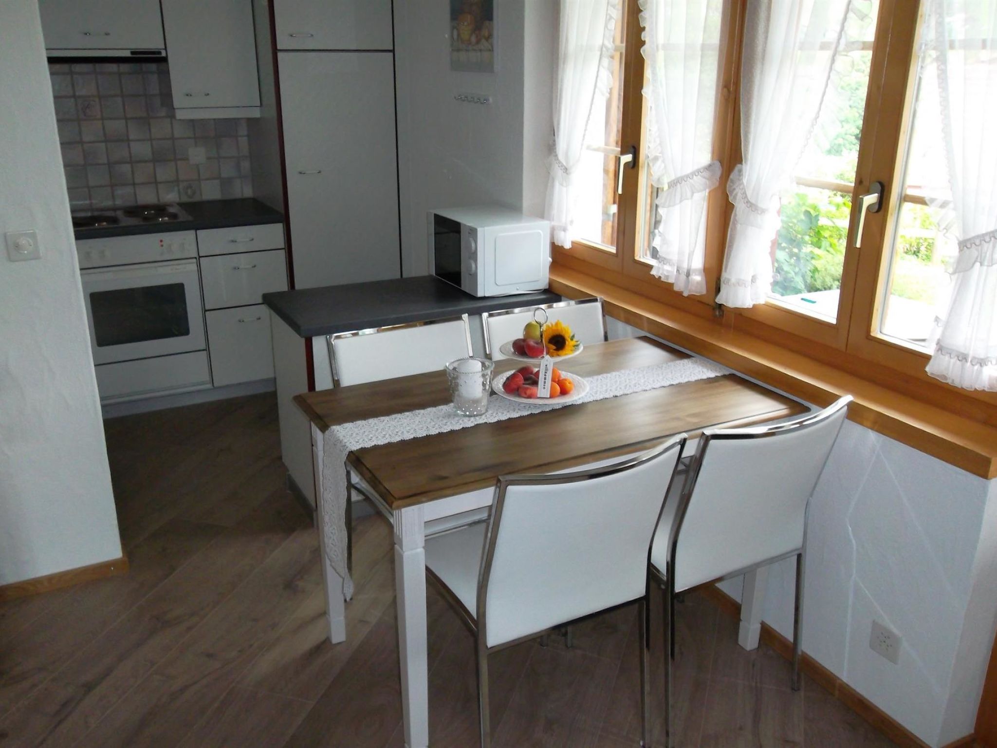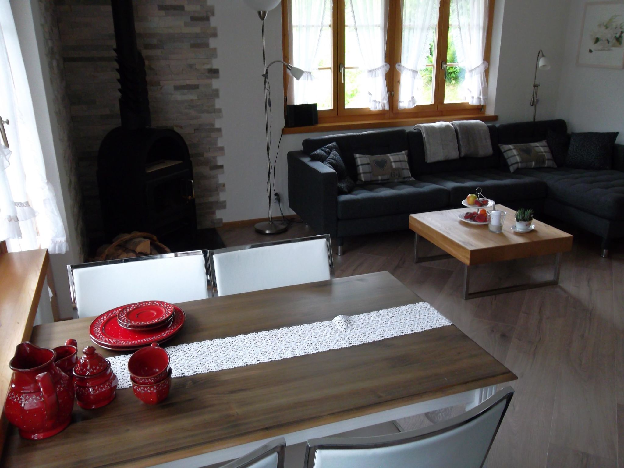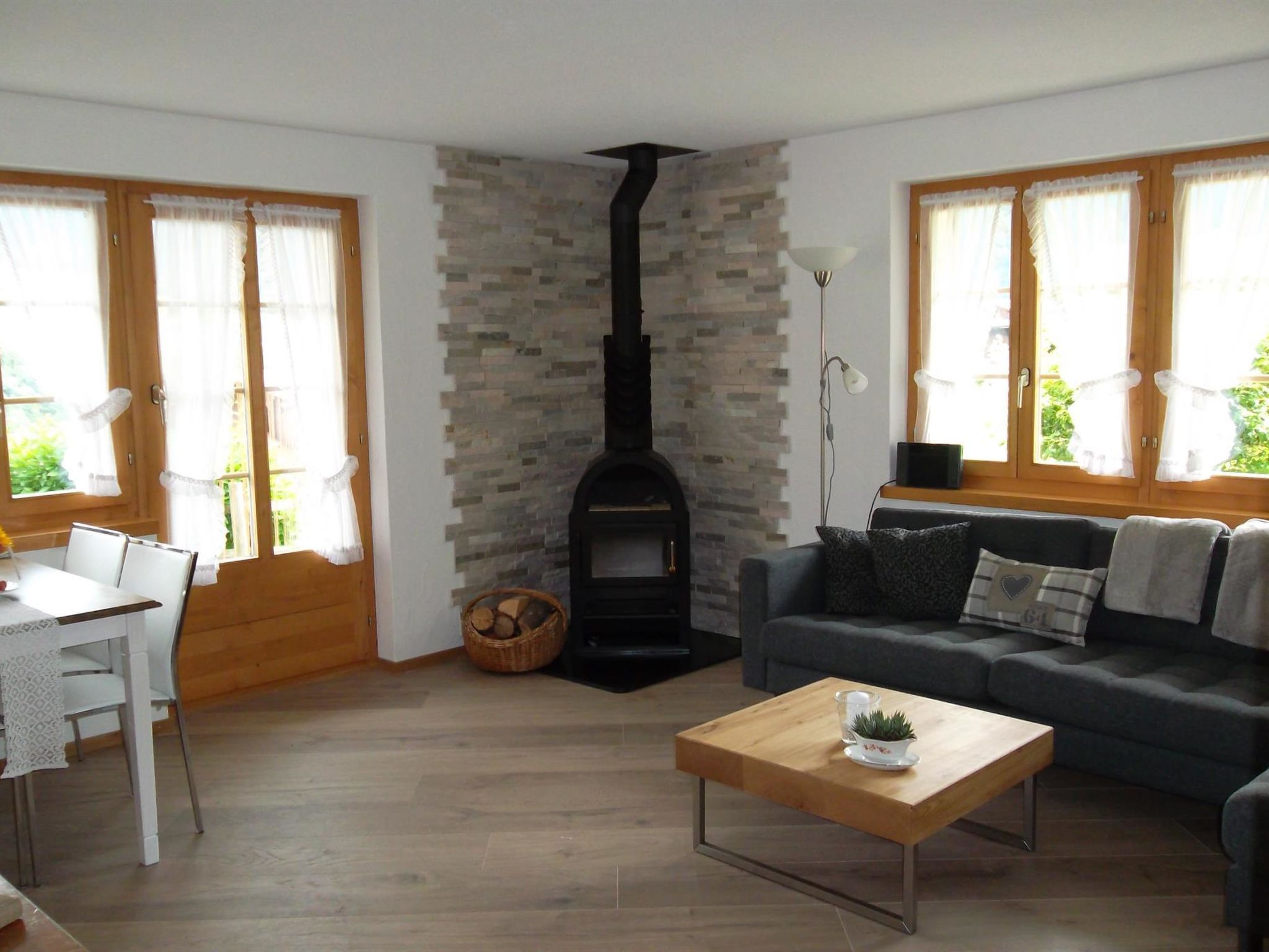 3 Zimmer-Wohnung, mit Wohnzimmer und Schwedenofen. 2 separate Schlafzimmer einmal mit einem Doppelbett und einem Doppelbettauszugsbett, Küche und einem Badezimmer.