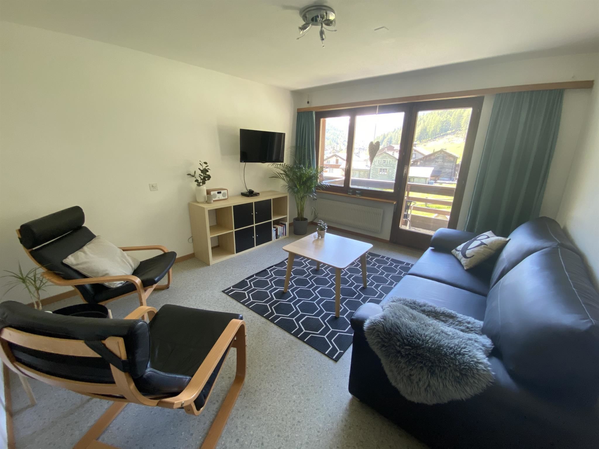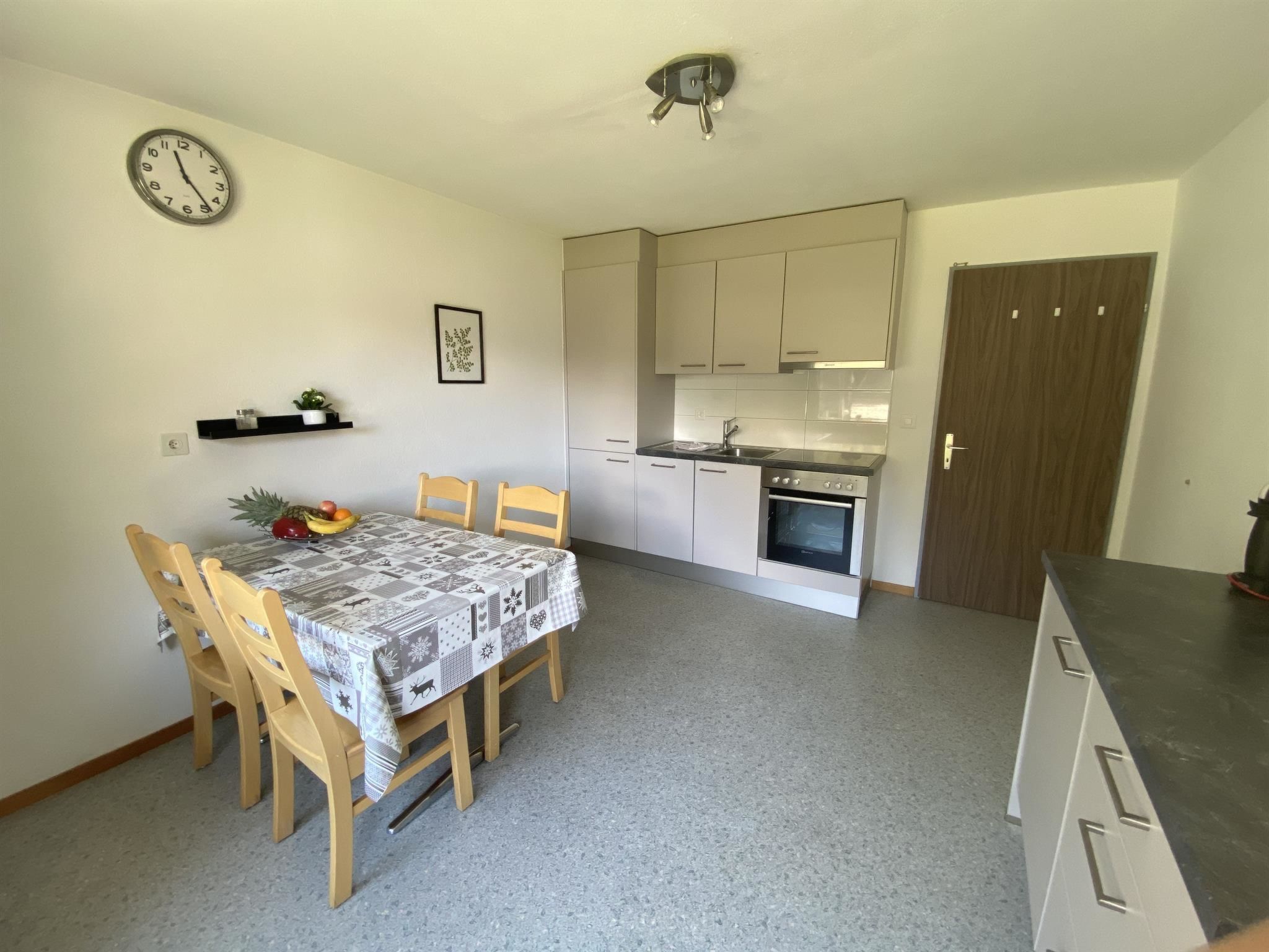 Gemütliche 3.5-Zimmerwohnung für 4 Personen (2 Erwachsene und 2 Kinder), 55 m2. Gemütliches Wohnzimmer mit Sitzecke, TV, Balkon auf der Südseite. Geschlossene, gut ausgestattete, neue Küche mit Esstisch und Südbalkon. Die Küche ist mit Geschirrspülmaschine, Kaffeemaschine, Fondue-Geschirr und Racletteofen ausgestattet. Grosses Doppelzimmer und ein kleines Kinderzimmer mit Etagenbett. Kleines, neu renoviertes, Badezimmer mit Dusche/WC. Gratis Wlan ist im ganzen Haus verfügbar.