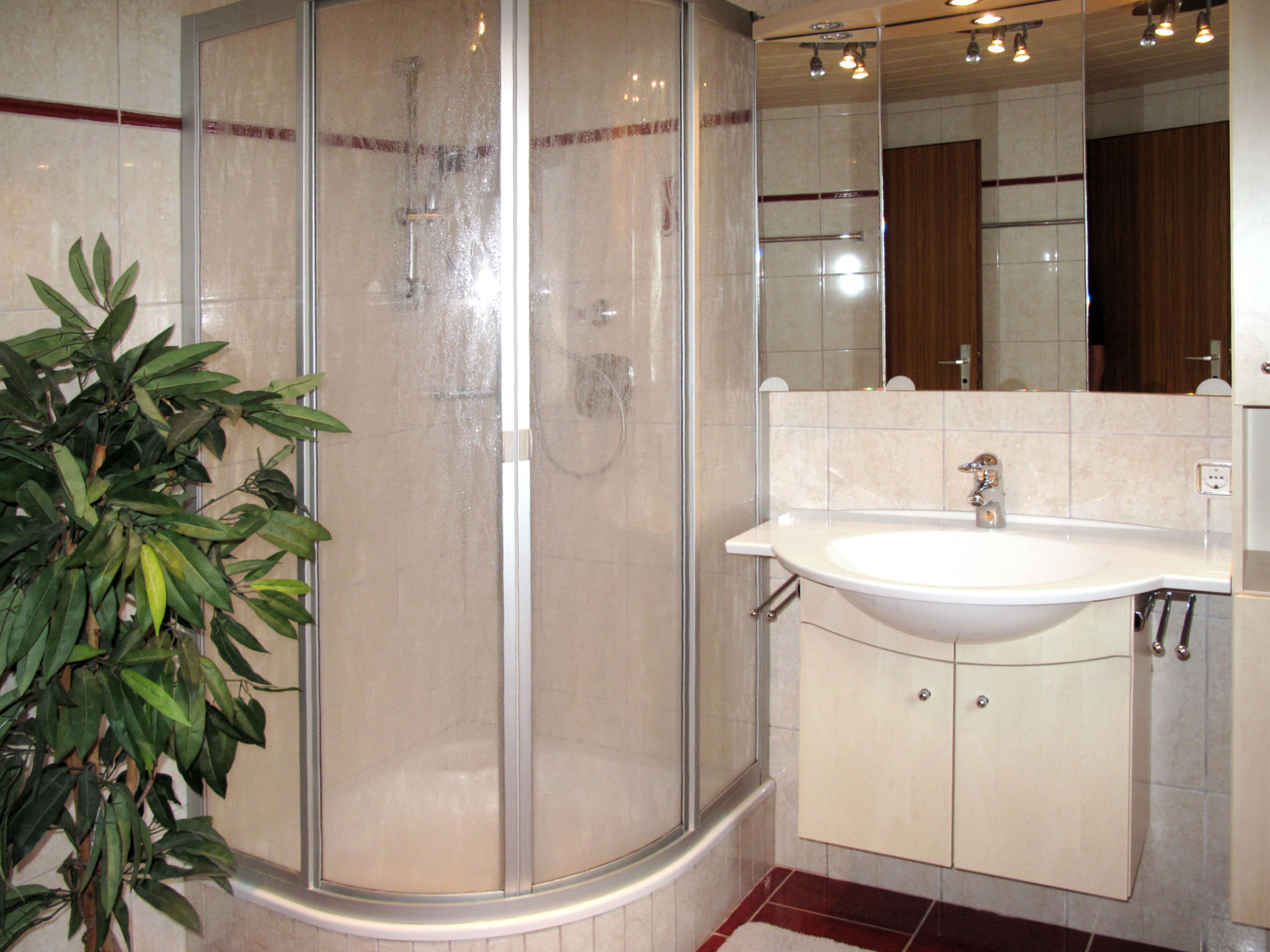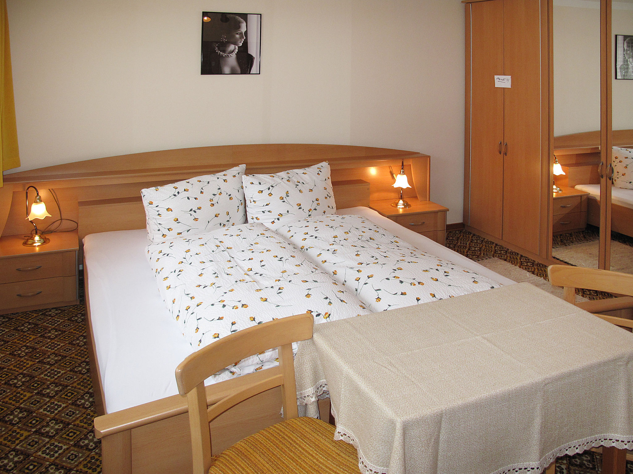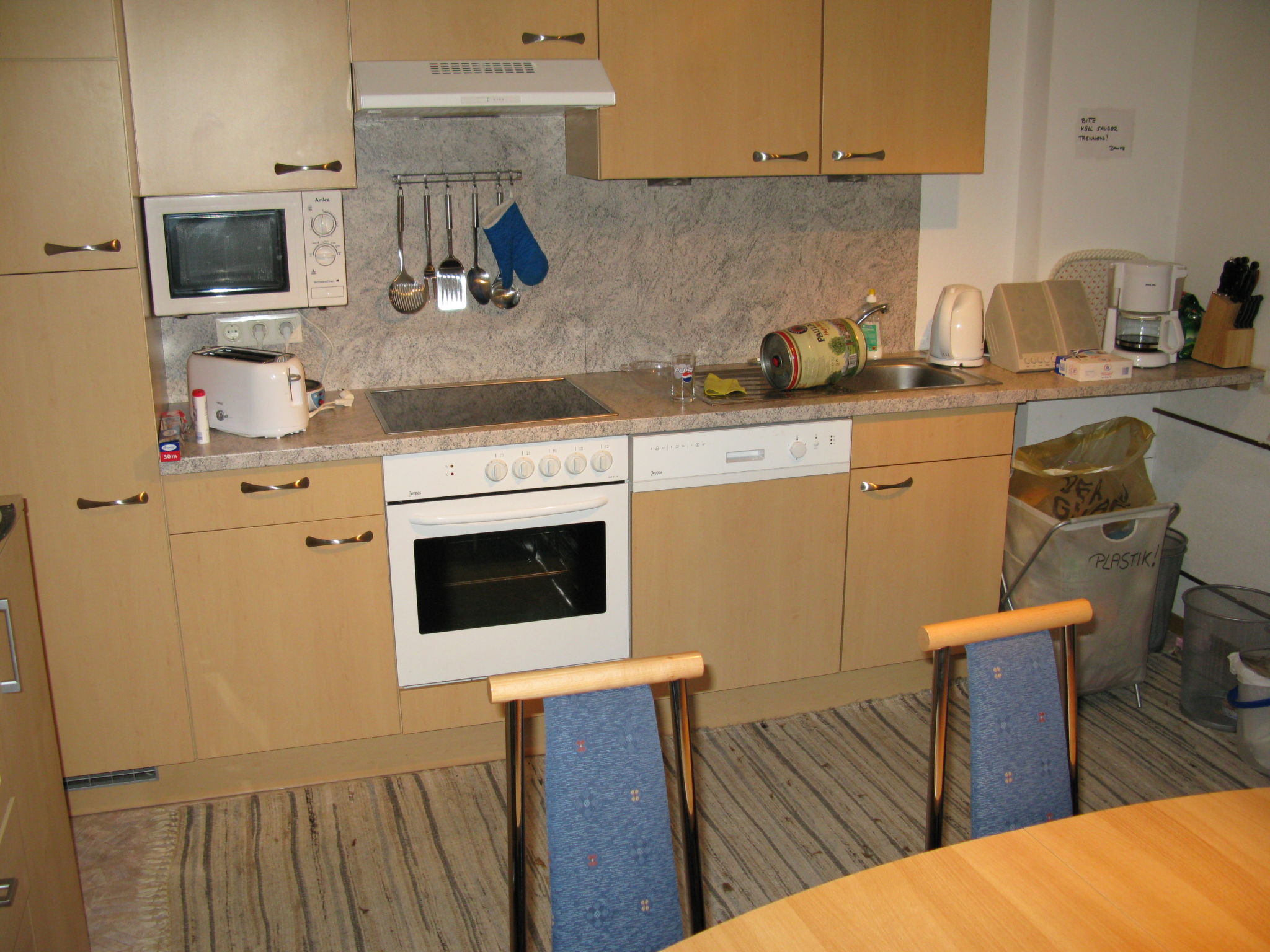 4-Zimmer-Wohnung, 2 Etagen, ca. 85 m². Untergeschoss: Gemütlicher, rustikaler Aufenthaltsraum mit großem Essplatz (Eckbank) und kleiner Bartheke. Küche (4 Platten, Backofen, Geschirrspüler, Kühlschrank, Kaffeemaschine, Wasserkocher, Toaster) mit Essplatz. Sep.WC. 1. Etage: Flur. 3 Doppelzimmer, jeweils mit Waschbecken und Balkonausgang, 2 davon mit Sat-TV. Große Dusche/WC.Hinweis: Die 1. Etage, die zum Treppenhaus hin offen ist, steht den Gästen komplett zur Verfügung. Der Vermieter wohnt im Hochparterre.