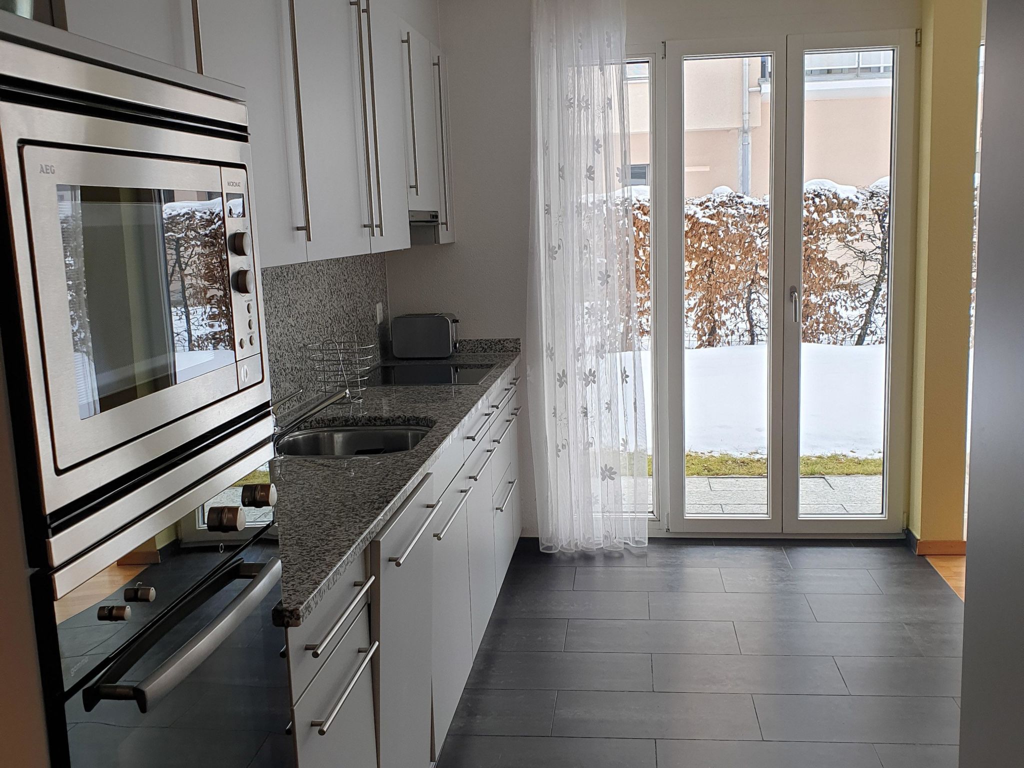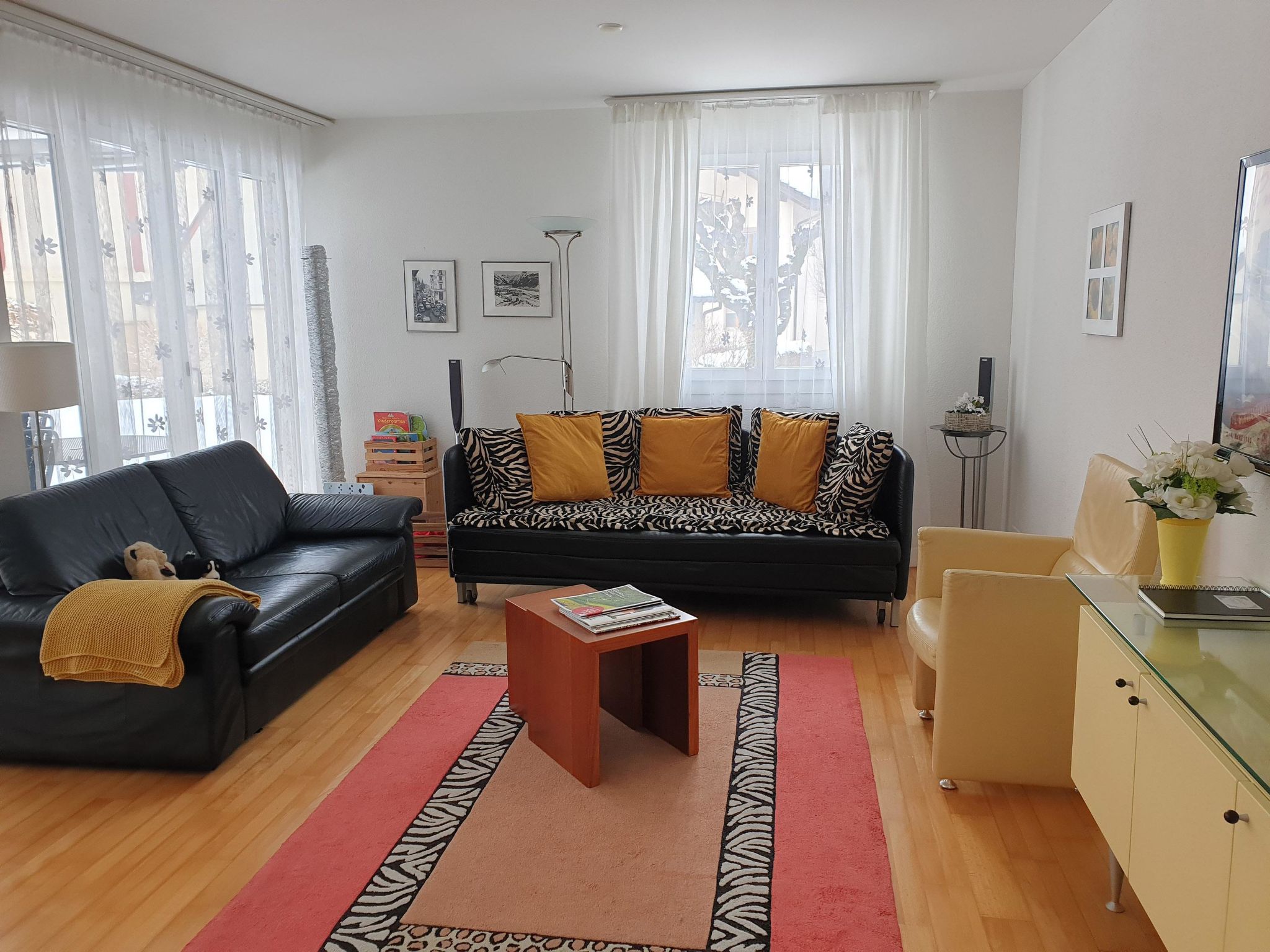 110 m2. Weitere Angaben des Anbieters: Moderne, helle 3-Zimmerwohnung (110 m2) in einem zentral und doch ruhig gelegenen Mehrfamilienhaus. Grosses Wohn-Esszimmer mit Esstisch, Sofa, ausziehbarem Sofa, TV, Radio, Internet-WLAN. Offene, moderne Küche mit Geschirrspüler, Kaffeemaschine, Microwellenofen. 2 Doppelzimmer. Bad-WC. Dusche-WC. Sauna im Haus. Grosser Gartensitzplatz. Babybett, Hochstuhl, Wickeltisch auf Anfrage vorhanden. Parkplatz in Autoeinstellhalle. Tiere nicht erlaubt. NICHTRAUCHER-WOHNUNG.