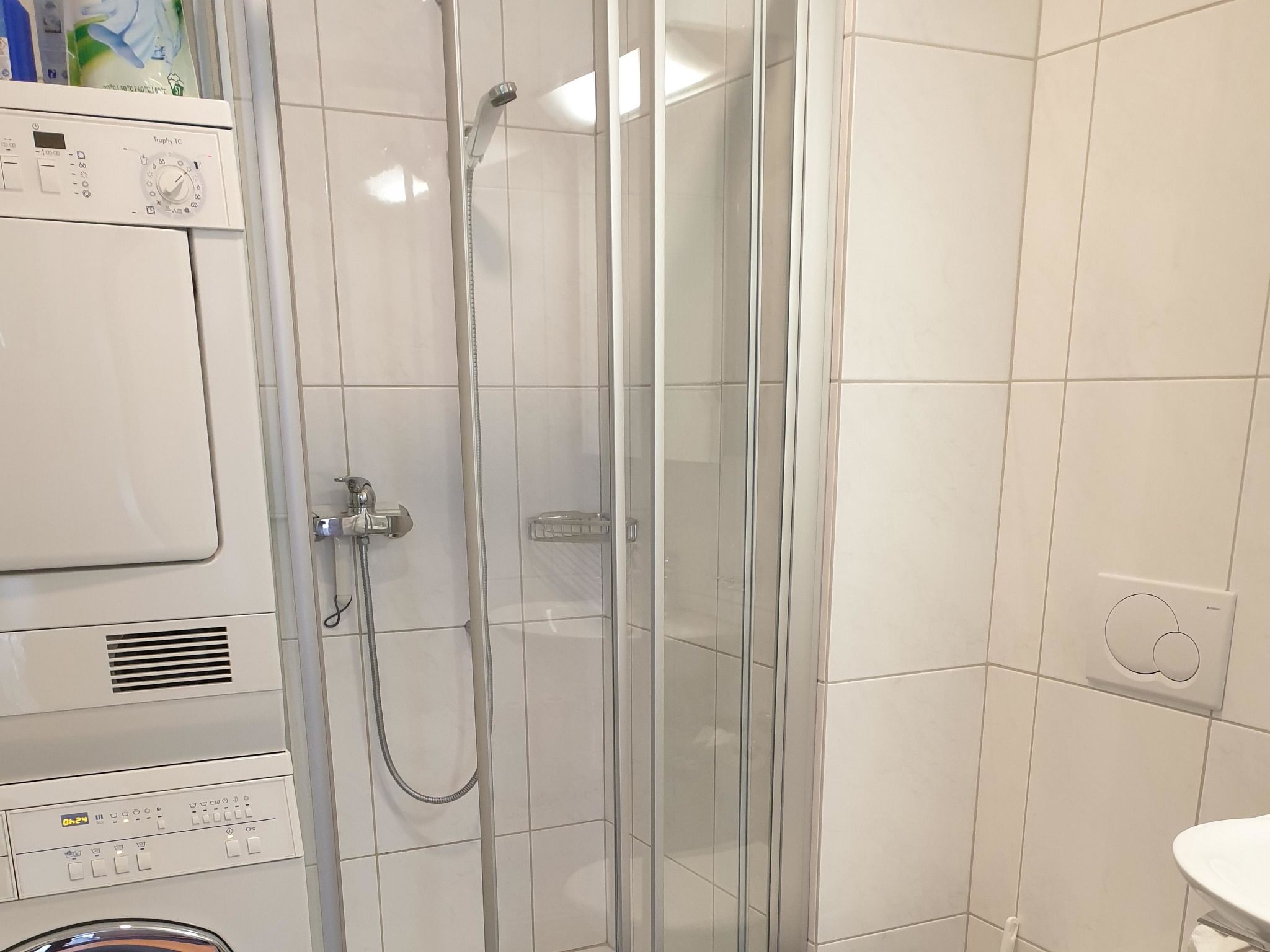 3-Zimmerwohnung im Parterre: 2 Doppelzimmer, Wohn-Esszimmer mit ausziehbarem Sofa, offene Küche, Bad-WC, Dusche-WC.