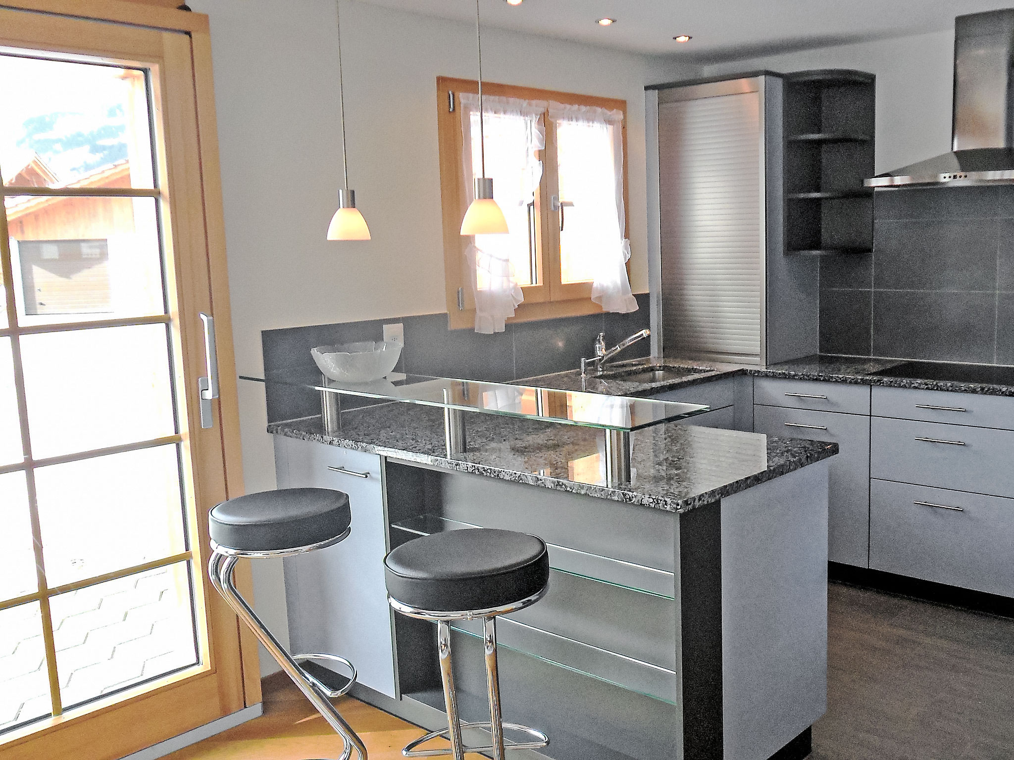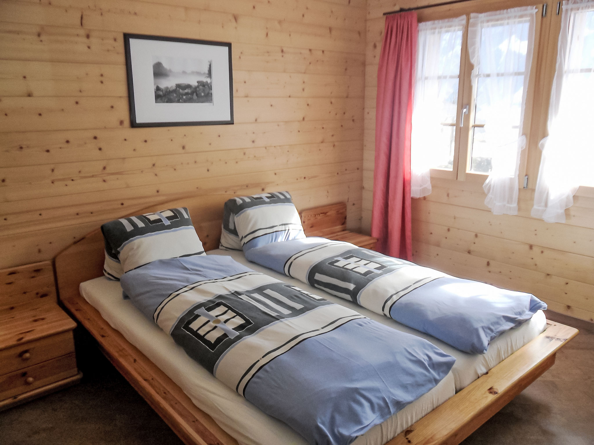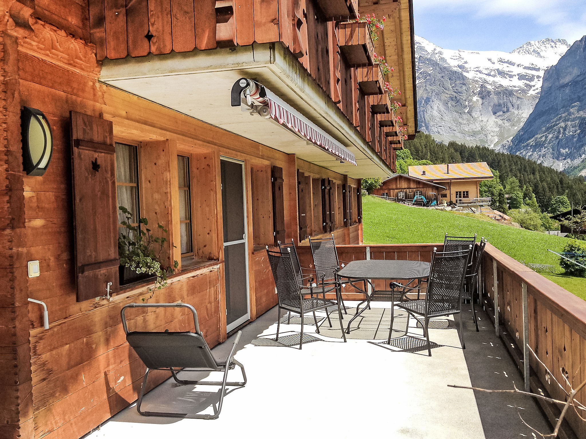 5-Zimmer-Wohnung 120 m2, im Erdgeschoss, Südlage. Geräumig und hell, komfortabel und gemütlich eingerichtet: Wohn-/Esszimmer mit Schwedenofen und Sat-TV (Flachbildschirm), Radio und CD. Ausgang zur Terrasse. 3 Doppelzimmer (2 x 80 cm, Länge 200 cm). Offene Küche (Backofen, Geschirrspüler, 4 Glaskeramikherd Platten, Toaster, Wasserkocher, elektrische Kaffeemaschine, Racletteofen, Kombinationsmikrowelle, Fondue Set (Käse)) mit kleiner Bar. Bad/WC, Dusche/WC. Fussbodenheizung. Parkettböden. Gartensitzplatz, Südlage. Terrassenmöbel. Herrliche Panoramasicht auf die Berge, das Tal, die Ortschaft und Eigernordwand. Zur Verfügung: Internet (Wireless LAN, gratis). Parkplatz beim Haus. Bitte beachten: Nichtraucher-Unterkunft. Feuerlöscher.