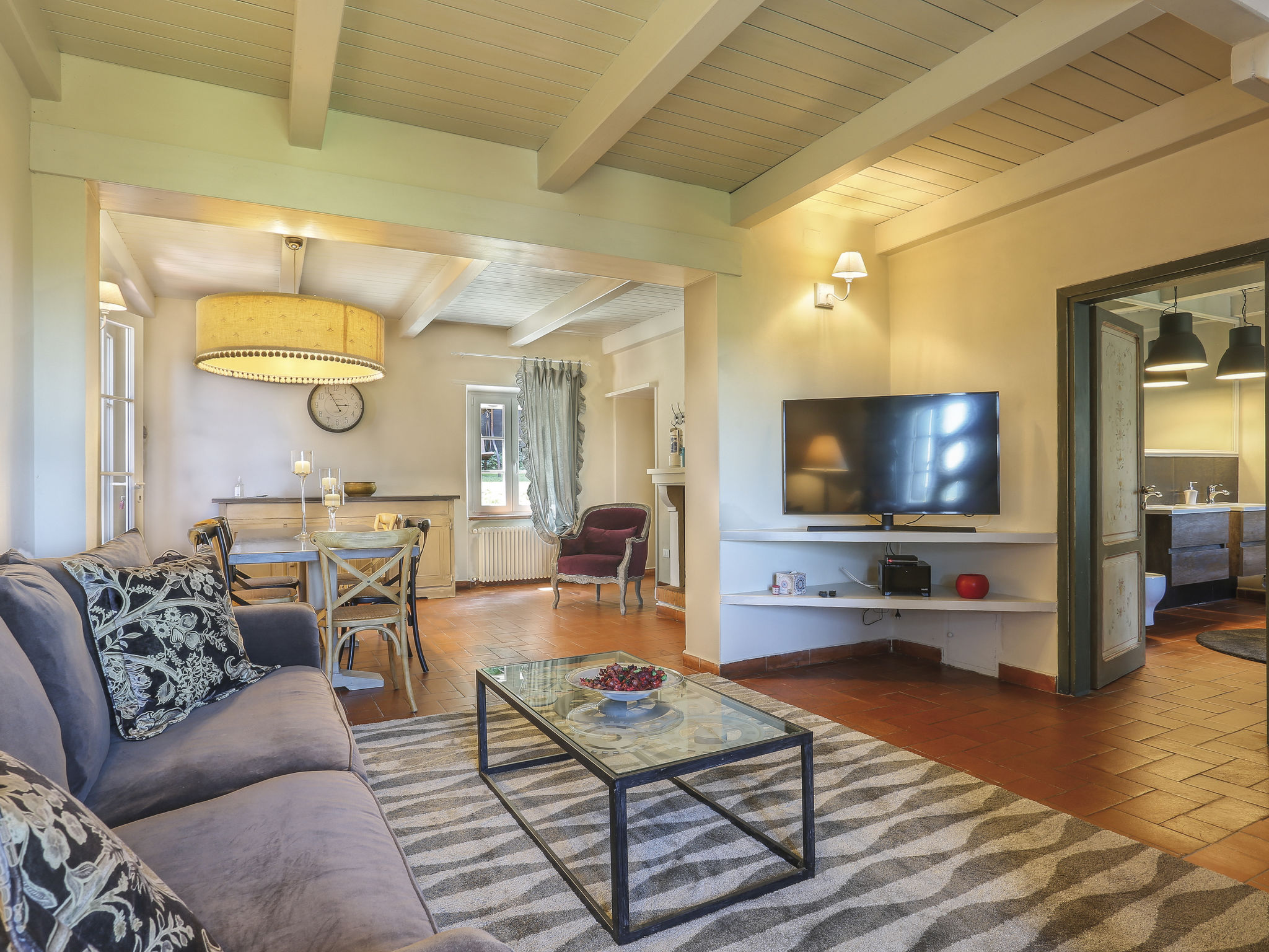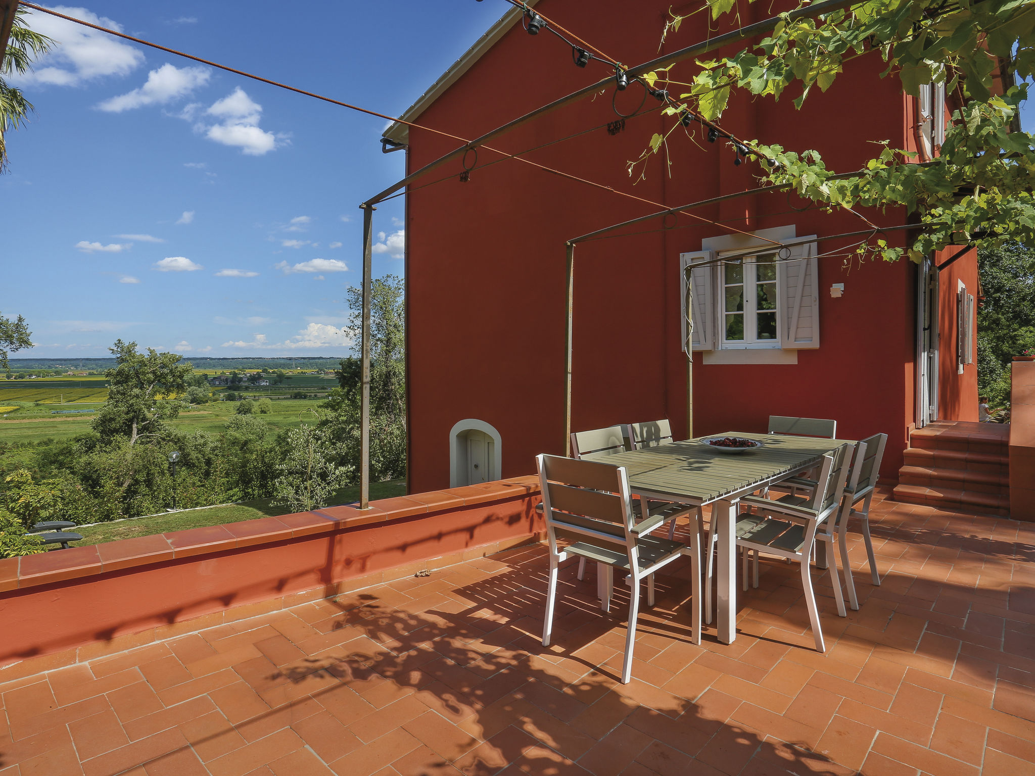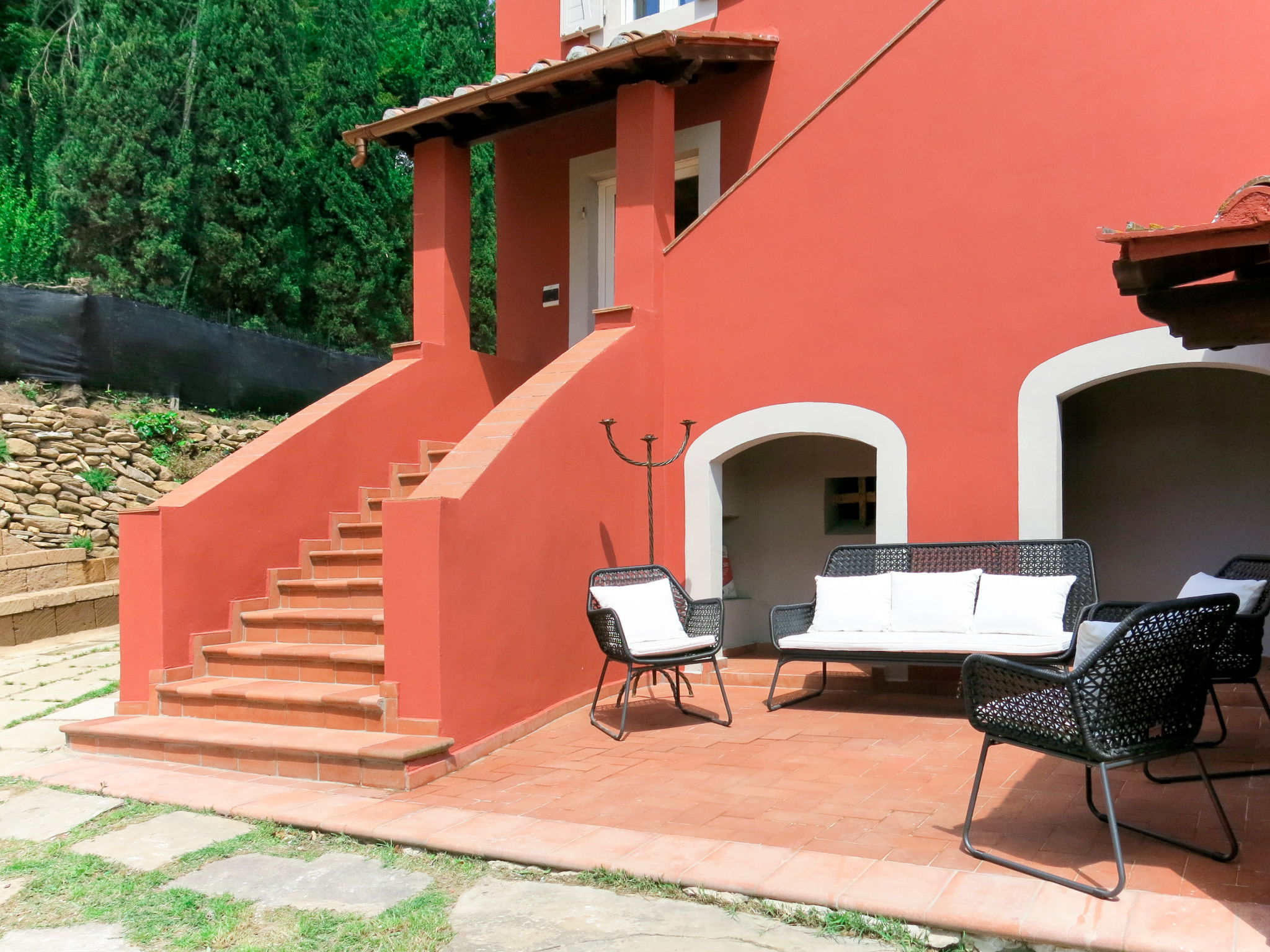4-Zimmer-Haus 160 m2 auf 2 Stockwerken, im erhöhten Erdgeschoss. Renoviert im Jahre 2019, schön und geschmackvoll eingerichtet: Wohn-/Esszimmer mit 1 Doppeldiwanbett, offenem Kamin, Esstisch und Sat-TV. Ausgang zur Terrasse. Küche (5 Kochplatten, Backofen, Geschirrspüler, Mikrowelle, Tiefkühler, elektrische Kaffeemaschine) mit kleinem Esstisch. Bad oder Dusche/WC, Doppelwaschbecken. Obergeschoss: 2 Zimmer, jedes Zimmer mit 1 Doppelbett und Klimaanlage. 1 Zimmer mit 1 franz. Bett. Dusche/WC. Heizung. Holzdielenboden. Terrasse. Terrassenmöbel, Gartengrill. Zur Verfügung: Waschmaschine, Bügeleisen, Kinderhochstuhl, Babybett. Internet (WLAN, gratis). Bitte beachten: Nichtraucher-Unterkunft. Maximal 3 Haustiere/Hunde erlaubt. IT050002C2DV27NHSP