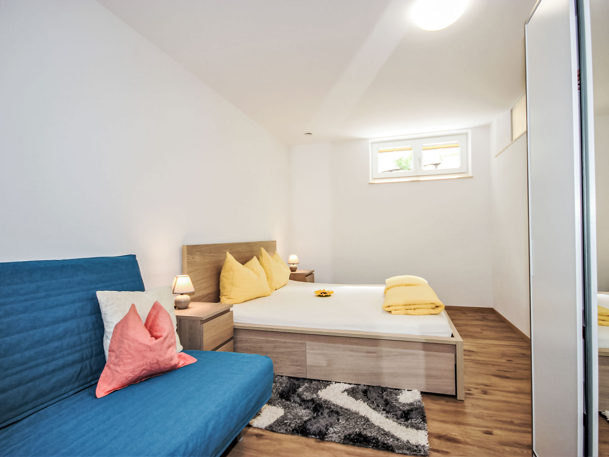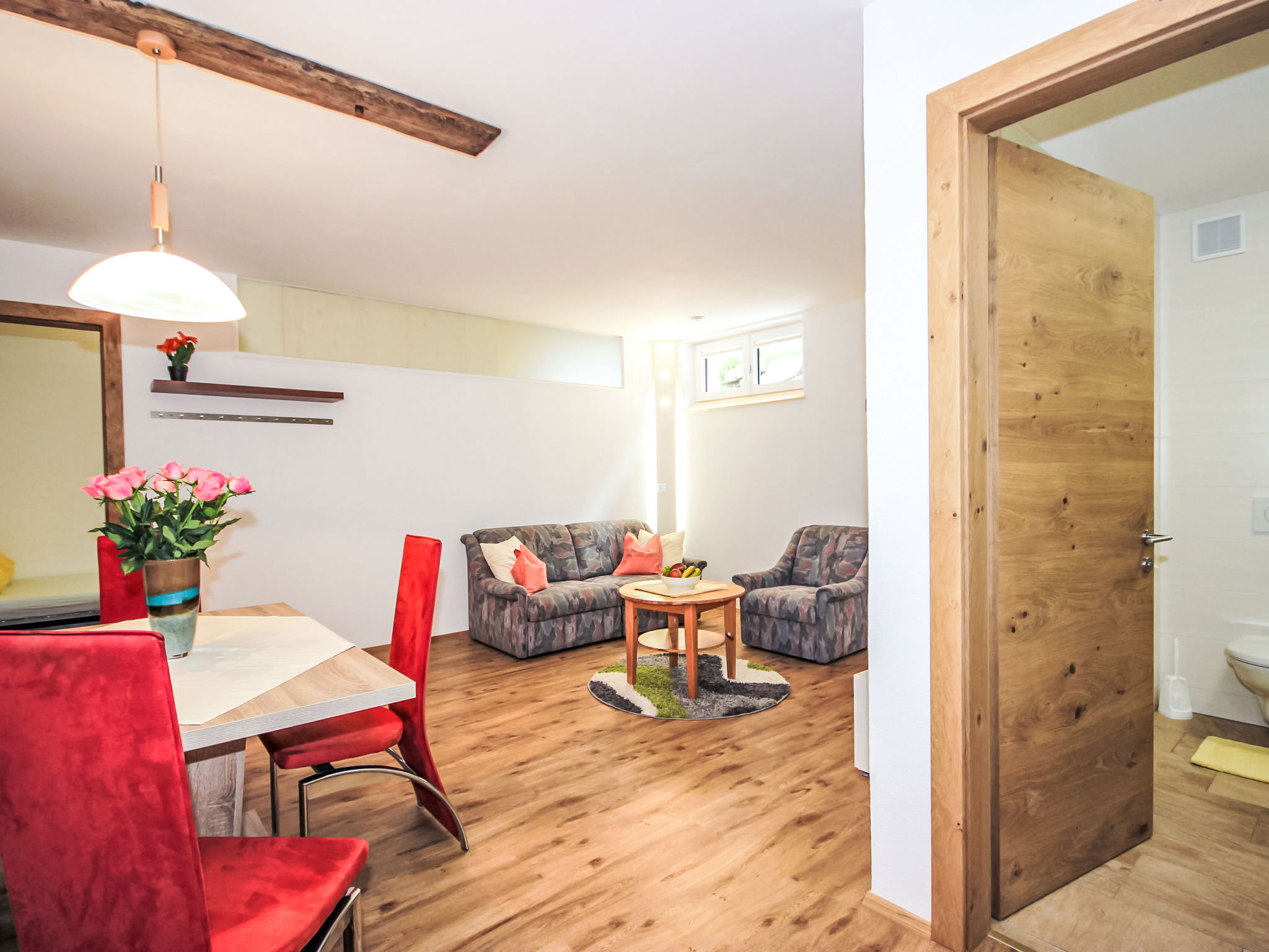 "Matilda", 2-Zimmer-Wohnung 50 m2, unteres Geschoss. Modern und gemütlich eingerichtet: 1 Zimmer mit 1 franz. Bett (140 cm), 1 Doppelbett. Wohn-/Schlafzimmer mit 1 Ausziehbett (2 Pers.), Sat-TV (Flachbildschirm). Offene Küche (Backofen, Geschirrspüler, 4 Glaskeramikherd Platten, Mikrowelle, elektrische Kaffeemaschine, Kapseln für die Kaffeemaschine (Tchibo)) mit Esstisch. Dusche/WC. Zur Verfügung: Internet (Wireless LAN, gratis). Bitte beachten: Nichtraucher-Unterkunft. Diese kleine aber schöne Ferienwohnung bietet Ihnen alles für einen gelungenen Urlaub in einer Top-Lage in der Nähe bekannter Skigebiete! Der Gast kann aus verschiedenen Schlafmöglichkeiten vor Ort wählen.