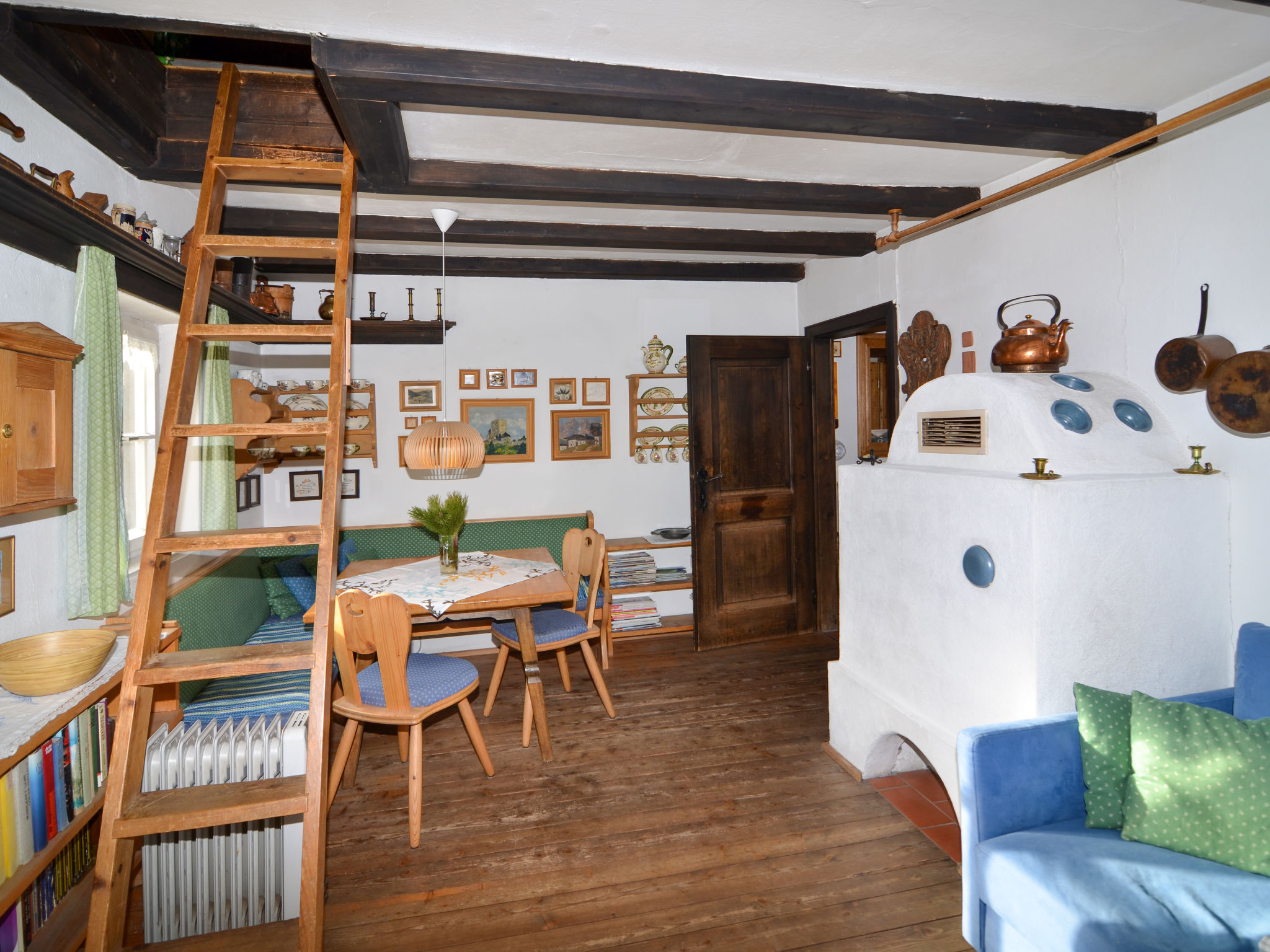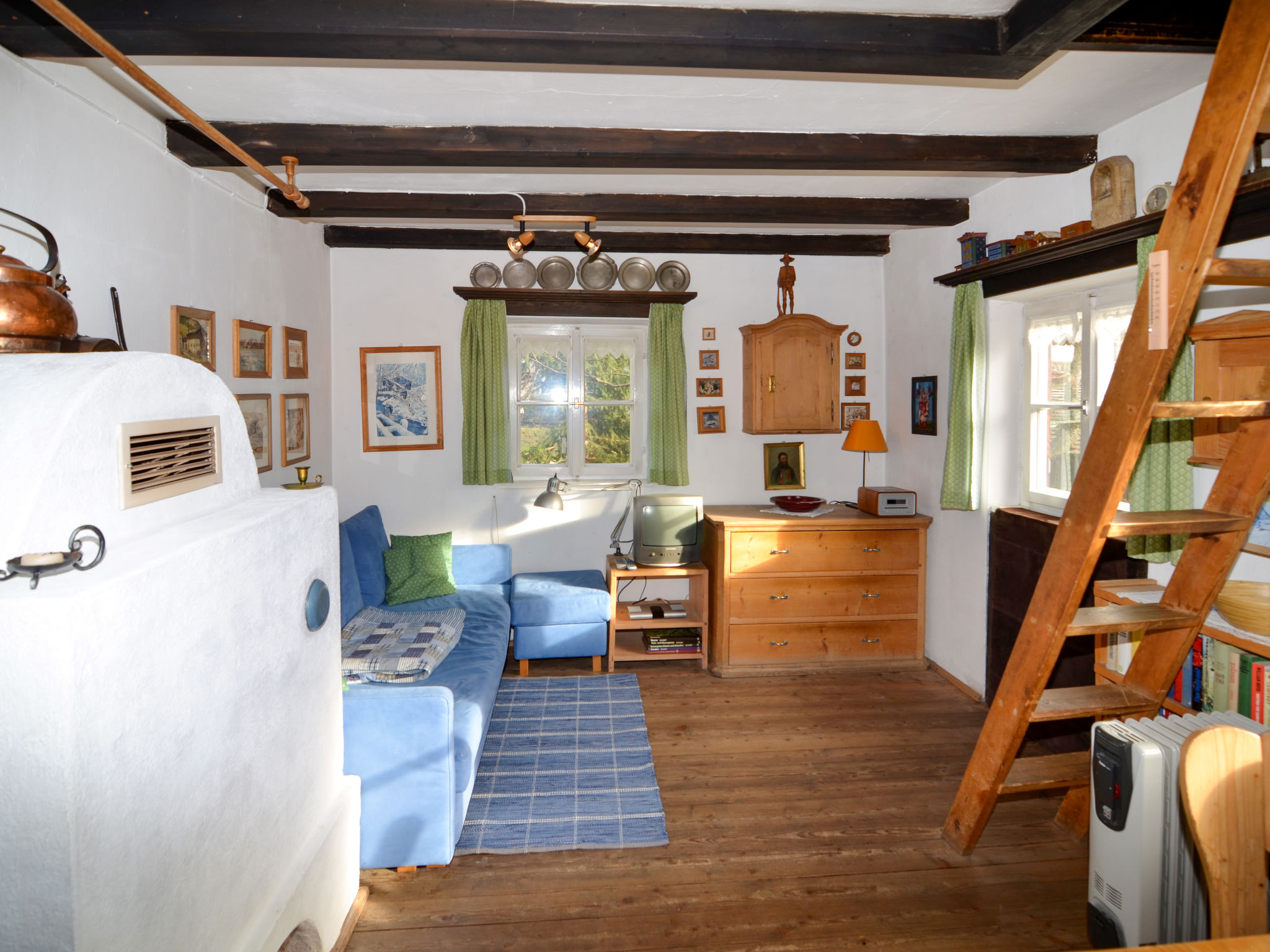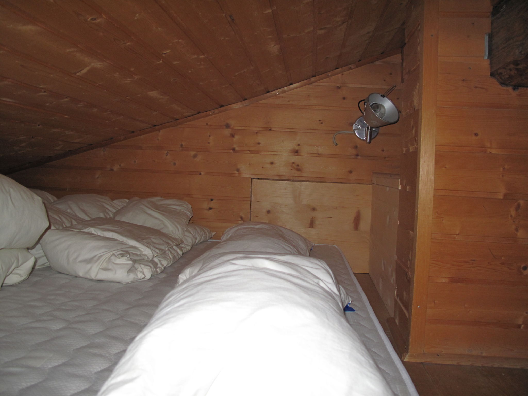 "Hüttl (GSN100)", 2-Zimmer-Chalet 35 m2 auf 2 Stockwerken. Objekt geeignet für 4 Erwachsene. Rustikal und gemütlich eingerichtet: Wohn-/Schlafzimmer mit 1 Doppeldiwanbett, Esstisch, Essecke, Sat-TV, E-Heizung und Kachelofen. Kleine Küche (2 Kochplatten, Mini-Backofen, elektrische Kaffeemaschine). Dusche, sep. WC. Fussbodenheizung. Heizung nicht in allen Räumen. Obergeschoss: (Leiter) abgeschrägte, offene Galerie, - 100 cm, ohne Fenster mit 4 Schlafmöglichkeiten. Holzböden. Terrasse. Terrassenmöbel. Schöne Sicht auf die Berge und die Landschaft. Bitte beachten: für Kleinkinder nicht geeignet. Nichtraucher-Haus. Blockhaus, ca. 35 m² Grundfläche zuzüglich ausgebaute Dachgiebel als Schlafböden. Vorraum. Wohn-/Schlafraum mit Doppelbettcouch, Essplatz (Eckbank) und Kachelofen. Kleine Küche (2 Platten, kleiner Backofen, Kühlschrank, Kaffeemaschine). Dusche. Sep.WC. Steile, schmale Holztreppen zu den 2 getrennten Schlafböden (max. Höhe ca. 1 m) mit je 2 Schlafplätzen. Maximale Belegung: 4 Personen.
