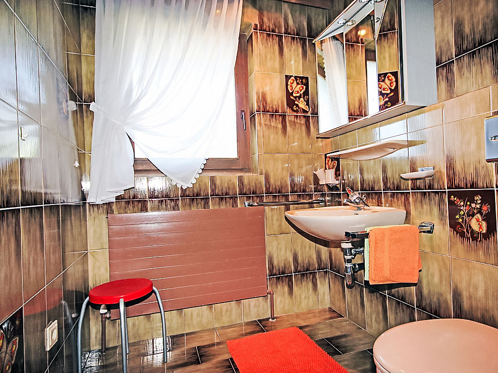 4-Zimmer-Wohnung 90 m2, im Erdgeschoss. Rustikal und gemütlich eingerichtet: Wohn-/Esszimmer mit Esstisch und Sat-TV (Flachbildschirm), Radio. Ausgang zur Terrasse, zum Gartensitzplatz. 1 Zimmer mit 1 Bett (90 cm, Länge 190 cm), 1 Doppelbett (180 cm, Länge 190 cm). 1 Zimmer mit 1 Doppelbett (180 cm, Länge 190 cm), Dusche/WC. Kleiner Salon mit offenem Kamin. Kleiner, Gepäckraum. Offene Küche (4 Kochplatten, Backofen, Wasserkocher, elektrische Kaffeemaschine). Dusche/WC. Grosse Terrasse 18 m2 teilweise überdacht. Terrassenmöbel, Liegestühle (2). Schöne Panoramasicht auf die Berge und die Landschaft. Bitte beachten: geeignet für Familien. Nichtraucher-Unterkunft. Eigener Eingang. Das zweite Wohnzimmer mit Kamin befindet sich im Eingangsbereich und hat kein Fenster.