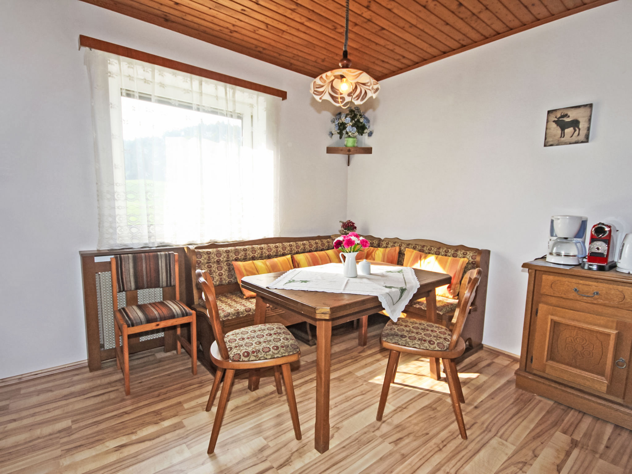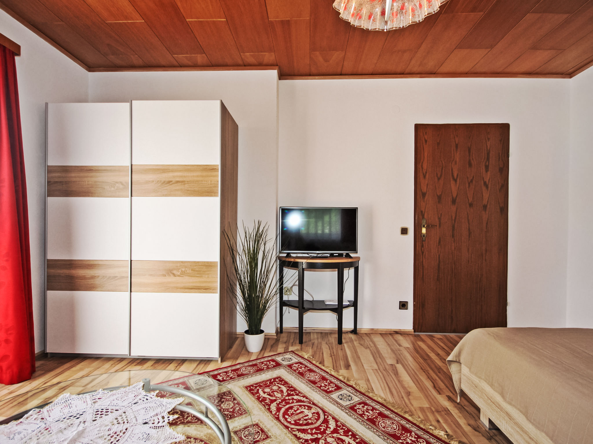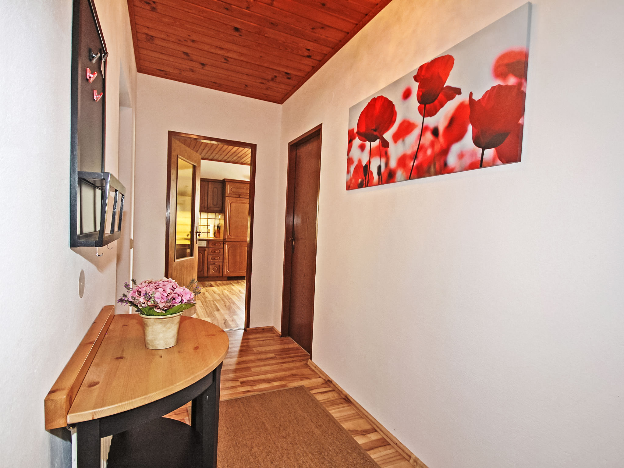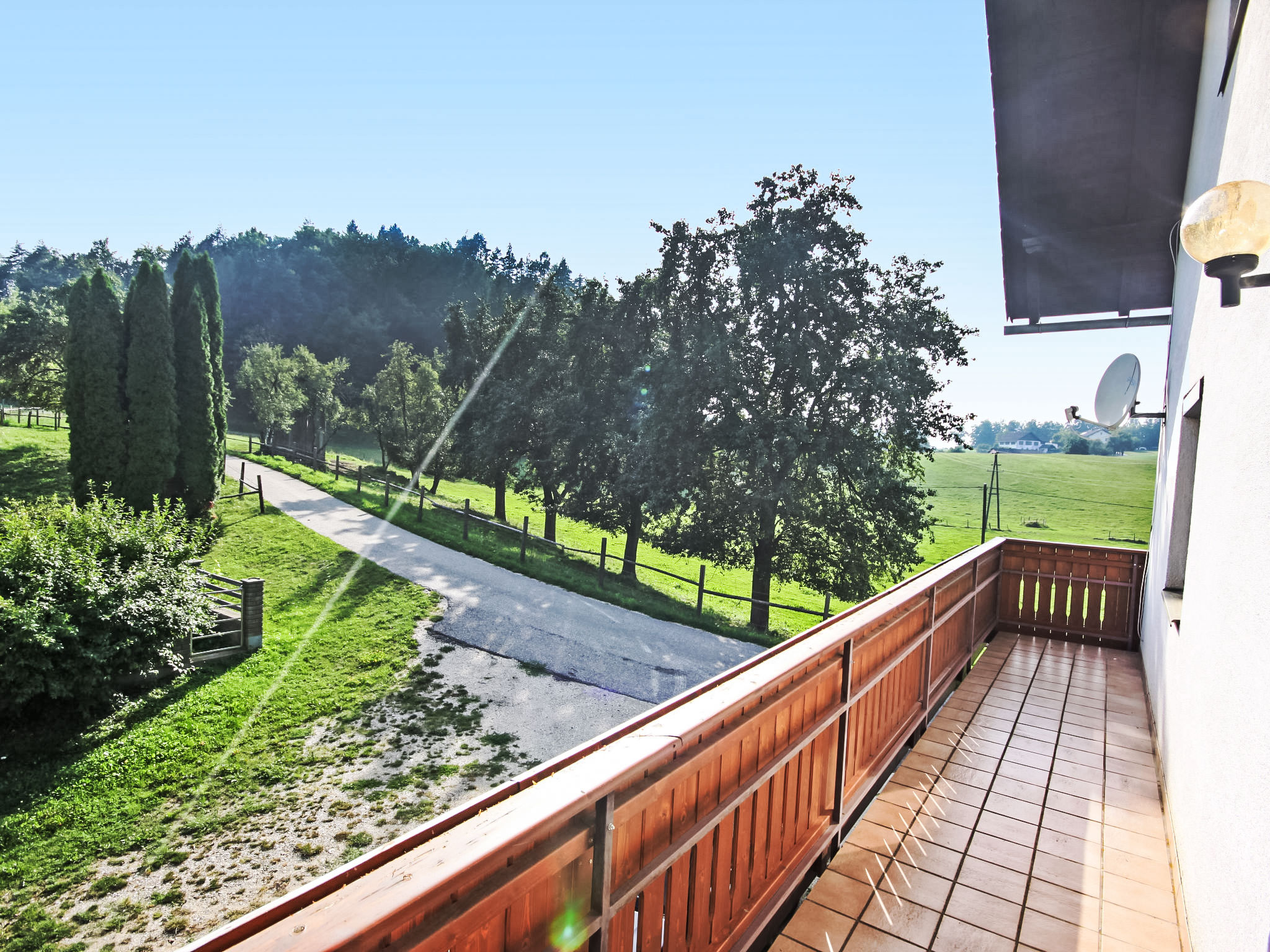 3-Zimmer-Haus 90 m2. Geräumig und hell, zweckmässig und gemütlich eingerichtet: Eingang. 1 Doppelzimmer. 1 Doppelzimmer mit Kabel-TV (Flachbildschirm). Ausgang zum Balkon. Grosse Wohnküche (Backofen, Geschirrspüler, 4 Glaskeramikherd Platten, Mikrowelle, elektrische Kaffeemaschine) mit Essecke und Sat-TV (Flachbildschirm), Holzofen. Bad/Dusche, Bidet, sep. WC. E-Heizung, Holzheizung. Grosser Balkon 11 m2, Laube. Balkonmöbel, Abstellkammer. Schöne Sicht auf die Landschaft. Zur Verfügung: Waschmaschine, Kinderhochstuhl, Babybett bis 2 Jahre. Internet (Wireless LAN, gratis). Bitte beachten: geeignet für Familien. Nichtraucher-Unterkunft. Rauchmelder, Feuerlöscher.
