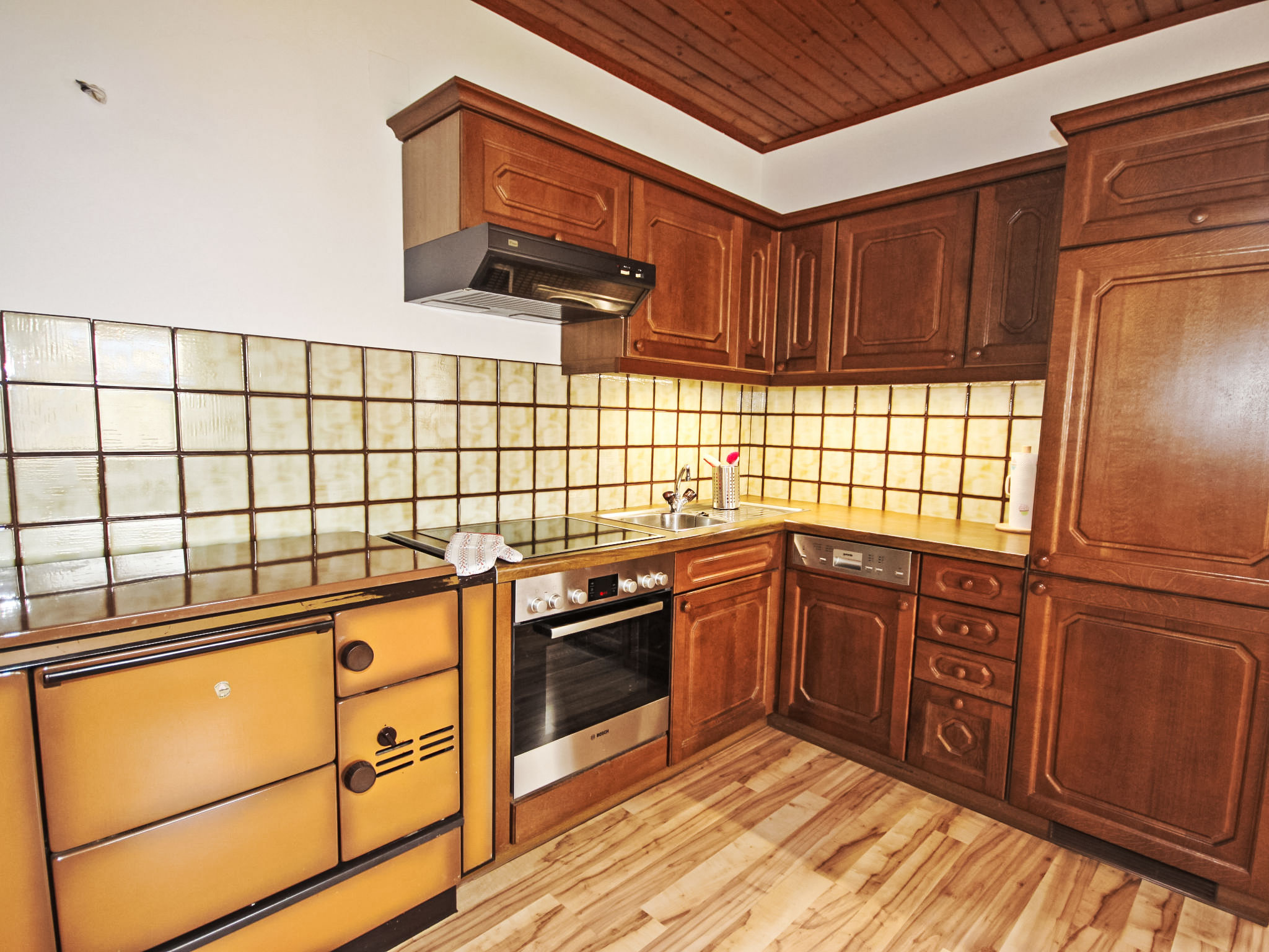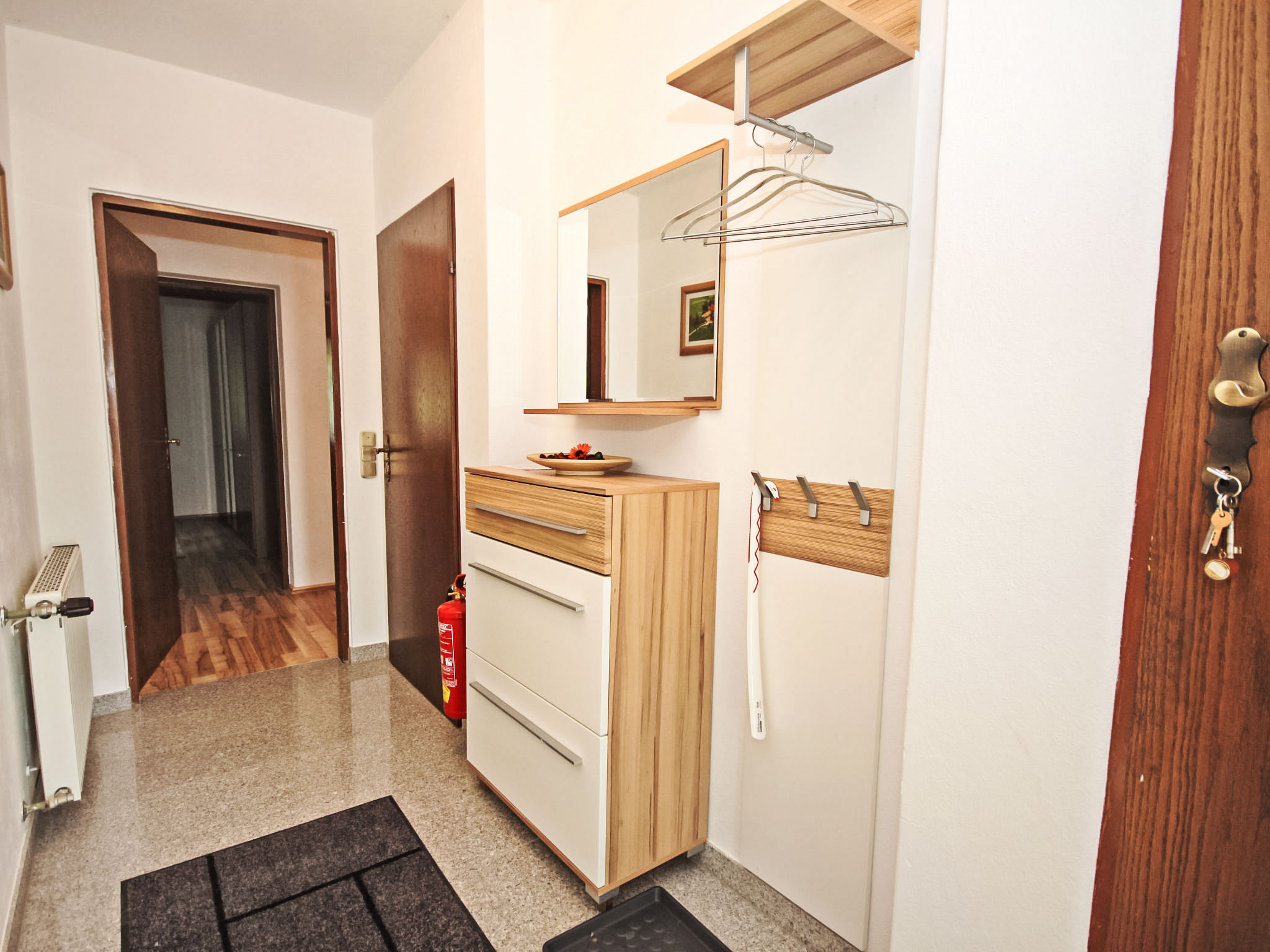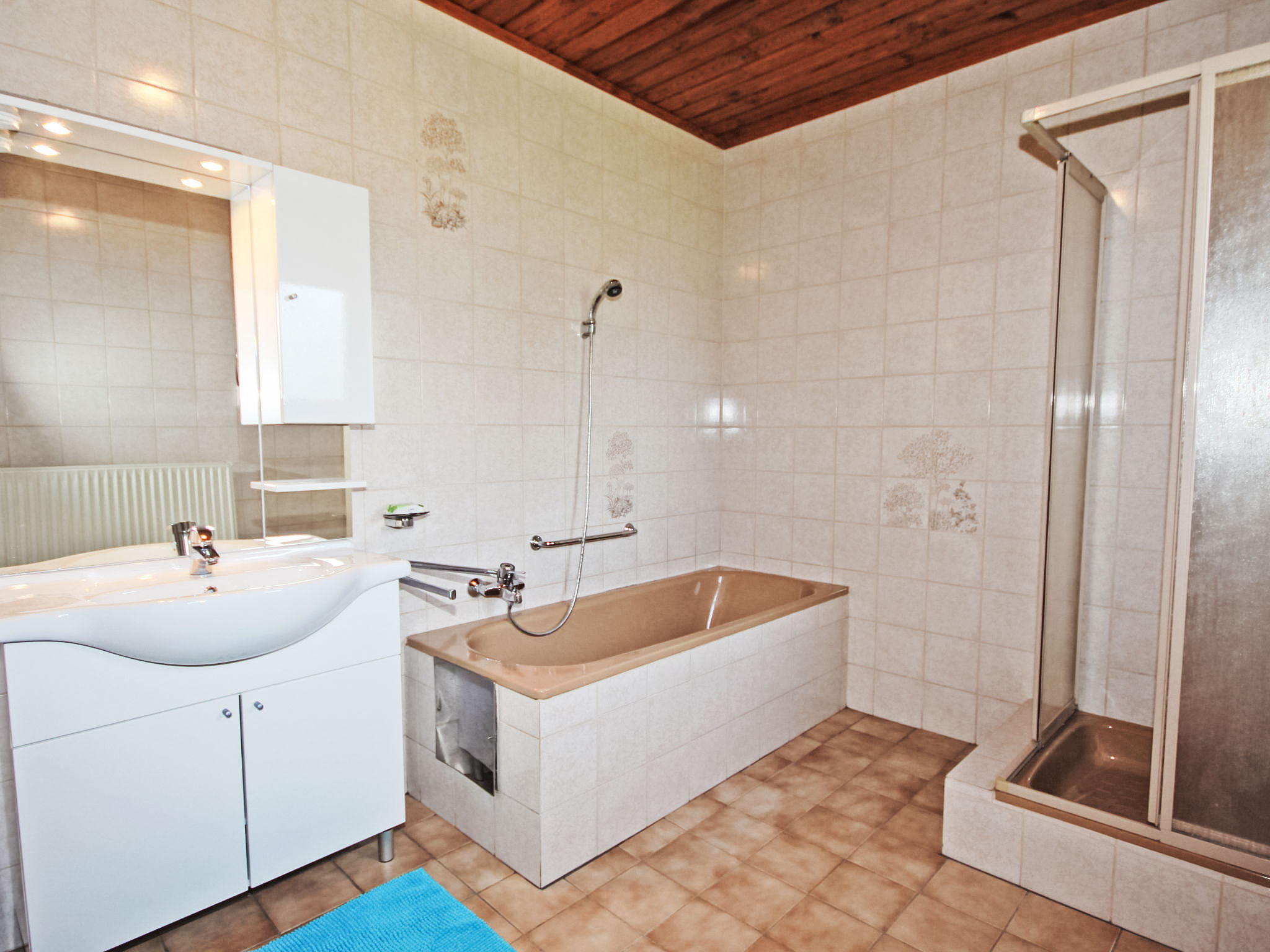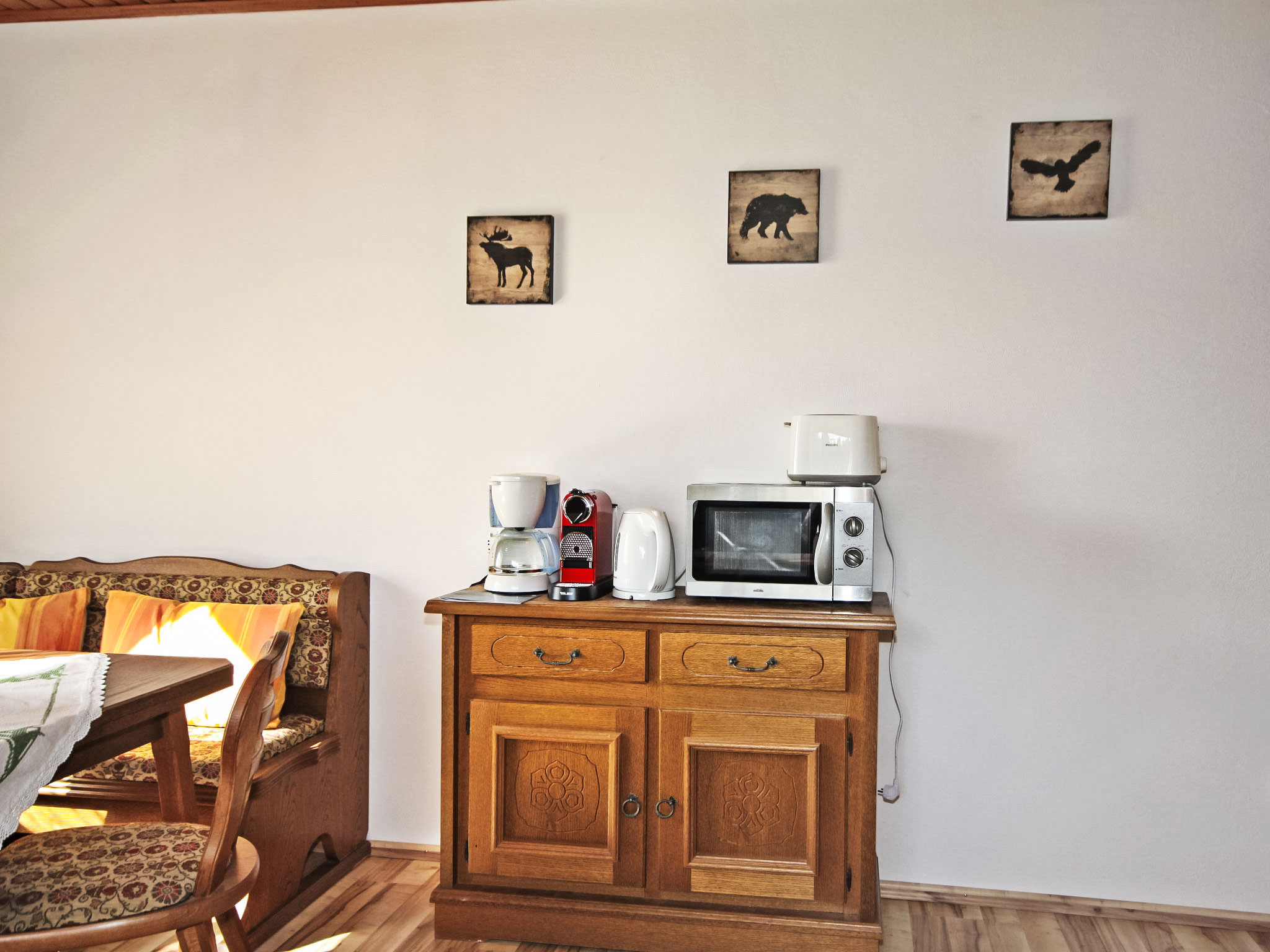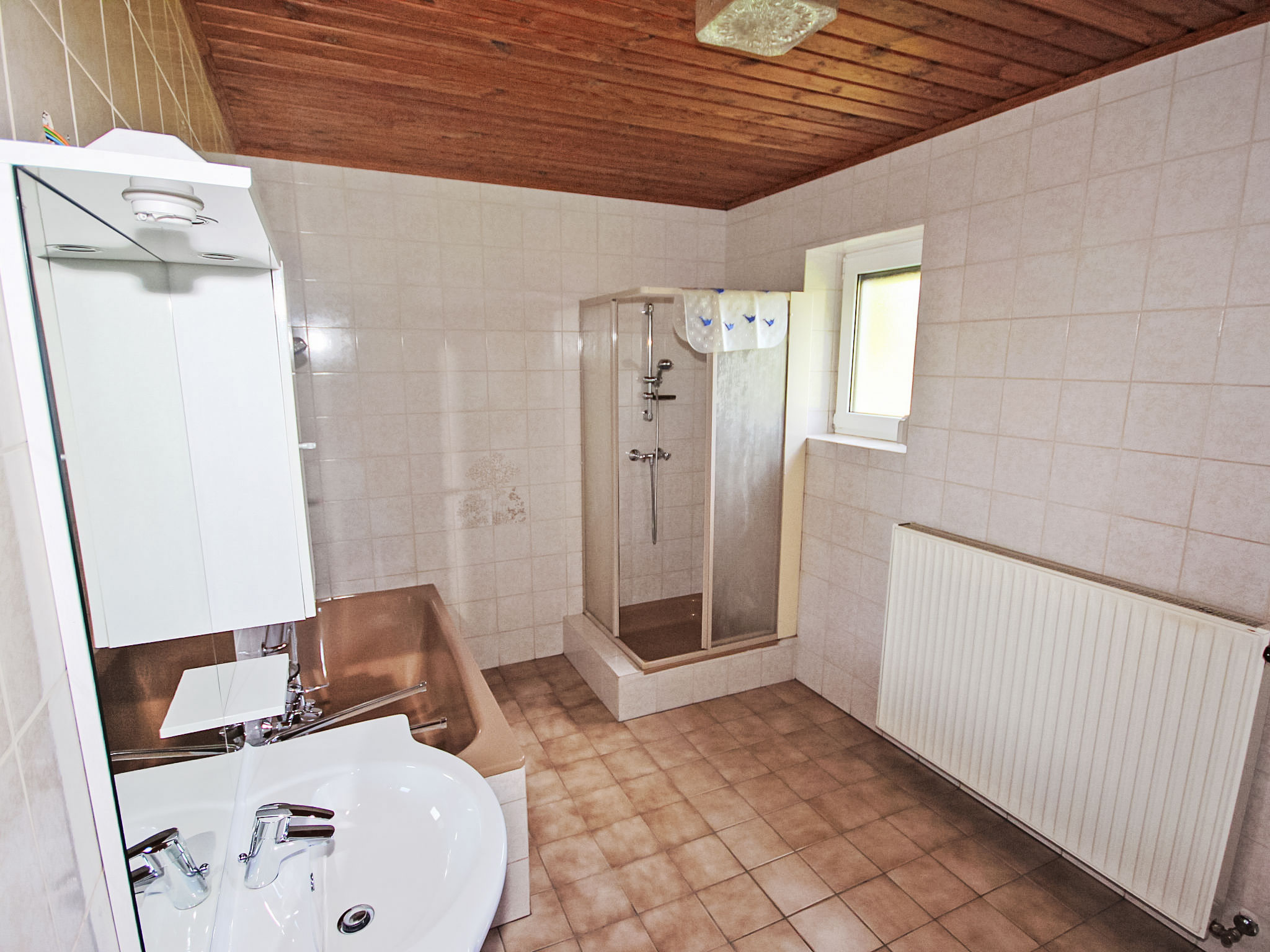 3-Zimmer-Haus 90 m2. Geräumig und hell, zweckmässig und gemütlich eingerichtet: Eingang. 1 Doppelzimmer. 1 Doppelzimmer mit Kabel-TV (Flachbildschirm). Ausgang zum Balkon. Grosse Wohnküche (Backofen, Geschirrspüler, 4 Glaskeramikherd Platten, Mikrowelle, elektrische Kaffeemaschine) mit Essecke und Sat-TV (Flachbildschirm), Holzofen. Bad/Dusche, Bidet, sep. WC. E-Heizung, Holzheizung. Grosser Balkon 11 m2, Laube. Balkonmöbel, Abstellkammer. Schöne Sicht auf die Landschaft. Zur Verfügung: Waschmaschine, Kinderhochstuhl, Babybett bis 2 Jahre. Internet (Wireless LAN, gratis). Bitte beachten: geeignet für Familien. Nichtraucher-Unterkunft. Rauchmelder, Feuerlöscher.
