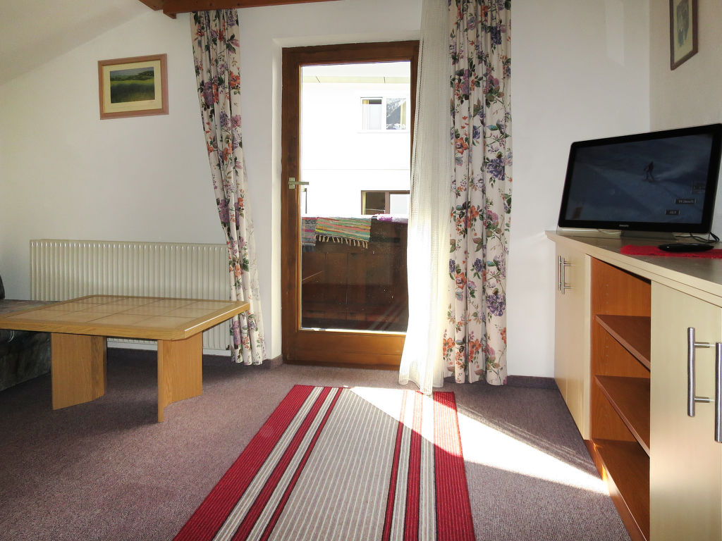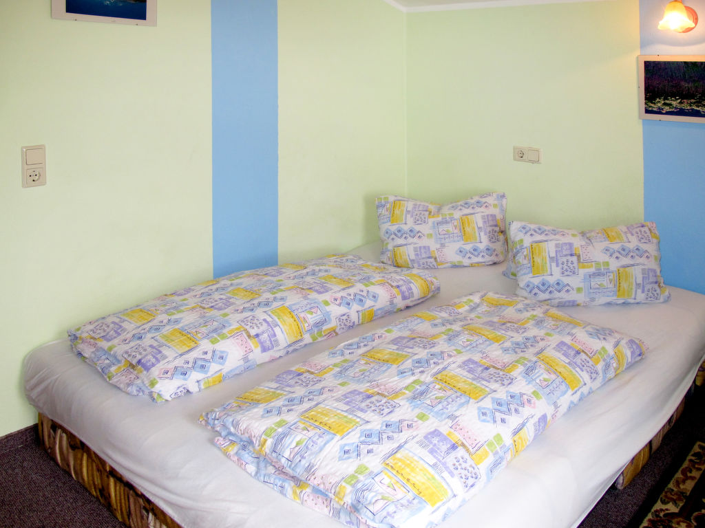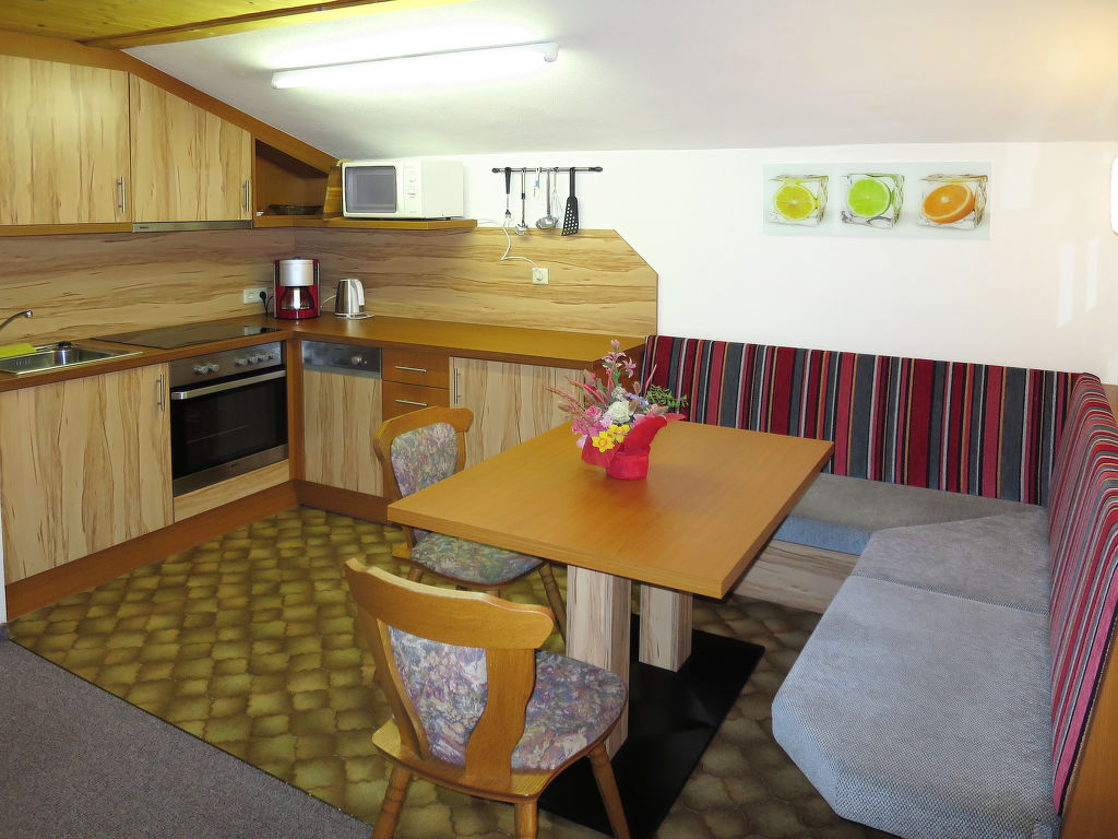2-Zimmer-Wohnung, Dachgeschoss, ca. 42 m². Wohn-/Schlafraum mit Doppelbettcouch, durch offenen Rundbogen davon abgeteilt Küche (4 Ceranfelder, Backofen, Mikrowelle, Geschirrspüler, Kühlschrank, Kaffeemaschine, Wasserkocher, Toaster) mit Essplatz. Doppelzimmer. Dusche/WC. Bei Belegung mit weniger Personen als der maximalen Personenzahl stehen nicht alle Wohneinheiten zur Verfügung.