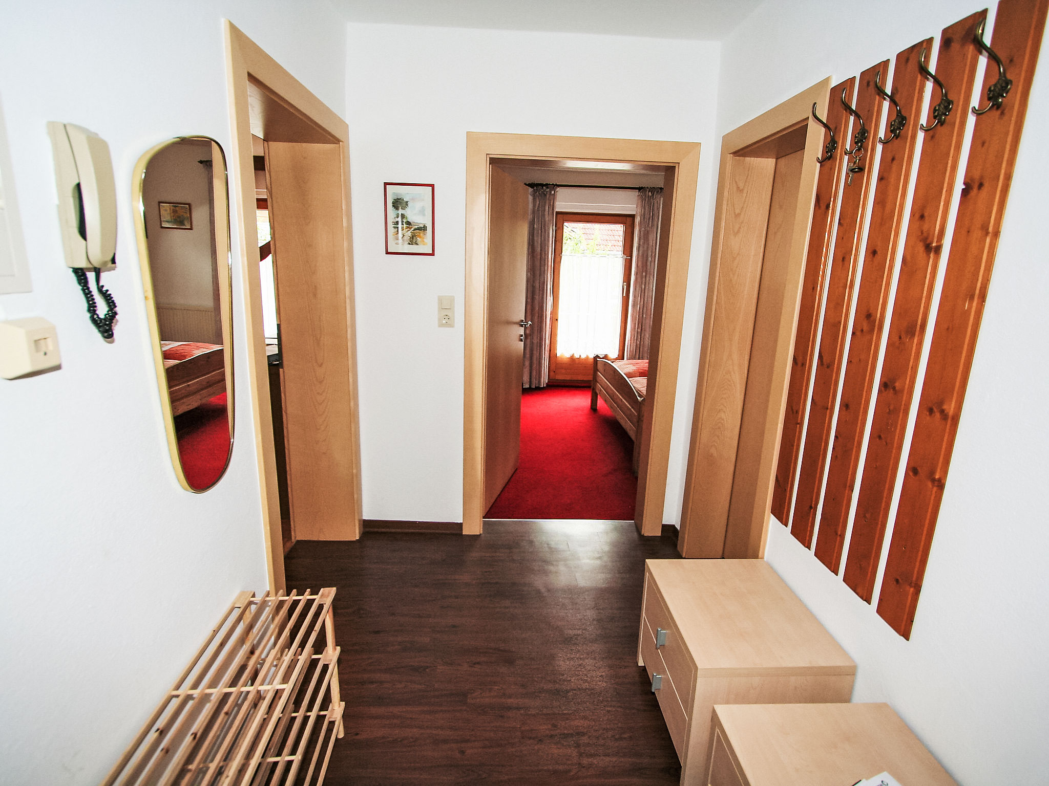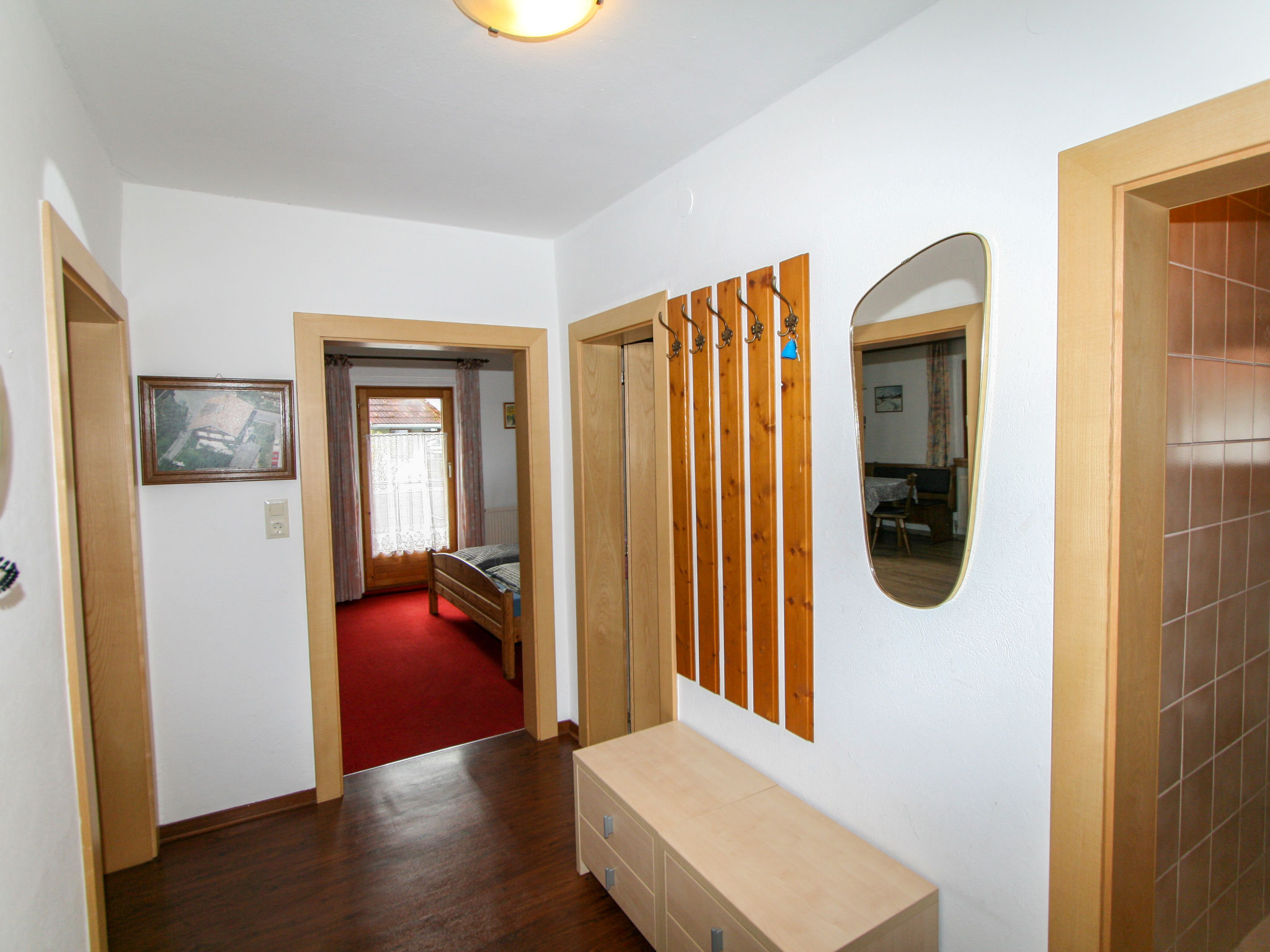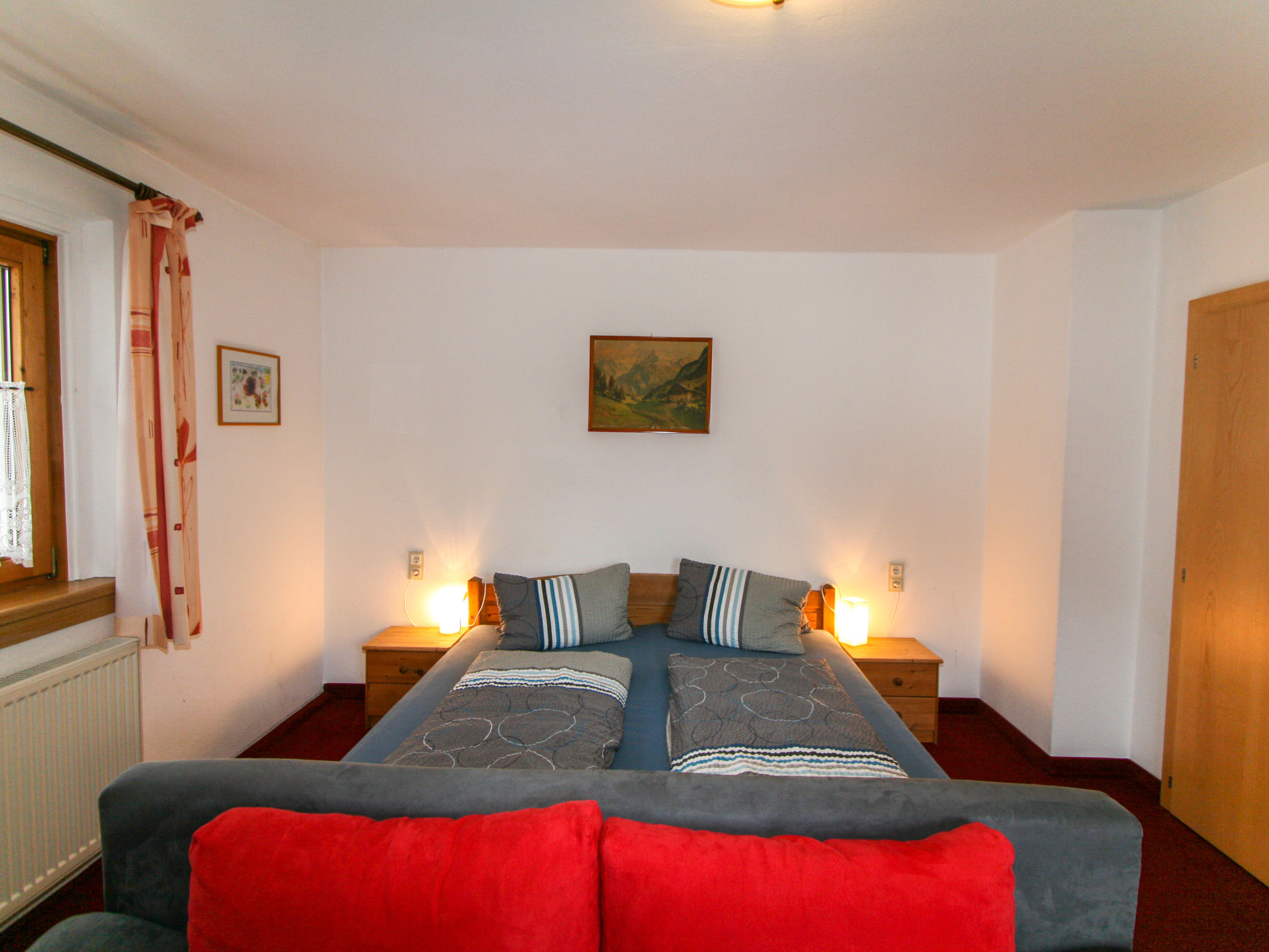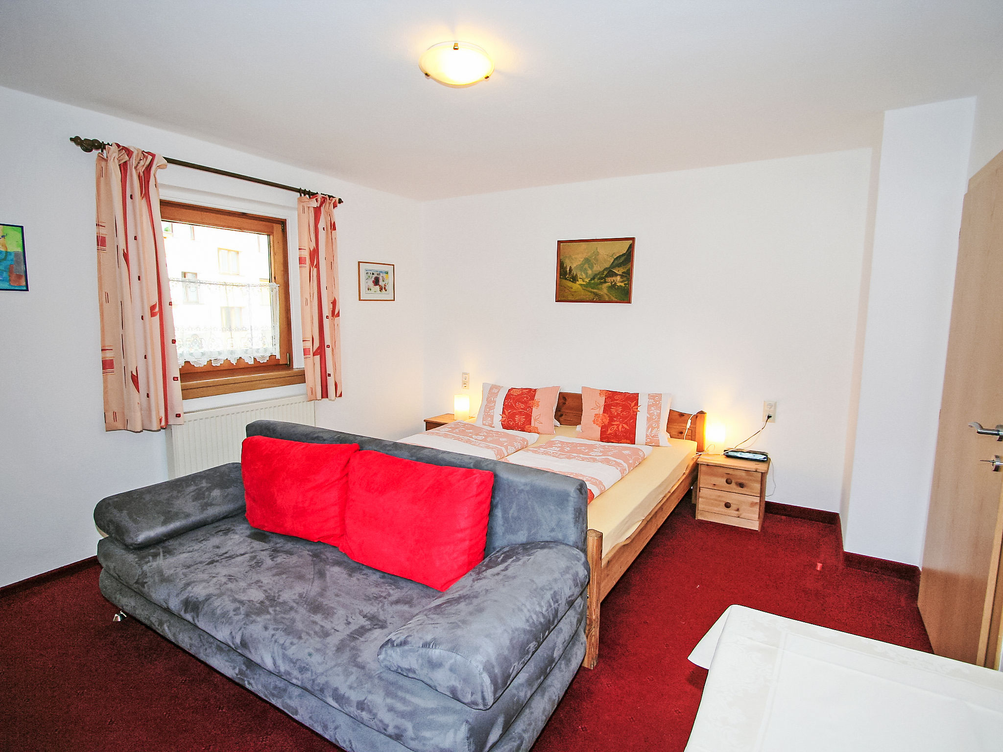 3-Zimmer-Wohnung 55 m2 im 1. Stock. Gemütlich eingerichtet: 1 Doppelzimmer. Ausgang zum Balkon. 1 Zimmer mit 1 Diwanbett und 1 Doppelbett. Ausgang zum Balkon. Wohnküche (4 Kochplatten, Backofen, Geschirrspüler, Wasserkocher, elektrische Kaffeemaschine) mit 1 Doppeldiwanbett, Essecke und Sat-TV (Flachbildschirm). Ausgang zum Balkon. Dusche, sep. WC. Balkon 10 m2. Terrassenmöbel. Schöne Sicht auf die Berge. Zur Verfügung: Internet (Wireless LAN, extra). 1 Haustier/Hund erlaubt. Aufpreis vor Ort für die 6. und 7. Person nur auf Anfrage (Zusatzbetten): Im Winter: EUR 25.00/Person/Tag. Im Sommer: EUR 15.00/Person und Tag.