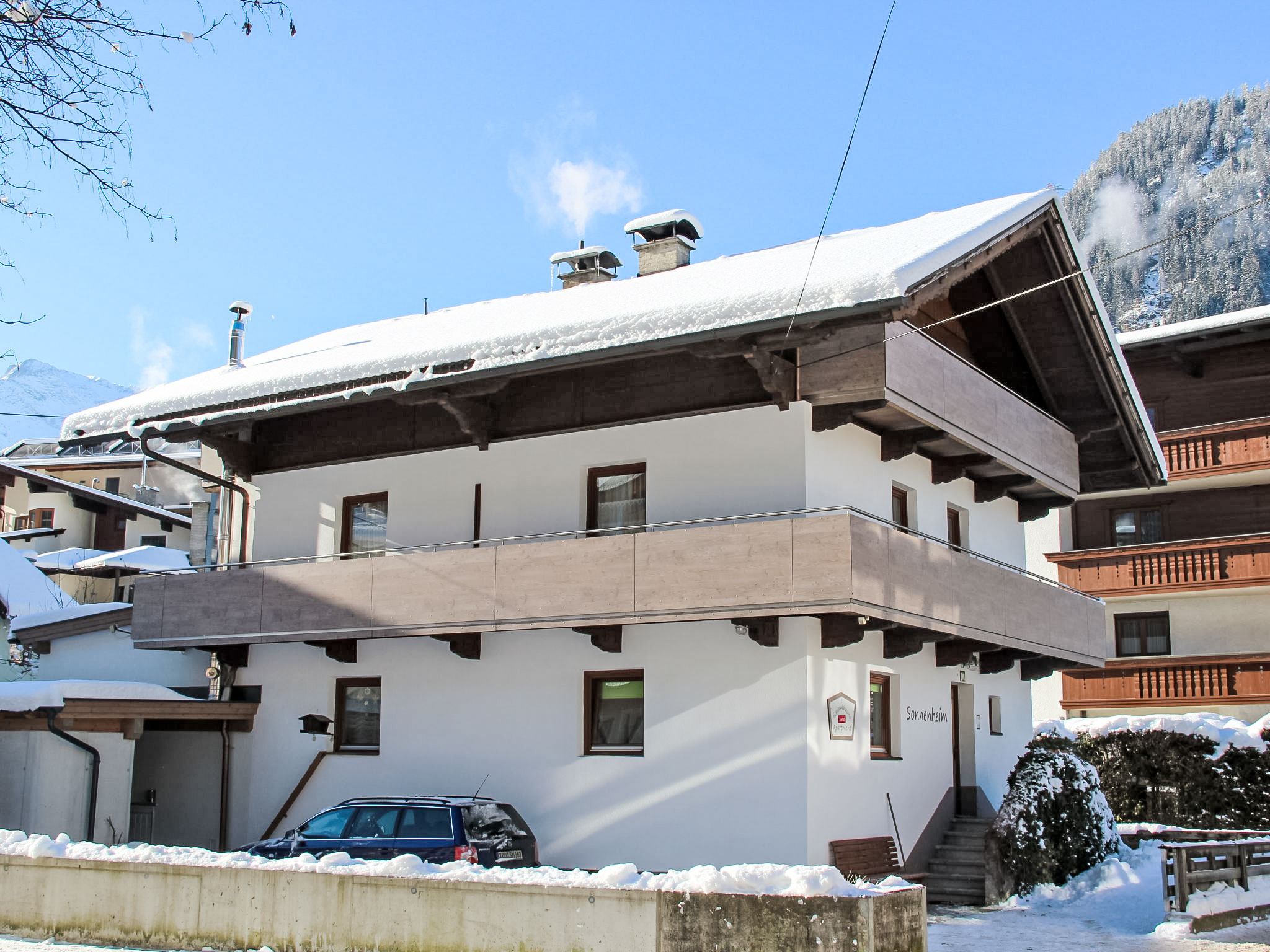 Mayrhofen: Dreifamilienhaus "Sonnenheim". Im Ort, 100 m vom Zentrum von Mayrhofen, zentrale, sonnige Lage, 800 m vom Skigebiet. Im Hause: Wireless LAN, Skiraum, Zentralheizung. Zufahrt bis zum Haus. Parkplatz beim Haus. Einkaufsgeschäft 300 m, Lebensmittelgeschäft, Restaurant 100 m, Freibad, Hallenbad 600 m. Tennishalle 100 m, Luftseilbahn 800 m, Skibushaltestelle 150 m, Eisfeld 600 m. Bitte beachten: In diesem Haus sind weitere Ferienwohnungen mietbar. Das Haus liegt nur wenige Schritte von der Fussgängerzone und der Penkenbahn entfernt.