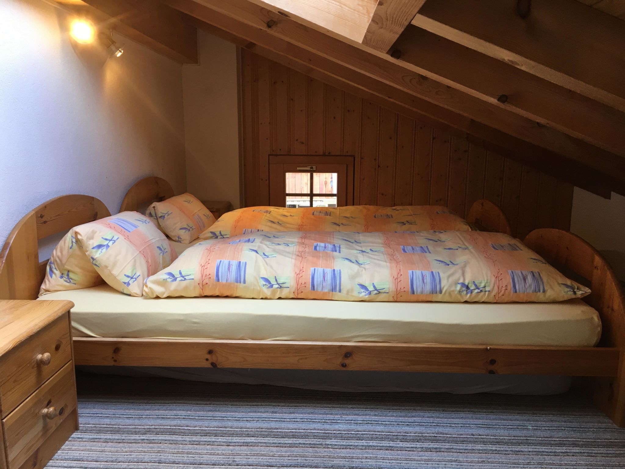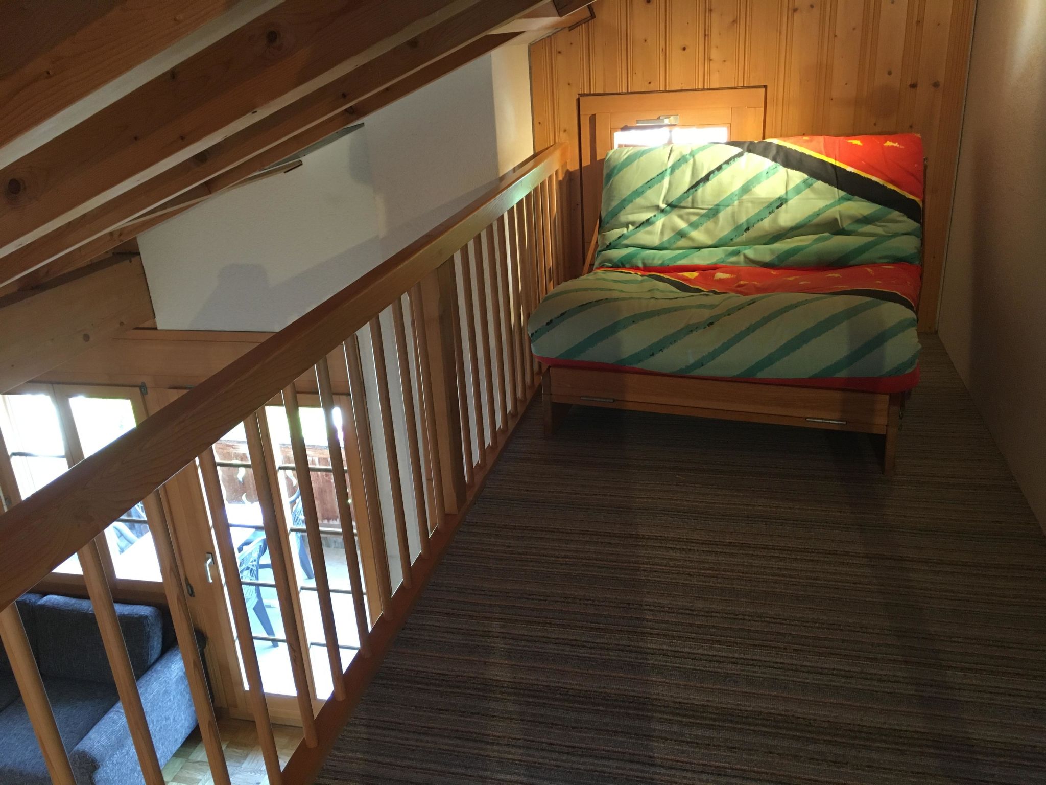 Wohnung Nr. 5 Gartenstrasse 5 3852 Ringgenberg Diese Wohnung liegt im Haus mit den Wohnungen 5, 7, 8 und 33 an der Gartenstrasse in Ringgenberg. 2½-Zimmer-Wohnung, 60m², 2-5 Personen (1 Schlafzimmer, 1 Schlafgalerie, 1 Badezimmer) Wohn-/Esszimmer mit Sofa, Esstisch. Offene Küche mit Geschirrspüler. 1 Schlafzimmer mit Doppelbett. Schlafgalerie mit 3 Betten unter dem Dach (nur teilweise Stehhöhe). 1 Badezimmer mit Badewanne/WC. Balkon 9,4m2 mit wunderschöner Seesicht.