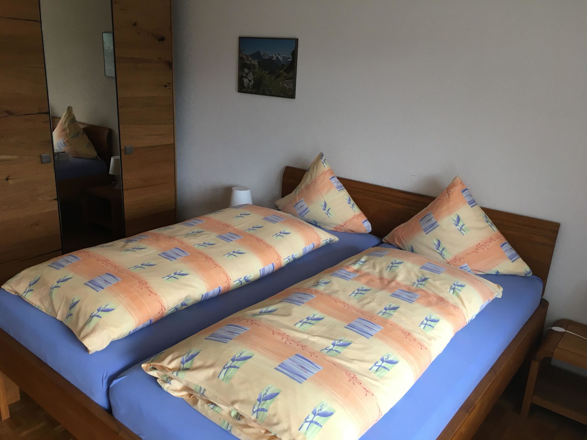 Wohnung Nr. 3 Blumenweg 6 3852 Ringgenberg Diese Wohnung liegt im Haus mit den Wohnungen 1 - 4 am Blumenweg 6 in Ringgenberg. 3½-Zimmer-Wohnung, 57m², 4 Personen (2 Schlafzimmer, 1 Badezimmer) Wohn-/Esszimmer mit Cheminée, Sofa, grosser Esstisch. Offene Küche mit Geschirrspüler. 1 Schlafzimmer mit Doppelbett 180cm, 1 kleines Schlafzimmer mit franz. Bett 140cm. 1 Badezimmer mit Dusche/WC. Gartensitzplatz 40m2 mit Aussengrill.