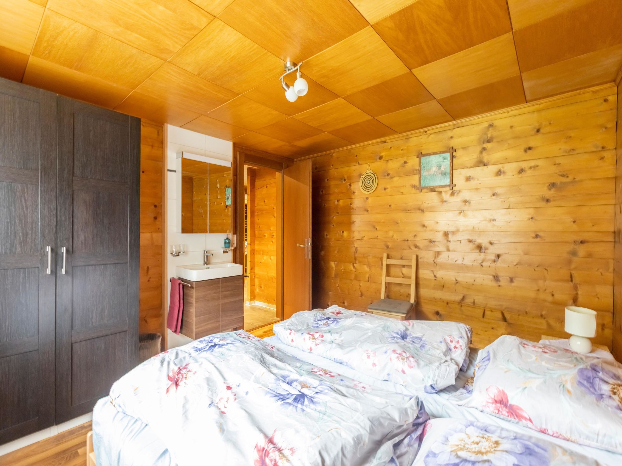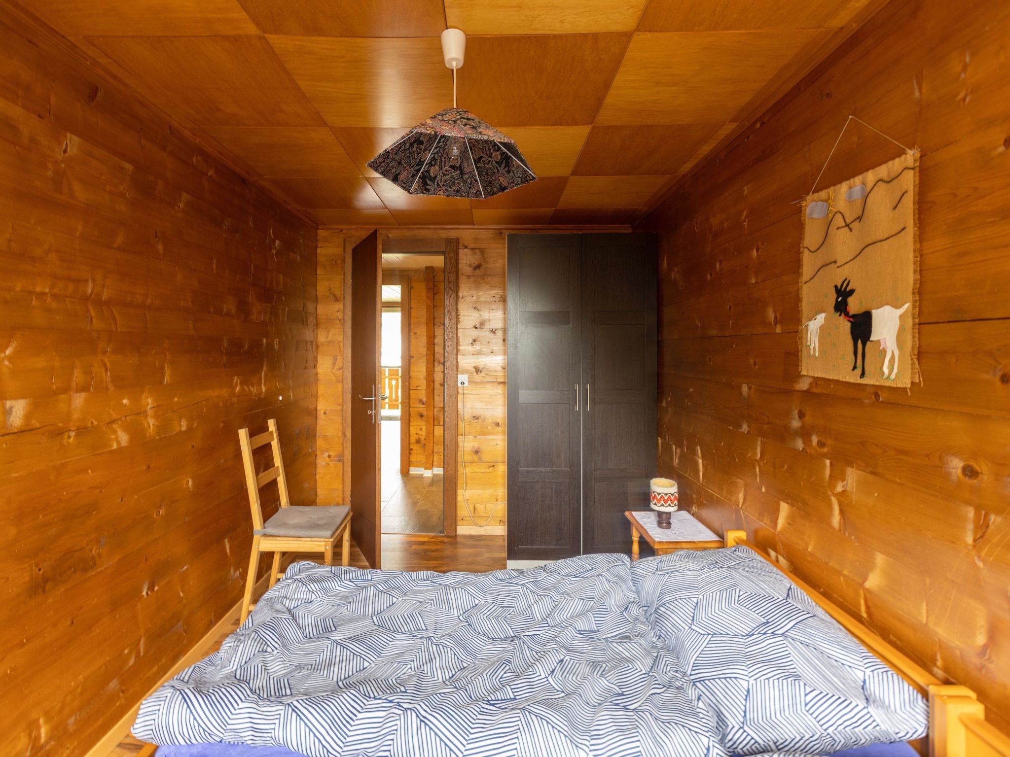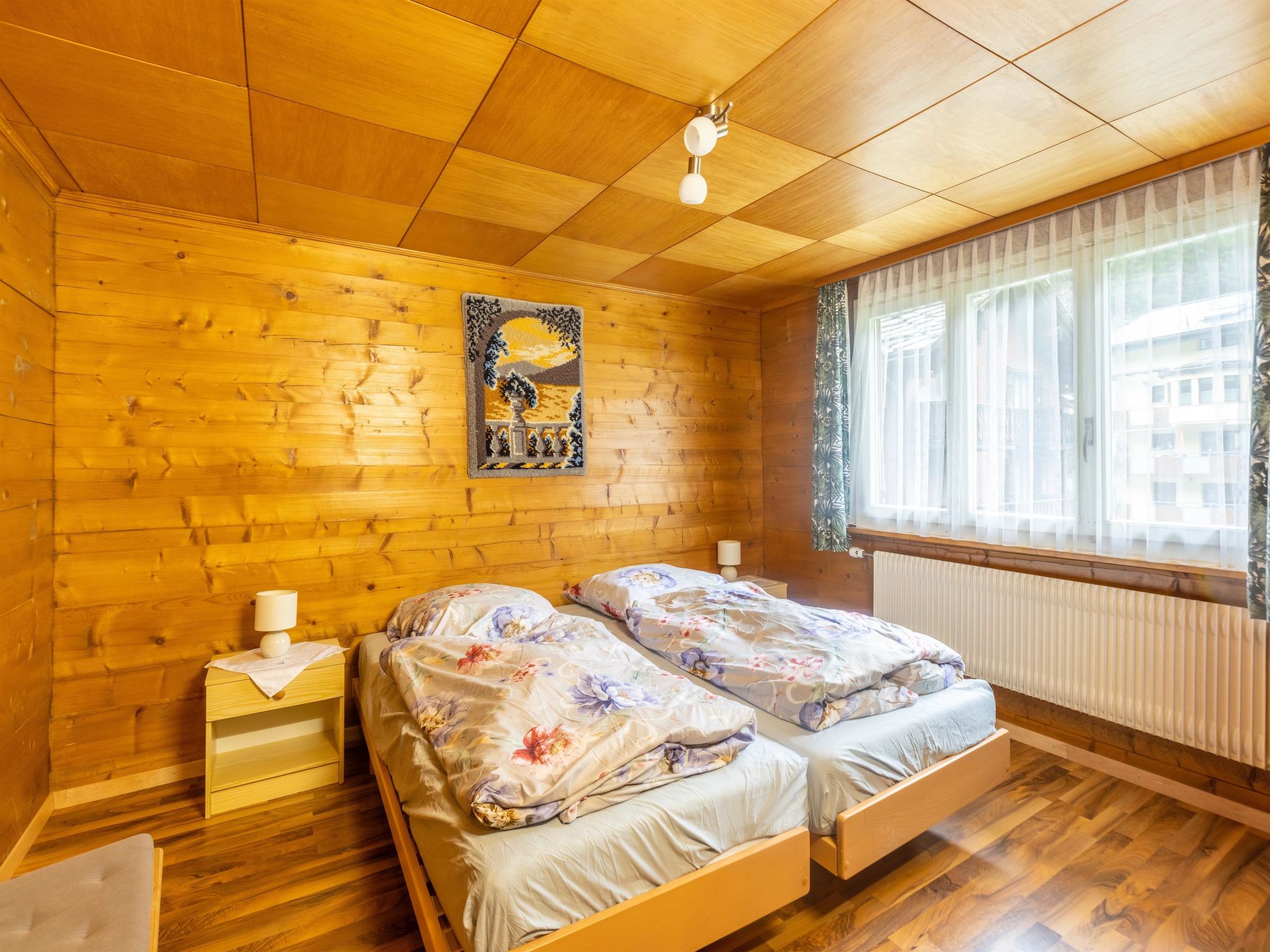 3.5 Zimmer für 7 Pers. Die Wohnung hat drei Schlafzimmer, eine Küche sowie Bad und WC getrennt. Auf der Südseite hat es einen Balkon.