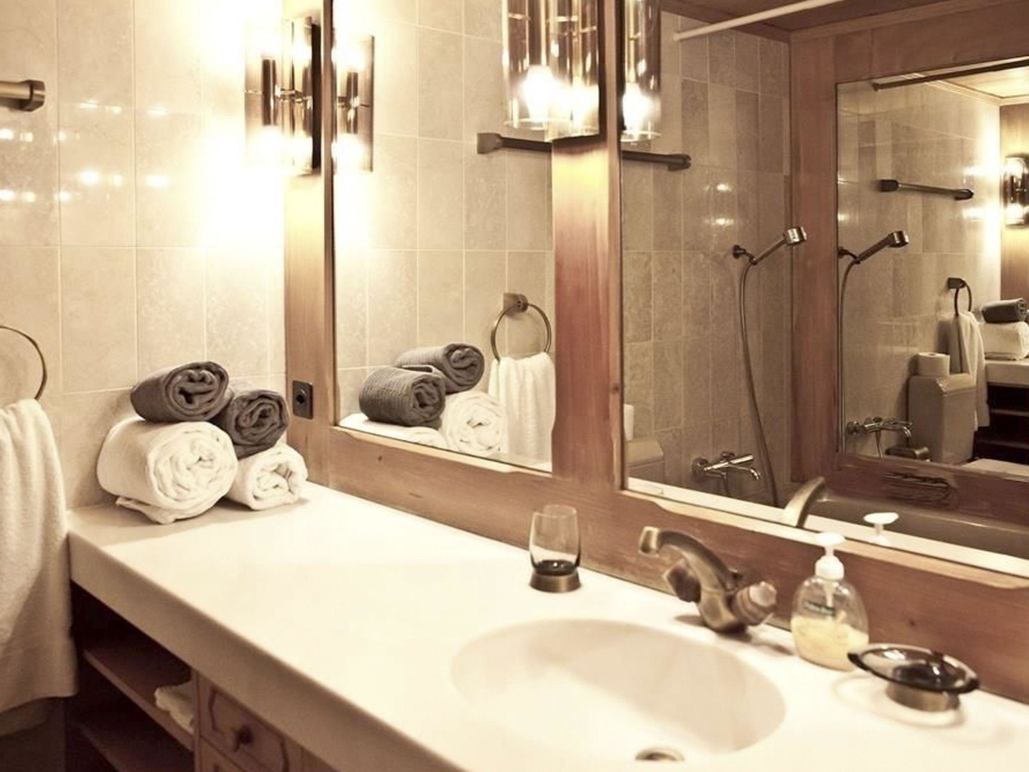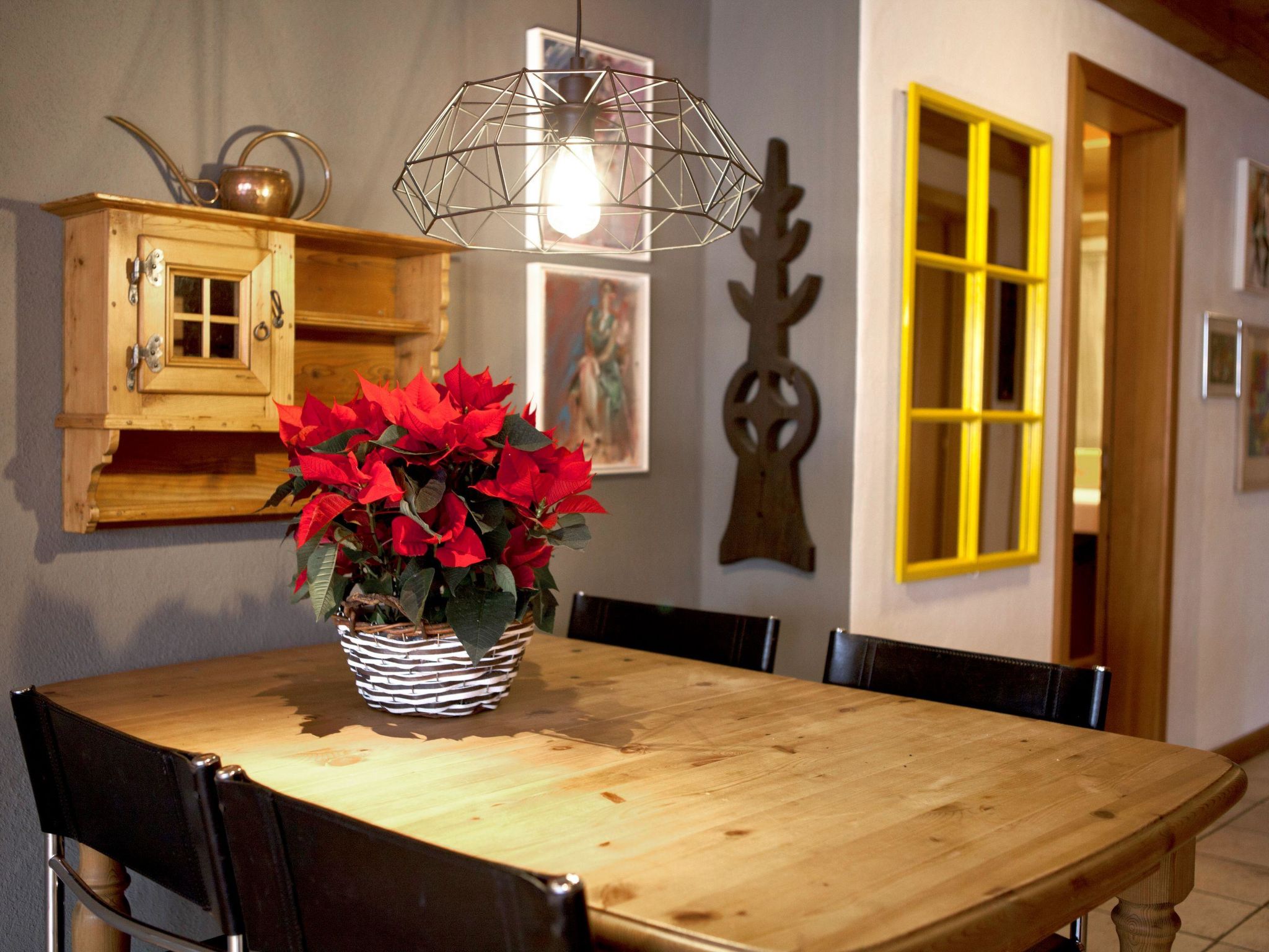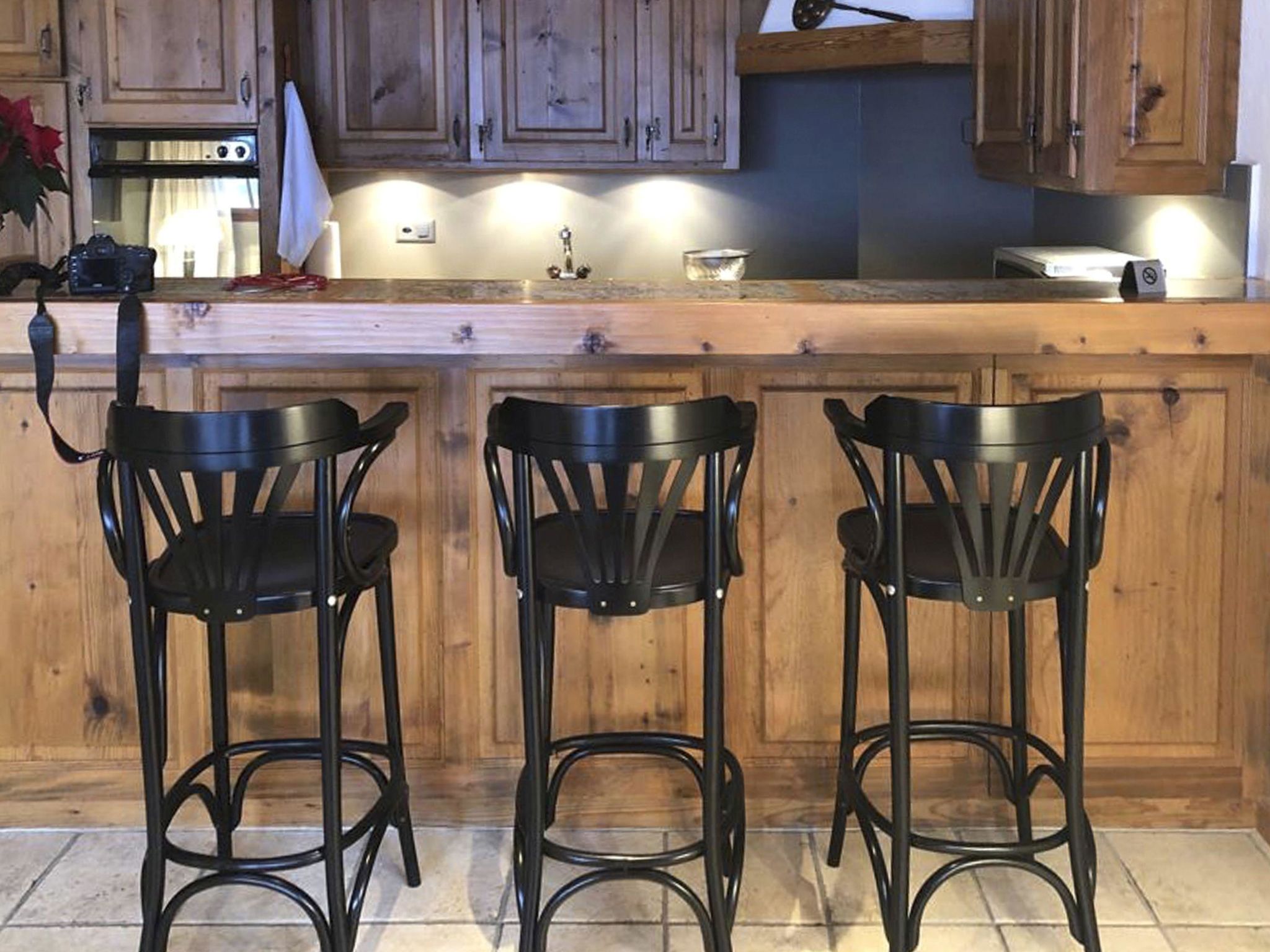 Personenlift, Einbauschrank für Garderobe. Gemütliches Wohnzimmer mit ein 2er-Sofa, 2 Sesseln, grosser Flachbildschirm-TV/Radio, WiFi. Esstisch ausziehbar mit 6 Stühlen. Offene Küche mit Glaskeramikherd und Dampfabzug, Kühlschrank mit Gefrierfach, Backofen, Geschirrspüler, Toaster, Mikrowellegerät, Kapsel-Kaffeemaschine (Nespresso) und Fondue-Set. Eltern-Schlafzimmer mit 2 Betten (90x190cm), Einbauschrank und separate Dusche/WC, Kinder-Schlafzimmer mit 2 Betten (90x190cm), Einbauschrank. Badezimmer mit Bad und WC.