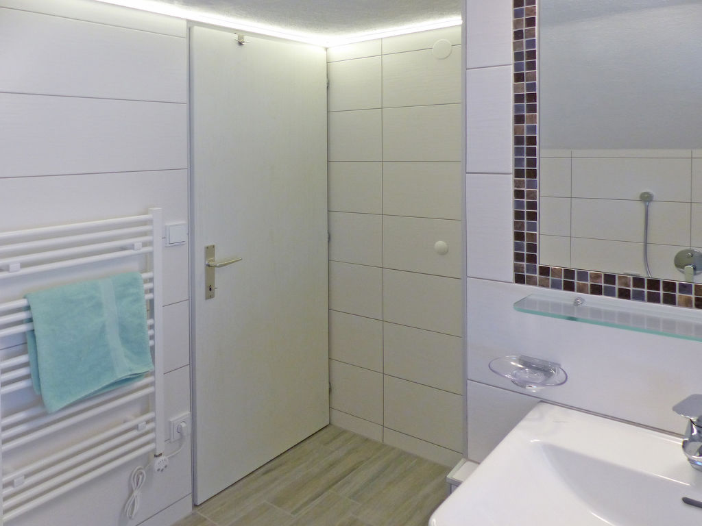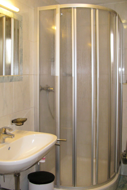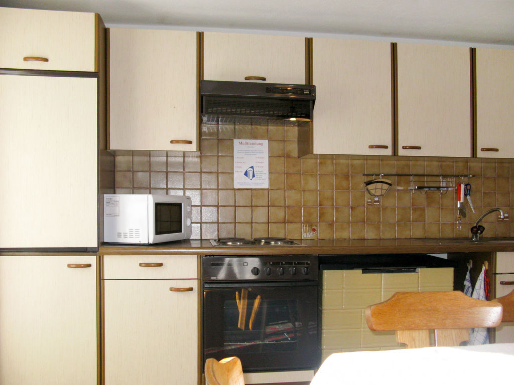 7-Zimmer-Hausteil, 2 Etagen, ca. 200 m². Separater Eingang in die 1. Etage (Hanglage): Flur. Wohnküche (4 Platten, Backofen, Mikrowelle, Geschirrspüler, Kühlschrank, Kaffeemaschine, Wasserkocher, Toaster) mit Essplatz (Eckbank) für 10-11 Personen. 2 Doppelzimmer, jeweils mit Waschbecken. Zweibettzimmer mit Waschbecken. Dusche. Dusche/WC. Sep.WC. 2. Etage (Deckenhöhe 1,85 m): Flur. Wohnküche (4 Platten, Backofen, Mikrowelle, Kaffeemaschine) mit Essplatz für 4-5 Personen und Sitzcouch. Doppelzimmer mit Waschbecken. Schlafzimmer mit Doppelbett, Einzelbett und Waschbecken. Bad/Dusche. Sep.WC.
